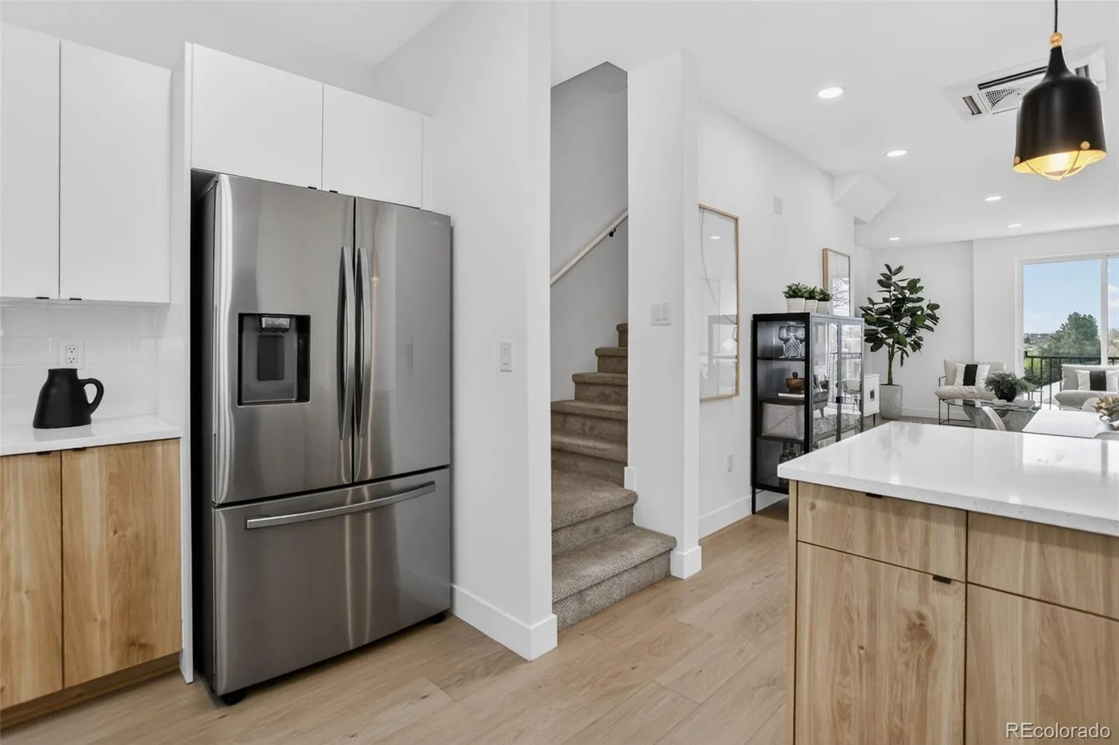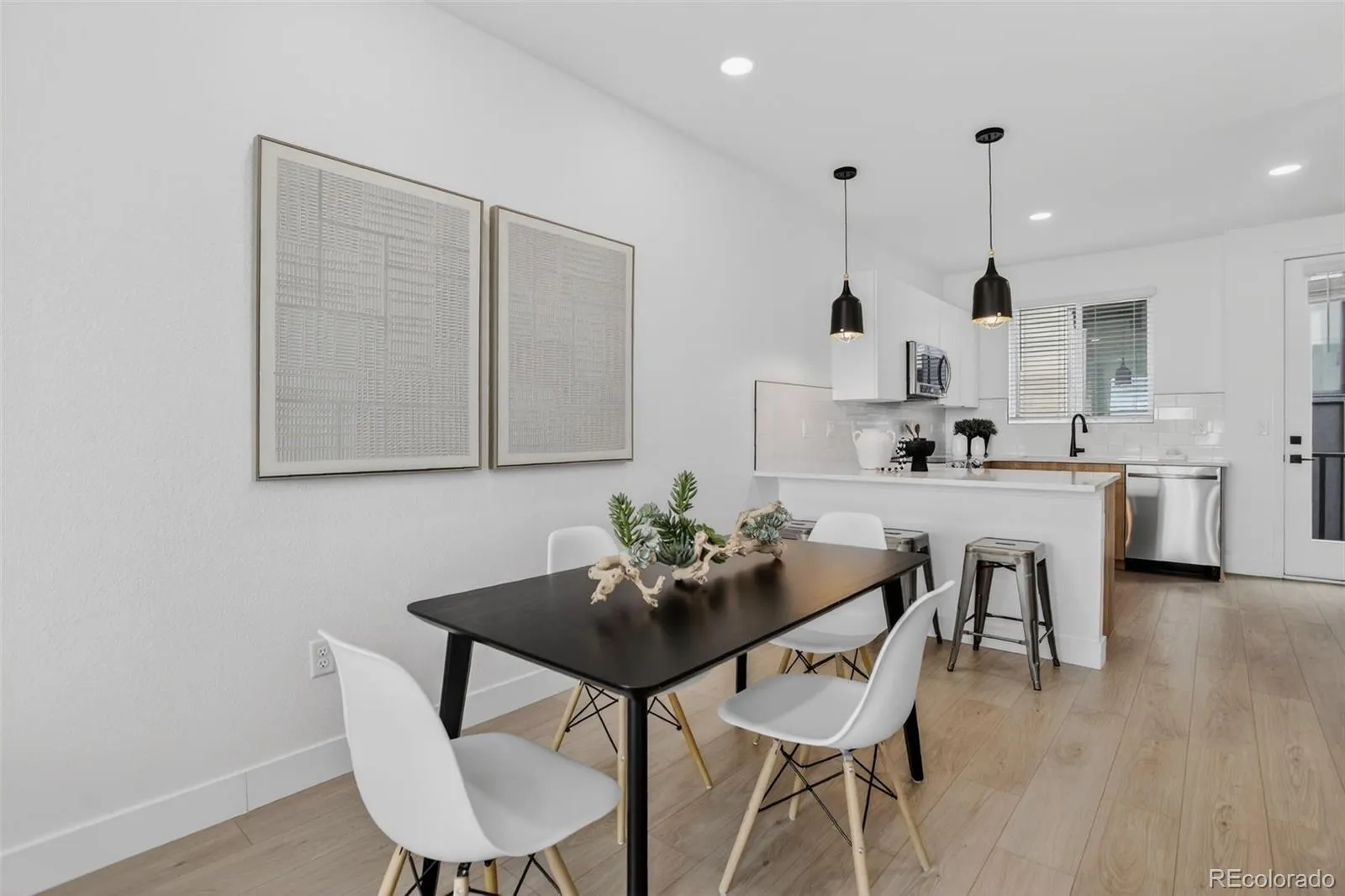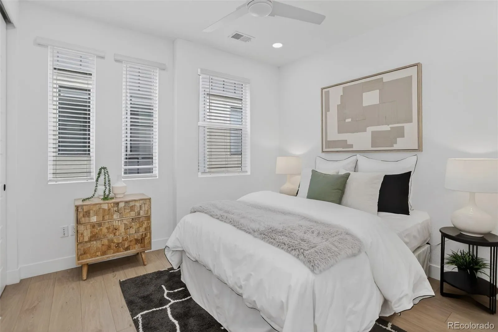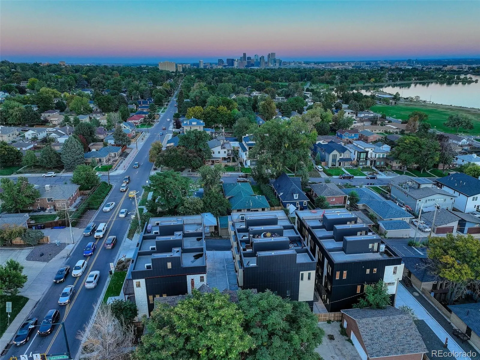 Welcome to this brand-new luxury townhome offering the best of Denver living with stunning views of Sloan’s Lake, the Rocky Mountains, and the vibrant downtown skyline. Designed across three levels with an expansive fourth-floor rooftop deck, this home blends modern style with thoughtful functionality, creating the perfect balance for both entertaining and everyday living. The main level opens with a versatile office highlighted by luxury vinyl flooring and recessed lighting—an ideal space for working from home or creative pursuits—paired with a stylish powder bath for convenience. Upstairs, the second level is the heart of the home, featuring a bright open-concept design where the family room and dining area flow seamlessly into the gourmet kitchen. The kitchen showcases quartz countertops, stainless steel Samsung appliances, a striking tile backsplash, and soft-close cabinetry, all illuminated by recessed lighting for a sleek and inviting atmosphere. On the third level, the private primary suite offers a serene retreat with dual closets, recessed lighting, and a spa-inspired bathroom complete with light gray soft-close cabinetry, quartz countertops, black accents, and a beautifully tiled walk-in shower. A secondary bedroom with an oversized closet also enjoys its own full en suite bath with tub and quartz-topped vanity, creating a perfect guest suite or secondary living space. A conveniently located laundry area completes this floor. Crowning this remarkable residence is the expansive rooftop deck, where panoramic views stretch from Sloan’s Lake to the Front Range and across the glittering downtown skyline. Whether hosting friends, enjoying sunrise coffee, or watching the sun dip behind the mountains, this rooftop defines Denver living at its finest. Just steps from Sloan’s Lake, trails, and green spaces, and minutes from Denver’s best dining, shopping, and nightlife, this townhome offers a lifestyle that is truly unmatched. WELCOME HOME!