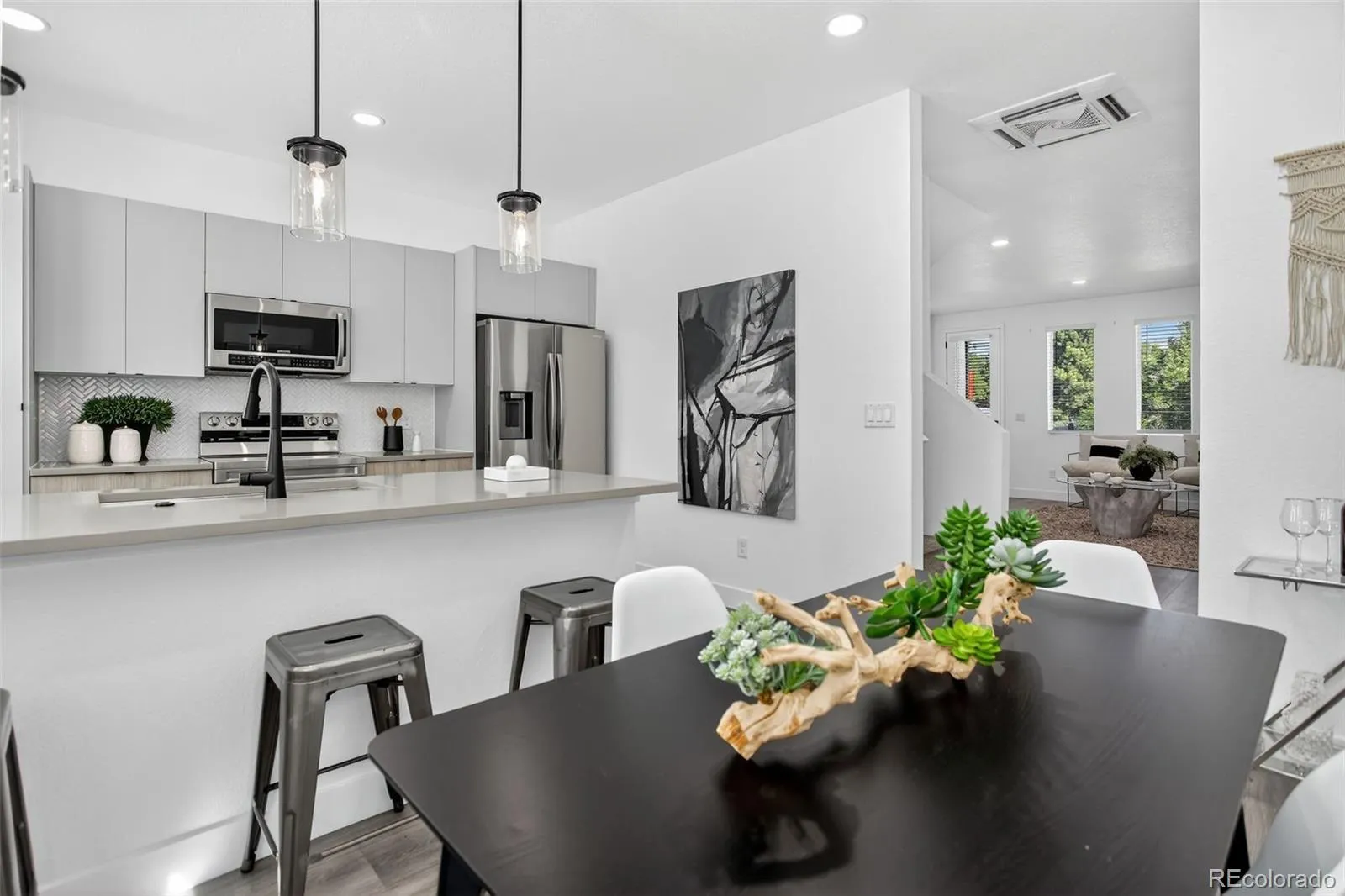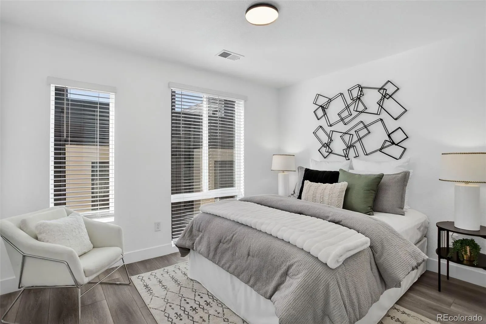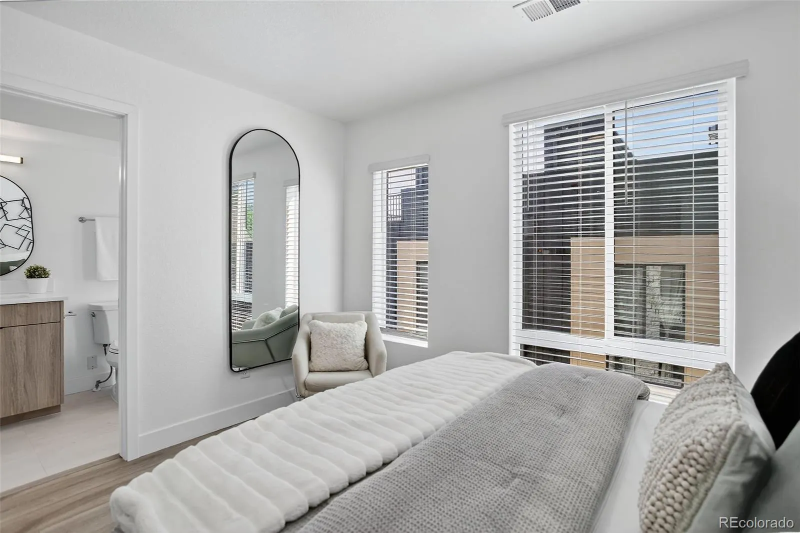 Welcome to this brand-new luxury townhome offering the best of Denver living with stunning views of Sloan’s Lake, the Rocky Mountains, and the vibrant downtown skyline. Thoughtfully designed across three levels with an expansive fourth-floor rooftop deck, this home combines sleek finishes with functional spaces ideal for both entertaining and everyday living. The main level features a versatile office perfect for working from home or as a creative flex space, along with a stylish powder bath for convenience. Upstairs, the open-concept living area invites gatherings with a spacious family room with cozy balcony that flows seamlessly into the dining area and kitchen. Enjoy the gourmet kitchen outfitted with quartz countertops, stainless steel Samsung appliances, soft-close cabinetry, and a striking tile backsplash that adds both texture and character. On the upper level, the primary suite provides a private retreat with a generous walk-in closet, dual additional closets, and a spa-inspired bathroom showcasing quartz countertops, dual sinks, sleek tile finishes, and a beautifully tiled walk-in shower. A second bedroom also features its own en suite bathroom with a tub and tile surround, creating the perfect guest suite or secondary living space. Conveniently located nearby is the laundry area, designed for function without sacrificing style. Topping off this remarkable home is the expansive rooftop deck, where panoramic views stretch from Sloan’s Lake to the Rocky Mountain Front Range and over the glittering lights of downtown Denver. Whether hosting rooftop gatherings, enjoying morning coffee with a sunrise, or watching the sun set behind the mountains, this deck defines Denver living at its finest. Just steps from Sloan’s Lake, trails, and green spaces, and minutes from Denver’s best dining, nightlife, and shopping, this residence blends modern luxury with a lifestyle that is truly unmatched. WELCOME HOME!