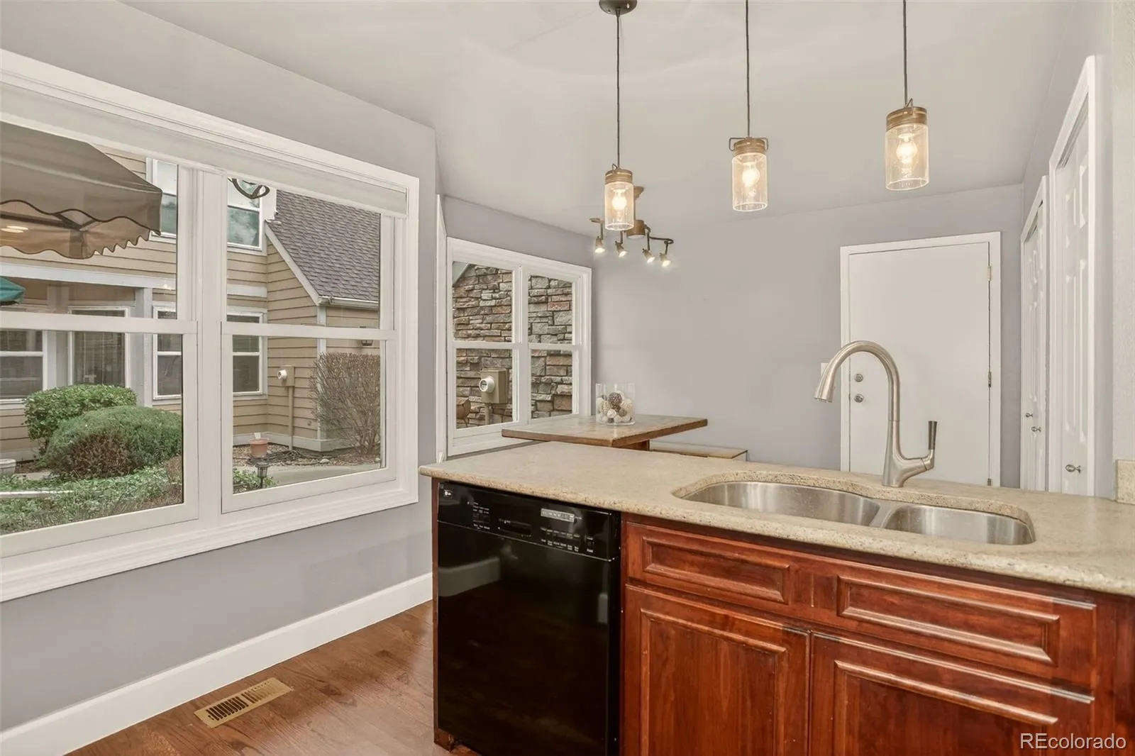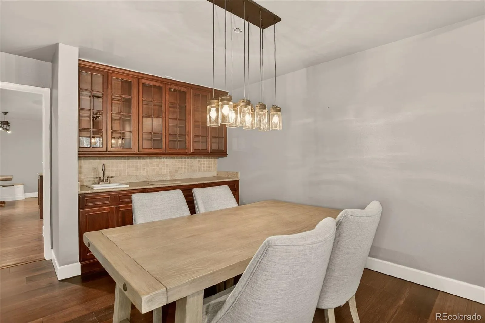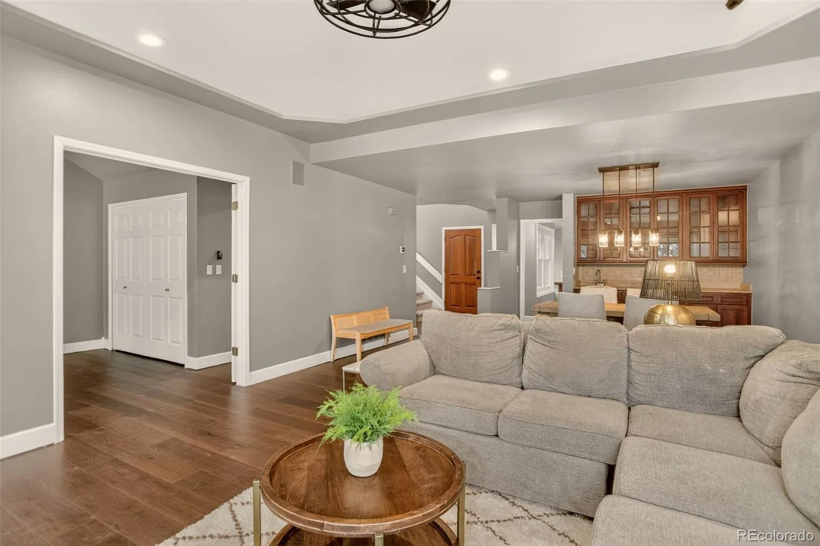 Listing Agent’s preferred Lender is offering a 1-year 1% rate buydown (or an equivalent credit for closing costs) for qualified Buyers! Welcome to this well-maintained multi-level home in a prime Denver location, just minutes from the Cherry Creek State Park trail system, everyday conveniences, and major commuter routes. The main level blends comfort and functionality with engineered hardwood and carpeted living spaces, highlighted by an inviting family room featuring an electric fireplace, recessed lighting, ceiling fan, and direct access to the backyard patio and pergola overlooking peaceful open space. The dining area adds character with built-in shelving and cabinetry, a textured granite bar, and warm farmhouse-style lighting, while the eat-in kitchen offers a cozy breakfast nook, pantry, granite accents, and a mix of recessed and sconce lighting, plus convenient access to the extended two-car garage. A versatile main-floor bedroom or office sits adjacent to a well-finished bath with tile details and modern lighting. Upstairs, the primary suite provides a comfortable retreat with a walk-in closet, seating area, ceiling fan, and a European-inspired en-suite featuring dual sinks, granite countertops, a tiled tub and shower, skylight, and refined finishes. An additional upstairs bedroom includes its own en-suite bath with granite surfaces and a medicine cabinet. The fully finished basement expands the living space with a large family room, granite wet bar, built-in cabinetry, laundry area with washer, dryer, and mini-fridge, a bathroom with tile shower, and two additional rooms—one conforming bedroom and one non-conforming space ideal for guests, a gym, or home office. With multiple living areas, thoughtful updates, and a serene backyard setting, this home offers the flexibility and lifestyle today’s buyers are looking for.