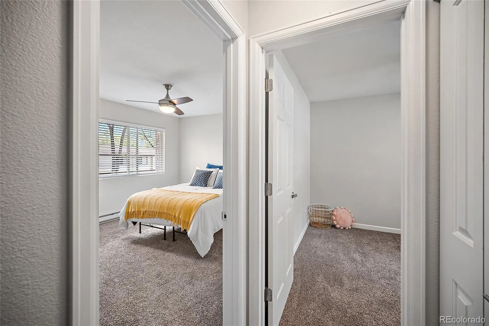 while the upper level offers plush carpet. Both bedrooms are generously sized, including a spacious walk-in closet for ample