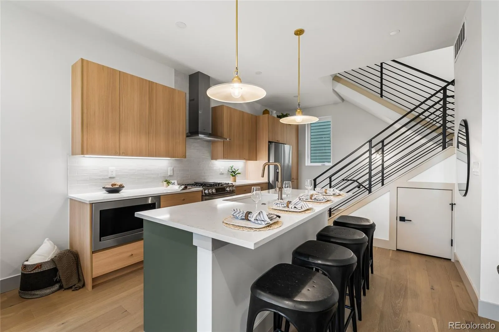 Modern, urban living with bright open concept interiors, 10’ ceilings, wide plank wood floors, and a kitchen quartz countertops, and modern soft close cabnets, plus a private rooftop deck with Mountain views. This brand new 3 bedroom, 3 bath residence faces Zenobia Street and delivers a contemporary layout designed for city living, entertaining, and flexibility. The main living level features abundant natural light, premium appliance package, and washer/dryer included.