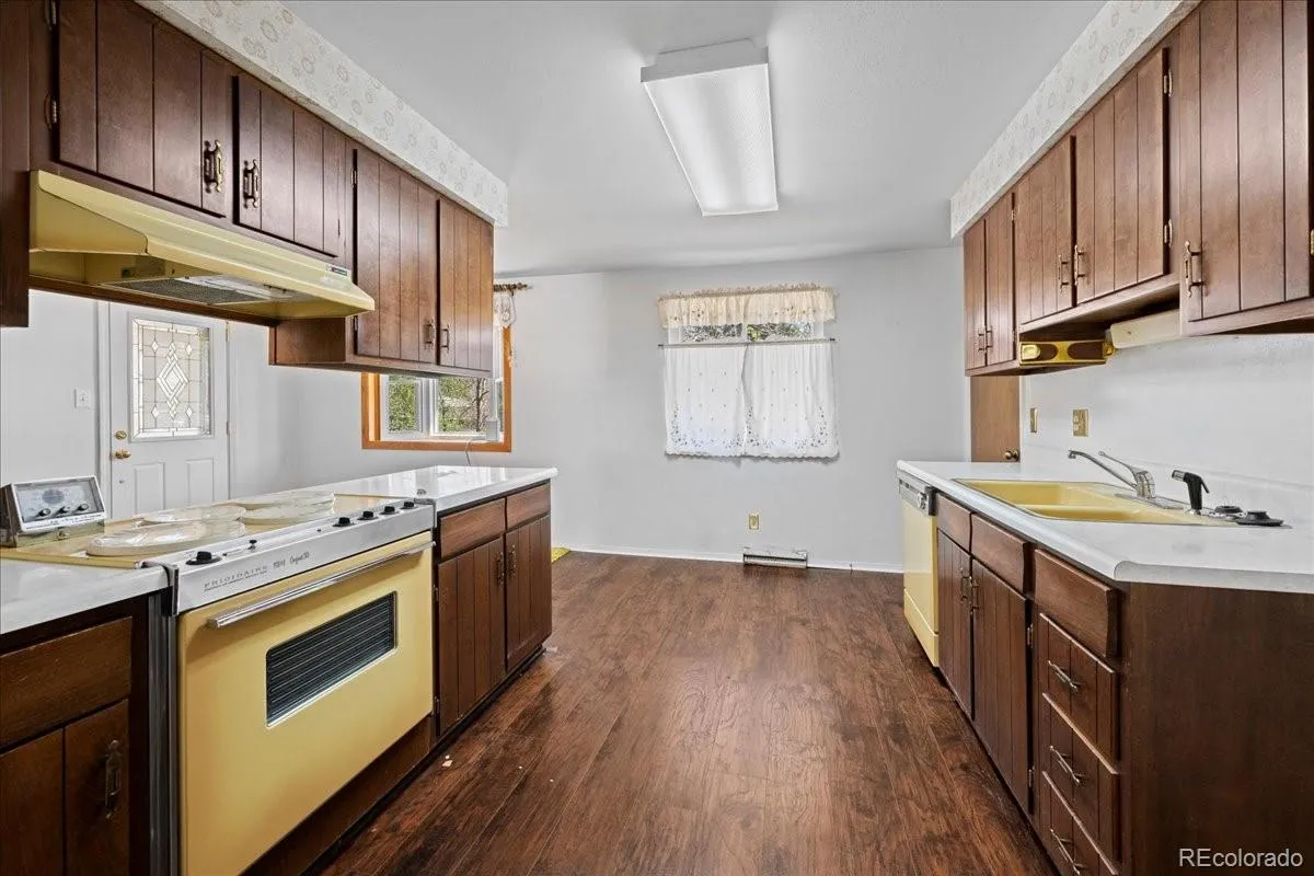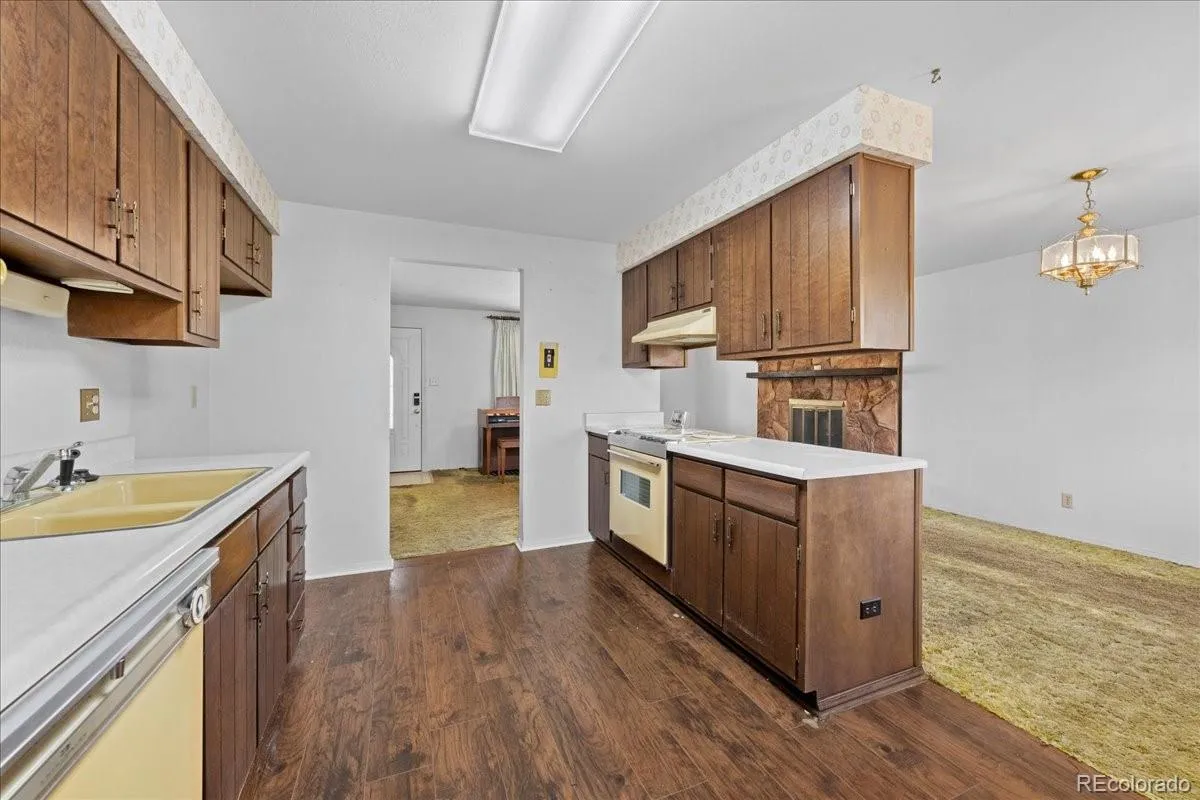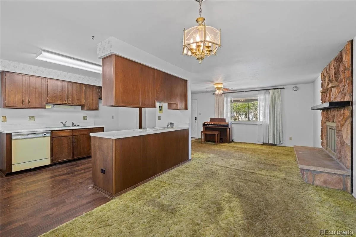 Great opportunity with great bones! Cosmetic updates would do wonders. Classic brick ranch in Lakewood’s highly desirable Sun Valley Estates. Loving family has owned the home since 1978. Very spacious lot in the city. Being sold in AS-IS condition. Don’t miss your chance for some sweat equity. Newer water heater, and furnace. Covered front porch, two car attached garage. Living room with fireplace and dining area. Open kitchen to living room and dining room areas. Covered patio and fully fenced yard with sprinkler system and 2 sheds. 3 beds on main floor, 3/4 bath, lots of light and flowing floorplan! Full finished basement with family room with fireplace, 4th bedroom with closet in the basement with no egress window (non-conforming), second bath, laundry room, storage area and/or small office. Easy access to nearby parks, Lakewood City Center, BelMar, St. Anthony Hospital, Federal Center and Federal Center Lite Rail/Park-n-Ride. Easy access to Downtown Denver and the Rocky Mountains. Home located in a great neighborhood. Livable as-is, home awaits your updates to make it your own. You’ll love living here! EASY TO SHOW…
