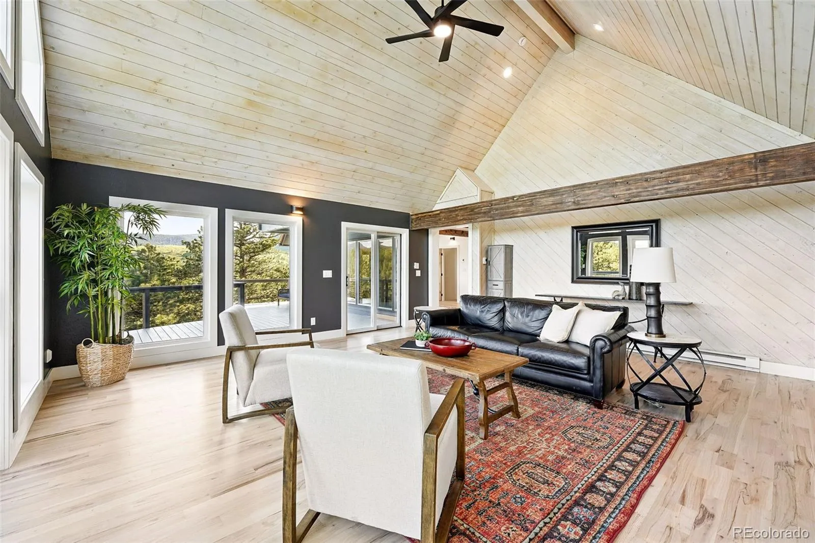 A True Mountain Retreat. This rare opportunity offers a stunning mountain property with both seclusion and convenience-just minutes from downtown Boulder, yet immersed in nature with expansive 360-degree views near national forest. Extensively and thoughtfully remodeled, the home features high-efficiency appliances, updated double-pane wood casement windows, and new doors for improved energy performance. A durable metal roof insulated to R48 ensures year-round comfort. The electric radiant ceiling heat system provides dust-free warmth with zoned smart thermostats in every room—designed to feel like sunlight on a warm day. A sunroom just off the main living area showcases some of the home’s most spectacular views. Bathed in natural light, it opens to the deck—perfect for morning coffee, sunset watching, or quiet reflection. Though listed as a 3-bedroom due to septic rating, a flexible 4th room offers options for a bedroom, office, or creative space, complete with upper-level laundry hookups. A lower-level mother-in-law suite with its own kitchen and laundry makes this home ideal for multigenerational living, shared ownership, or rental flexibility—with two full kitchens and two laundry areas offering exceptional versatility. You’ll also find a spacious lower-level bonus room—perfect for a home gym, craft studio, or workspace. Just off the kitchen, a beautiful flagstone patio expands your living space outdoors, surrounded by professionally designed mountain landscaping and anchored by a gas firepit—an inviting setting for gatherings or quiet evenings under the stars. Multiple outbuildings, including a detached workshop, add even more functionality. Fire mitigation certification is in place. Friendly neighborhood with a strong sense of community. Wildlife abounds—deer, foxes, birds, and more. If you’re seeking a mountain lifestyle with easy access to Boulder, this is the one. Peaceful. Private. Connected. Welcome home.