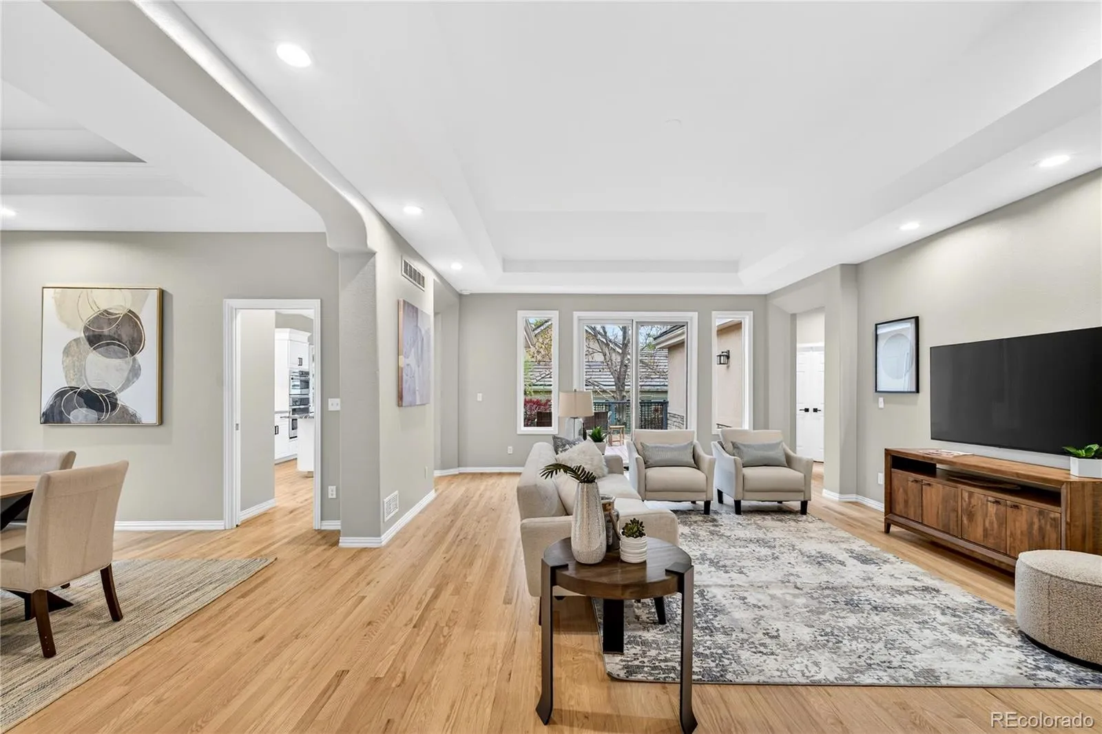 Set within the highly desirable Bateleur community at The Preserve in Greenwood Village, this thoughtfully updated home offers a rare combination of privacy, simplicity, and connection to the outdoors. Positioned on a quiet interior cul-de-sac with gated access to the High Line Canal trail, the setting feels calm and removed while still just minutes from the Denver Tech Center and everyday conveniences. Designed for true main-level living, the home features a light-filled, open layout with expansive living spaces and an easy, natural flow from room to room. Real wood flooring extends throughout most of the main level, creating a cohesive and elevated feel. The main floor includes a private primary suite situated along the garden side of the home, along with two additional bedrooms and a true office. Dining fireside in the spacious kitchen or al fresco on the oversized deck are both options in this lovely home—and hosting is always easy with the true formal dining room. Meaningful updates, including newer Pella windows and sliding glass door; updated HVAC with enhanced filtration and humidification; enhanced insulation; a newer water heater; a recently updated garage door opener; a newly poured driveway; updated guest baths; and the addition of an EV charger, bring a level of comfort and confidence that is rare to find. The open lower level provides additional flexibility, whether used as-is or finished over time. Residents of Bateleur enjoy a low-maintenance lifestyle, with HOA services that cover front landscaping, snow removal, and more, along with access to a clubhouse, fitness center, pool, and a calendar of social activities that foster a true sense of community. Come see why Bateleur remains one of Greenwood Village’s most consistently sought-after communities.