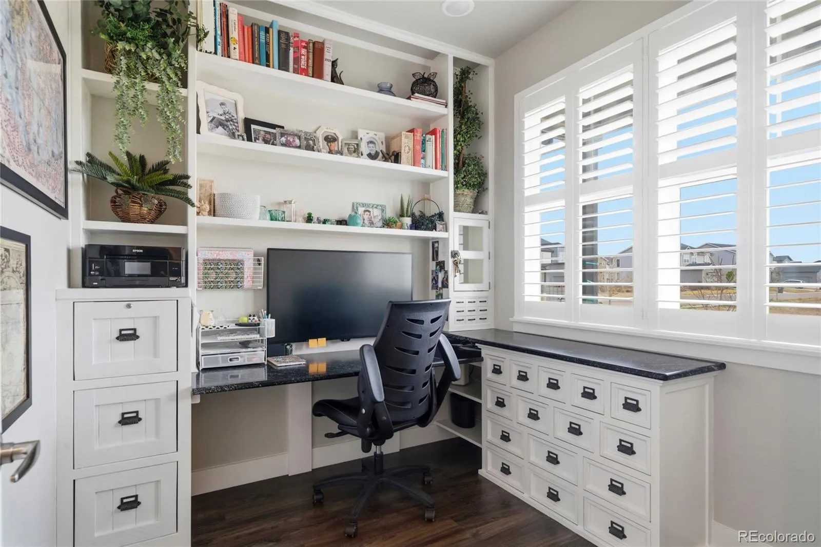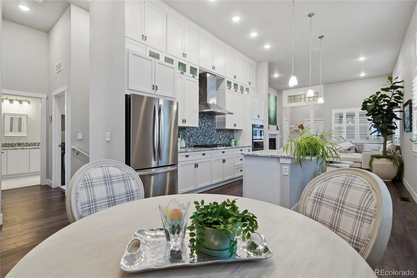 Set on a premium open-space lot in Trailside, this extensively upgraded 2020 ranch offers model-home quality throughout. Cottage-style charm outside pairs with an open, spacious interior designed for everyday living and entertaining. Inside, you’ll find soaring 12-foot ceilings, a private built-in office, a striking great room with gas fireplace, and a beautifully upgraded kitchen with granite countertops, premium stainless steel appliances, full-height cabinetry, designer backsplash, and a large dine-in island. Premium plantation shutters throughout add a polished, upscale look, while built-in main-level speakers, back patio prewired for speakers, and a whole-home central vacuum system add everyday convenience and comfort. All kitchen and laundry appliances stay with the home. The main-level primary suite features an upgraded en suite bath with oversized shower and upgraded cabinetry. A second bedroom, full bath, and main-level laundry complete the main floor. The finished basement adds a large family room, kitchenette, third bedroom, and 3/4 bath, while the unfinished area offers future expansion potential. Outside, enjoy three patio and seating areas, including two covered spaces, along with permanent holiday lighting.