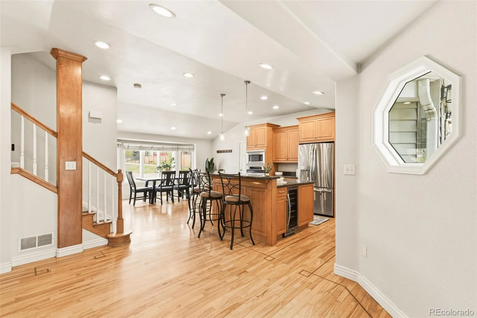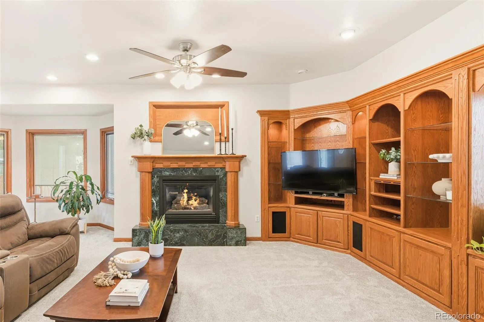 A well cared-for home located in an award-winning school district — this home is a showcase of convenience and elevated livability. The open-concept main floor is saturated in natural light from bowed windows that illuminate a dining area and inviting kitchen. Here, a selection of custom finishes come together for an entertainer’s haven with custom cabinetry, slab granite counters, stainless steel appliances, and a kitchen island with high-top seating. A spacious living area is anchored by a fireplace and surrounded by custom built-in storage. The primary suite shines with an airy color palette and en-suite bathroom with a deep soaking tub, walk-in shower, and a dual L-shaped vanity. Discover flexibility with a lower level that is versatile for a guest hideaway, recreation room, home office, and more. Outside, a spacious patio is shaded by a mature tree and overlooks an expansive backyard surrounded by privacy fencing. Located across the street from Ford Elementary, this home merges meticulous care and convenience.