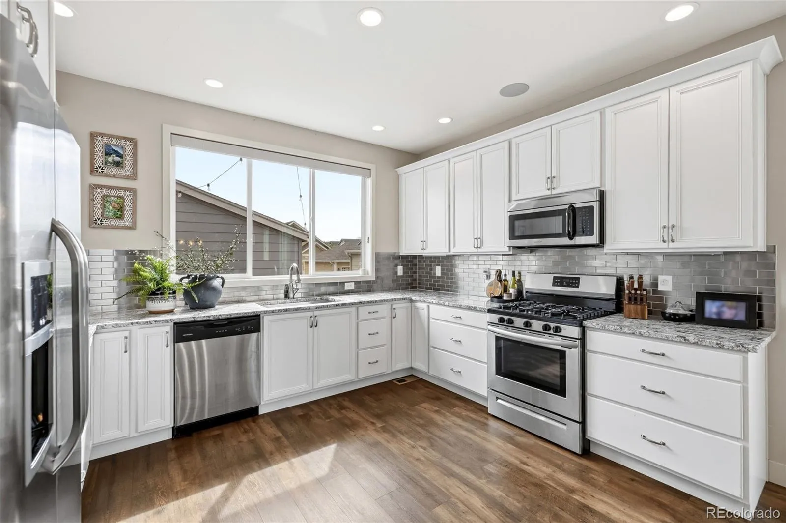 Welcome Home!!! This immaculantly maintained modern home in the heart of Brighton crossing offers the perfect blend of comfort, functionality, and convenience. Upon entering your greeted by a bright and open floor plan designed for both everyday living and entertaining. The spacious living area flow seamlessly into the kitchen and dining space creating an ideal layout for gatherings. The kitchen features granite countertops, soft close cabinetry, stainless steel appliances, plenty of counter and cabinet space, gas cooktop as well as a space for your kitchen table. Upstairs, you will find the primary suite with a private bathroom and walk-in closet. Also, upstairs is another bedroom, full bathroom and a laundry room. Completing this home is the fully finish basement which has another living room bedroom and bathroom. This area is perfect for a mother-in-law, houseguests, office, teenage children or general family entertaining area. This adorable home offers comfortable bedrooms with great natural light, along with well-appointed bathrooms designed for ease and practicality. Other features of the home are: air-conditioning, high-end modern finishes, LVP flooring, window treatments, all appliances including washer and dryer, tankless water heater, owned security system, radon mitigation system, sprinkler system, covered front porch, backsplash, and speakers throughout. The fully landscaped front and backyard features an extended patio with a dedicated gas line for grilling perfect for enjoying our beautiful Colorado evenings. Located in the family, friendly neighborhood of Brighton crossings community, which affords resort style amenities with a beach club, two fitness centers, soccer fields, Pickleball courts, and a dog park.