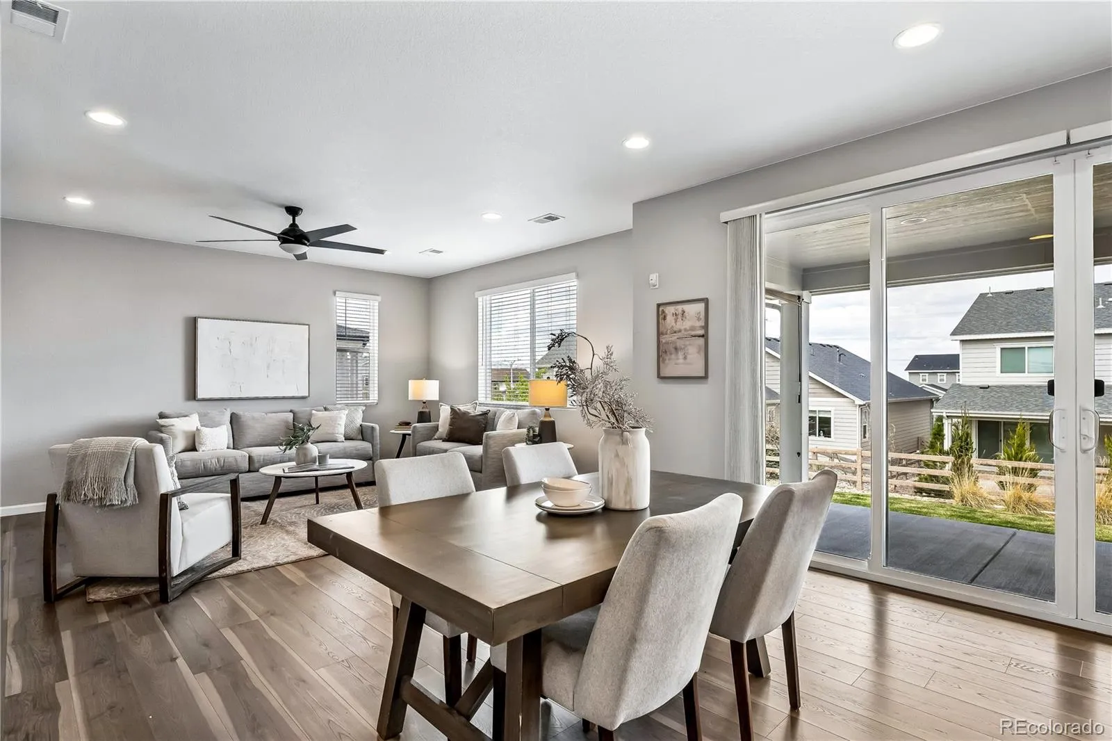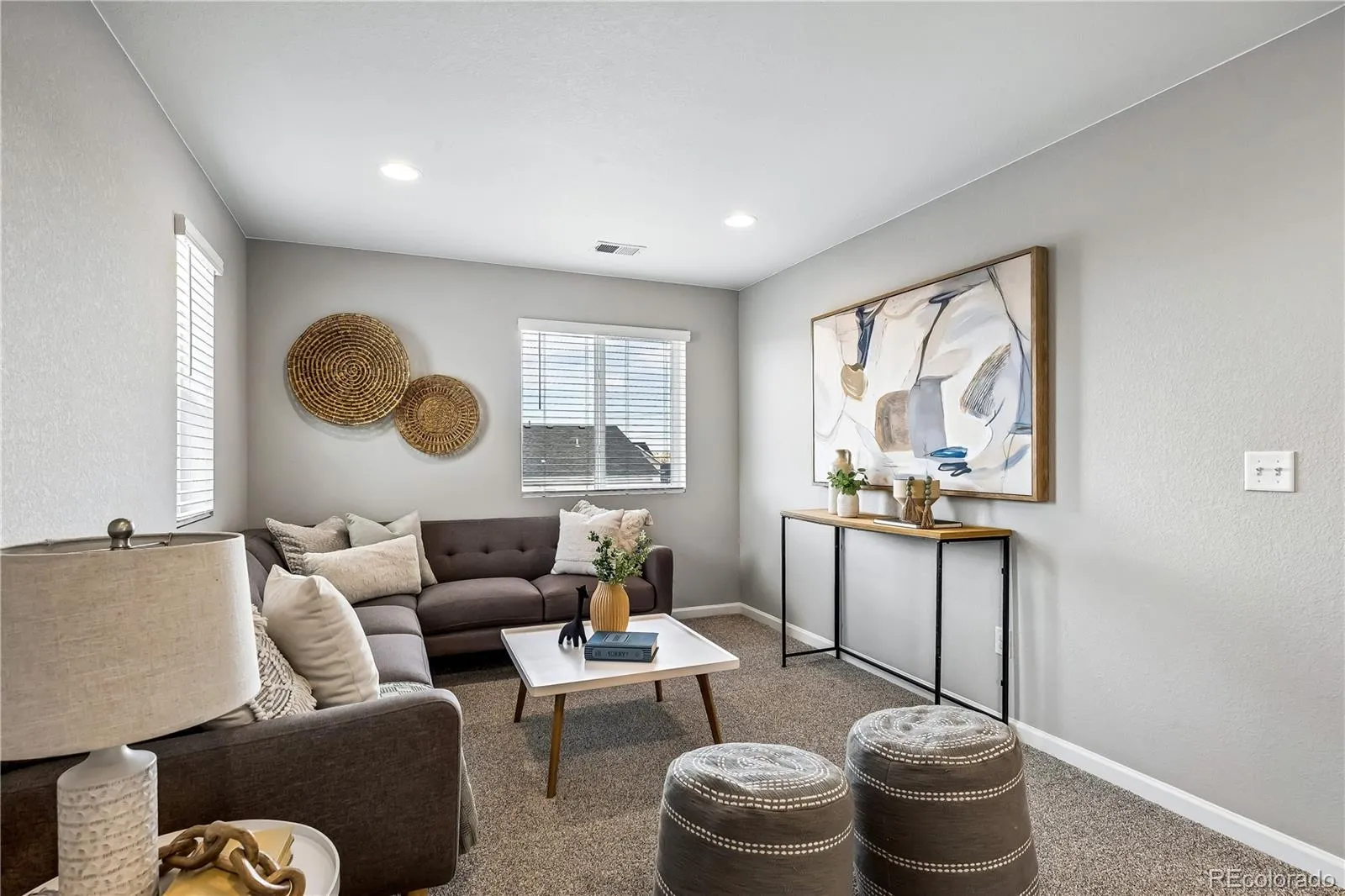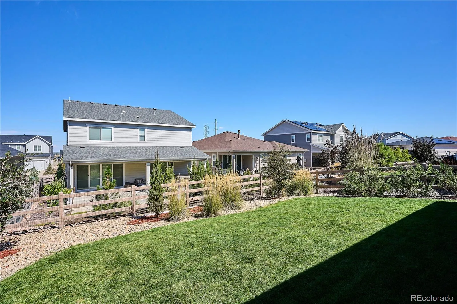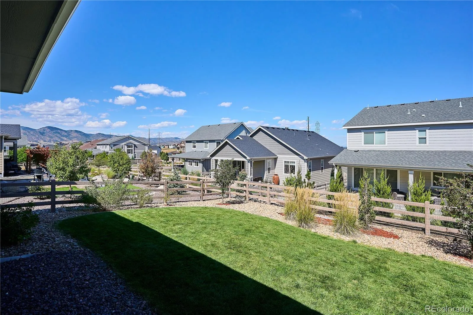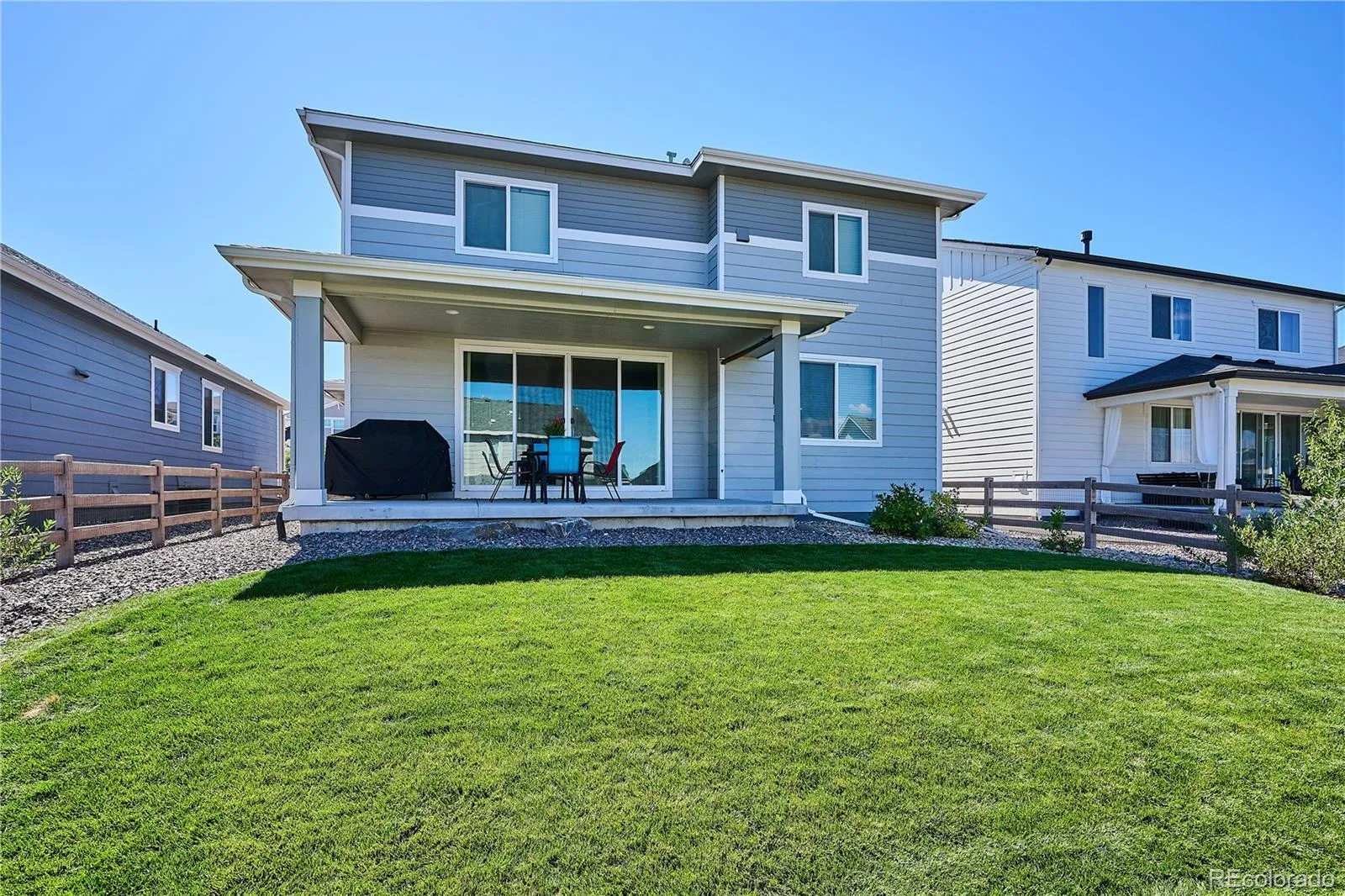WELCOME HOME to Sterling Ranch! It is the Denver Metro area’s top-selling community since 2020. Ideally located near Chatfield and Roxborough State Parks, you’ll enjoy endless open space, recreation, and exciting future amenities including new schools, a sports complex, and library. This one-owner Richmond Westfield floor plan offers exceptional functionality with no wasted space. Situated on a generous lot near a pocket park, the home features thoughtful upgrades including a covered front porch, added windows, and a stunning wall of glass doors opening to a covered patio, perfect for indoor-outdoor living in the beautifully landscaped yard. Inside, luxury vinyl plank flooring, 8’ doors, and abundant natural light elevate the main level. A private flex space is ideal for a home office or study. The open-concept great room easily accommodates large gatherings and includes an 85” TV. The dining area seats six comfortably, while the oversized island adds additional seating. The kitchen shines with white cabinetry, crown molding, granite counters, stainless steel appliances including a gas range and counter-depth refrigerator, a pantry, and a custom mudroom with built-ins. A powder room completes the main floor. Upstairs features all-new carpet and padding, plus a spacious loft with mountain views, perfect as a flex space or optional fourth bedroom. The primary suite offers a generous layout, large walk-in closet, and upgraded bath with dual undermount sinks, Corian counters, and a beautifully tiled shower. Two additional bedrooms, both with walk-in closets, share a dual-sink bath with tub/shower combo. A convenient upstairs laundry room includes front-loading washer and dryer. Additional highlights include SMART Home Technology through the Sterling Ranch CAB, an oversized garage prewired for EV charging with ample storage, solar readiness, a 50-gallon water heater, radon mitigation system with HVAC and air ducts recently cleaned. An incredible find that won’t last!