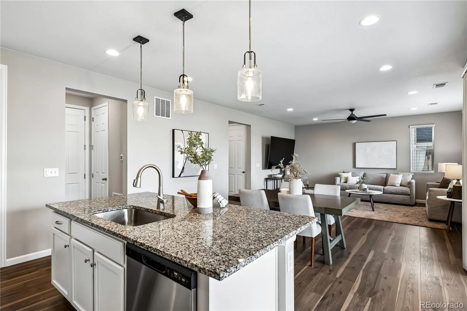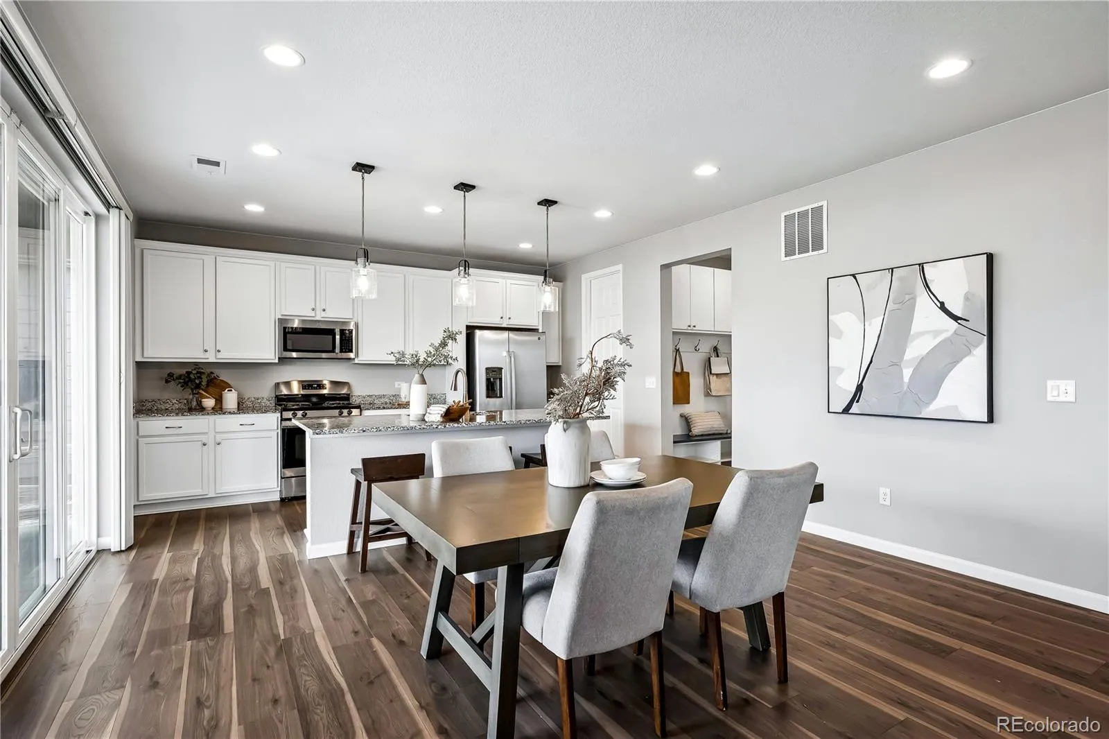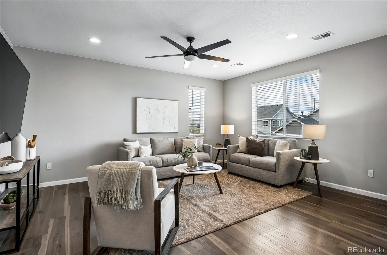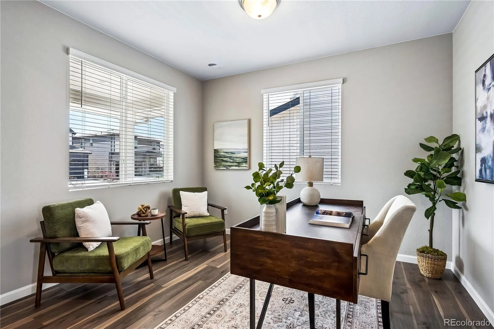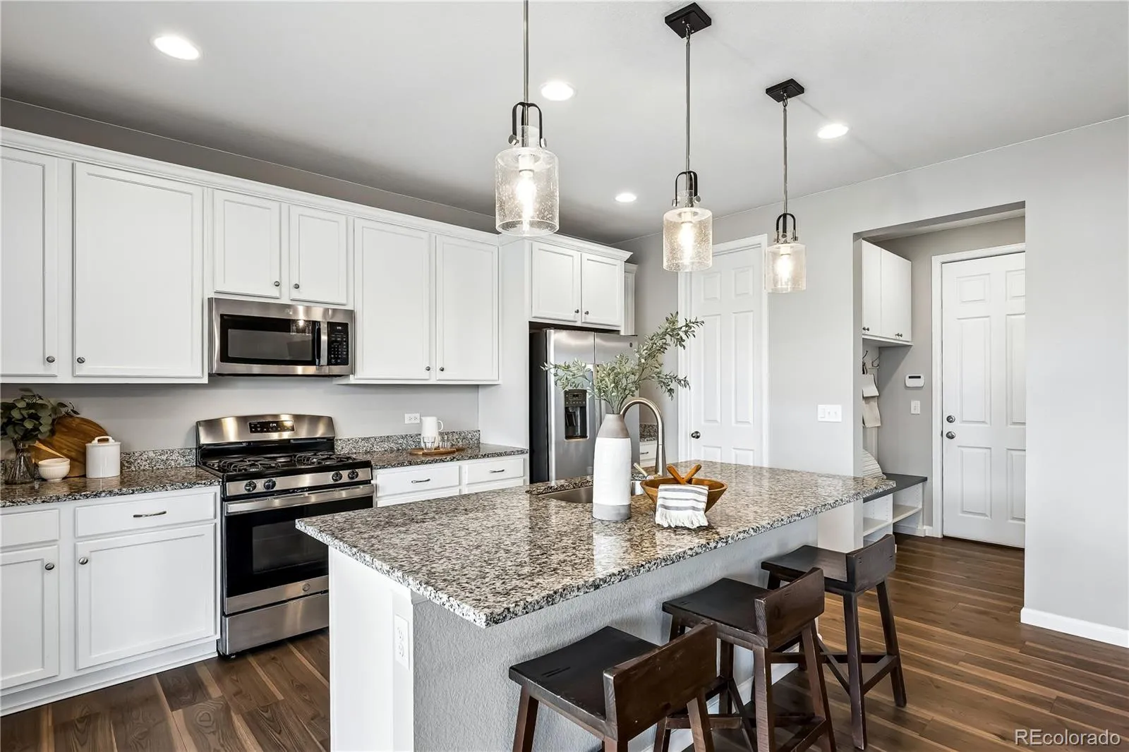 WELCOME HOME to Sterling Ranch! It is the Denver Metro area’s top-selling community since 2020. Ideally located near Chatfield and Roxborough State Parks, you’ll enjoy endless open space, recreation, and exciting future amenities including new schools, a sports complex, and library. This one-owner Richmond Westfield floor plan offers exceptional functionality with no wasted space. Situated on a generous lot near a pocket park, the home features thoughtful upgrades including a covered front porch, added windows, and a stunning wall of glass doors opening to a covered patio, perfect for indoor-outdoor living in the beautifully landscaped yard. Inside, luxury vinyl plank flooring, 8’ doors, and abundant natural light elevate the main level. A private flex space is ideal for a home office or study. The open-concept great room easily accommodates large gatherings and includes an 85” TV. The dining area seats six comfortably, while the oversized island adds additional seating. The kitchen shines with white cabinetry, crown molding, granite counters, stainless steel appliances including a gas range and counter-depth refrigerator, a pantry, and a custom mudroom with built-ins. A powder room completes the main floor. Upstairs features all-new carpet and padding, plus a spacious loft with mountain views, perfect as a flex space or optional fourth bedroom. The primary suite offers a generous layout, large walk-in closet, and upgraded bath with dual undermount sinks, Corian counters, and a beautifully tiled shower. Two additional bedrooms, both with walk-in closets, share a dual-sink bath with tub/shower combo. A convenient upstairs laundry room includes front-loading washer and dryer. Additional highlights include SMART Home Technology through the Sterling Ranch CAB, an oversized garage prewired for EV charging with ample storage, solar readiness, a 50-gallon water heater, radon mitigation system with HVAC and air ducts recently cleaned. An incredible find that won’t last!