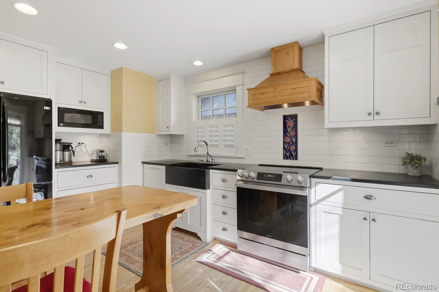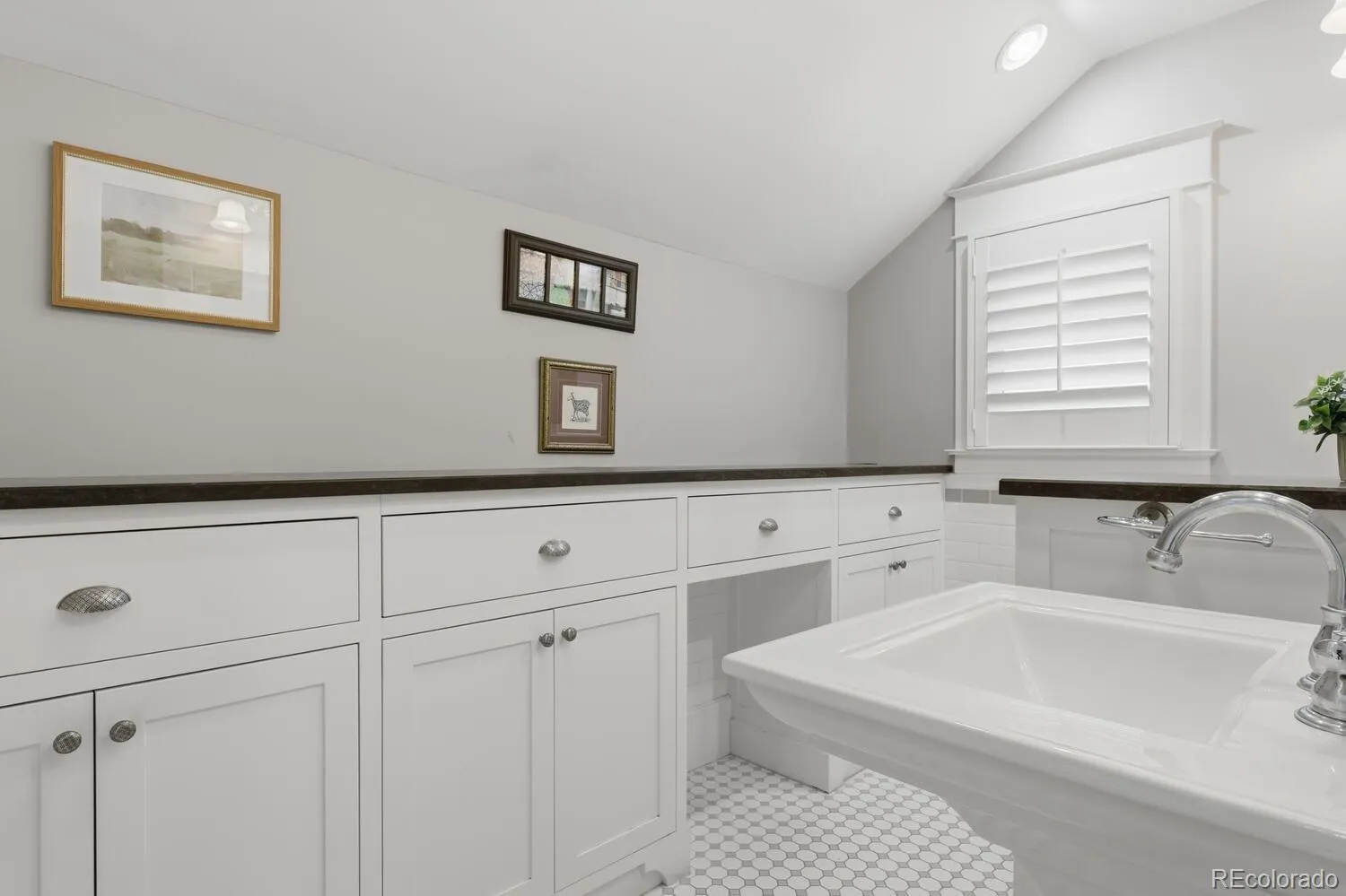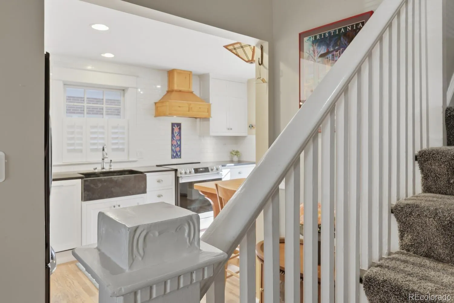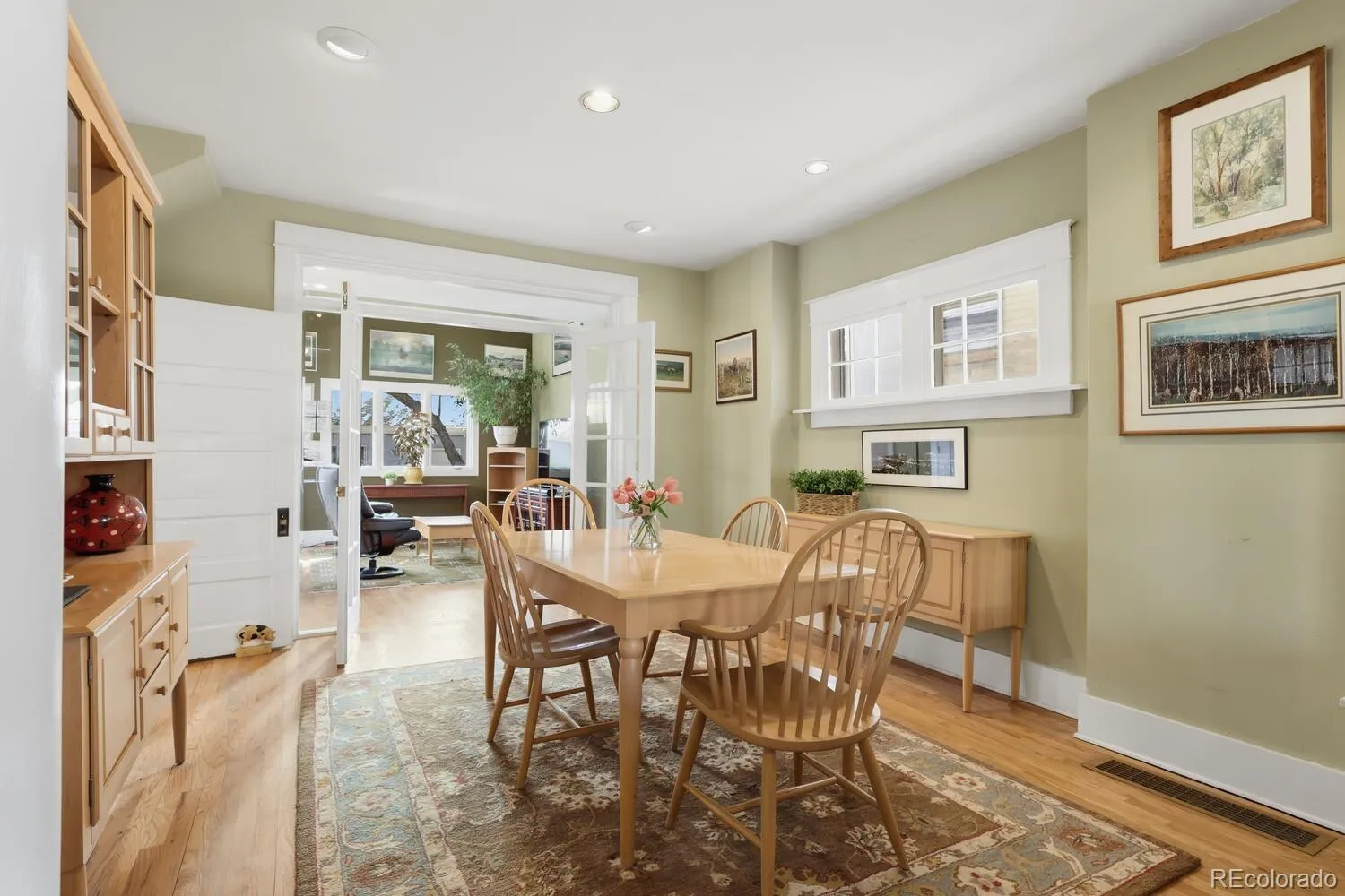 Charming Park Hill beauty! A generous front porch welcomes you to this classic lovingly cared for home. As you enter the home you are greeted with the charm and elegance of hardwood floors, high ceilings, columns, and a decorative living room fireplace. The main floor features French doors to an office or bedroom with exposed brick, a formal dining room, and French doors to a family room with vaulted ceilings and an attached powder room. The kitchen has been completely remodeled with classic charm and thoughtful design that seamlessly flows to a butler’s pantry. The kitchen features stone counters, updated appliances, a custom wood stove vent and a built-in table for two. Upstairs there are three additional bedrooms, including a primary suite with vaulted ceilings, a mini-split for additional comfort, two closets and an en-suite primary bath that has been remodeled with style and charm. The primary bath includes two pedestal sinks, abundant storage, stone countertop and a generous shower. There is so much potential in the spacious unfinished basement that has plenty of room for storage. The backyard features stone patios, custom water feature and low maintenance landscaping. There is a two car garage, The front yard is beautifully xeriscaped to save water and reduce maintenance. This Park Hill charmer is move in ready and brimming with potential.