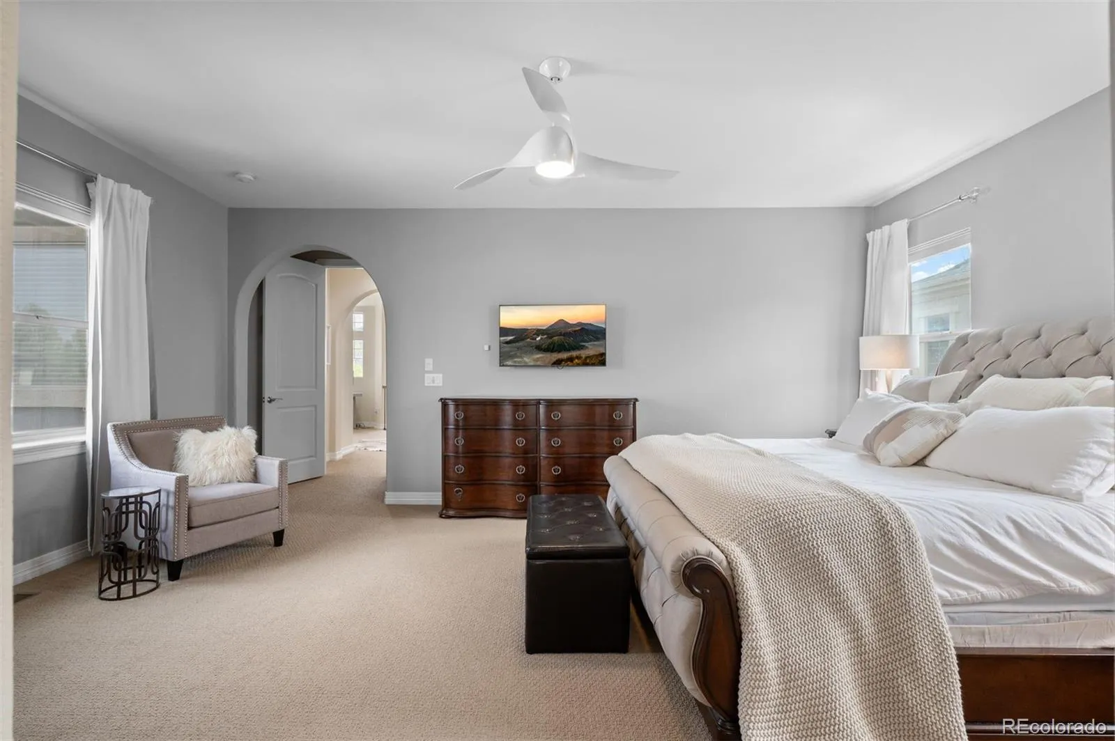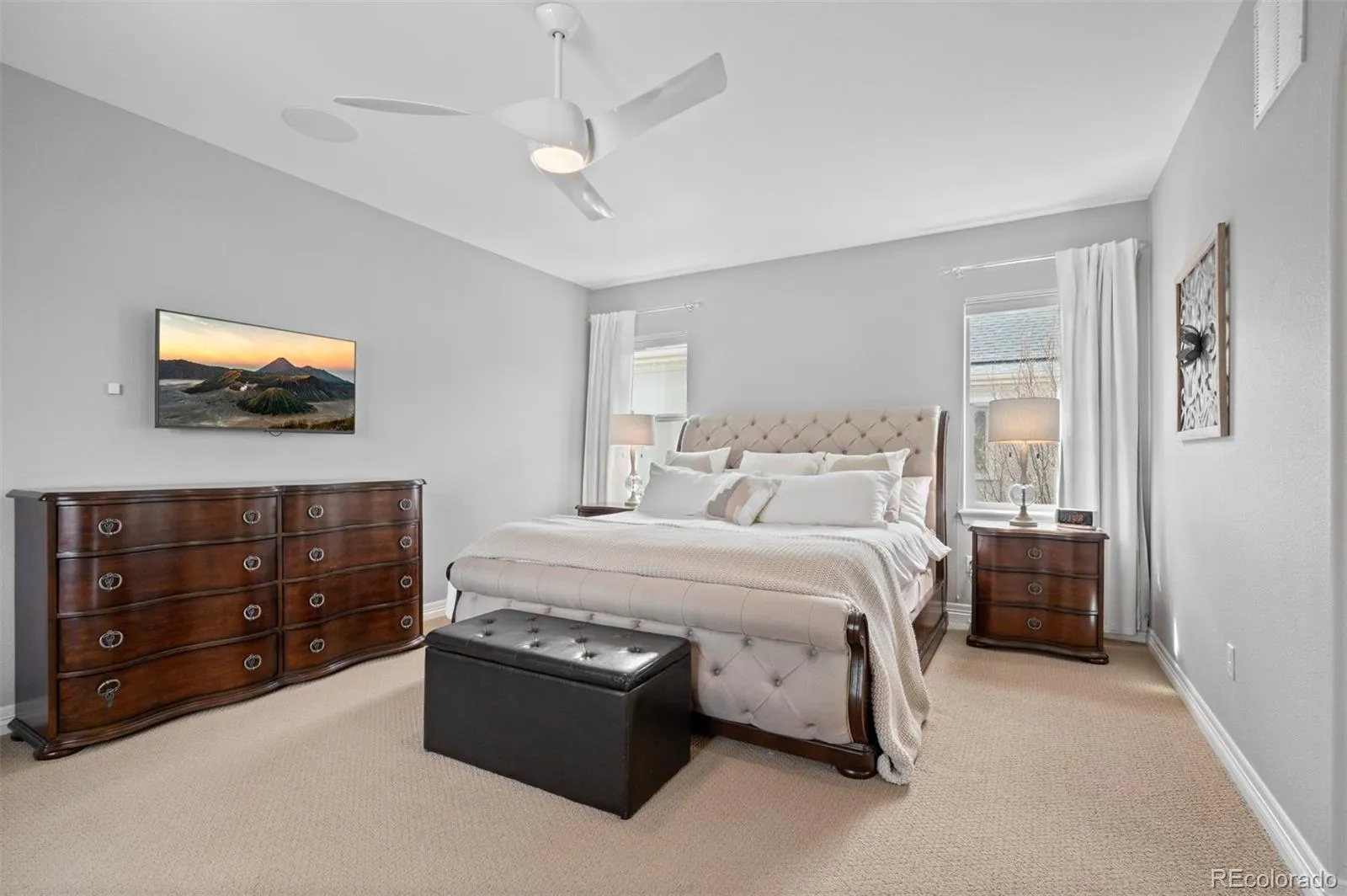 Showings begin 4/17/26. 5 Bed/4 Bath Central Park Stunner! Located on a pocket park and one block from Central Park, this Infinity residence provides easy access to Jet Stream Pool, Central Park Rail Station, and Westerly Creek Trail. Positioned on a professionally landscaped lot, the fully fenced grounds are framed by mature trees—creating a rare sense of privacy and calm. Inside, a light-filled open floor plan is defined by soaring ceilings, a dramatic two-story living room with fireplace, expansive windows with Silhouette window treatments, and rich hardwood flooring. The chef’s kitchen is beautifully appointed with updated quartz countertops and backsplash, upgraded stainless-steel appliances, classic white cabinetry, custom built-ins, a generous island, and a butler’s pantry—perfectly suited for refined entertaining. The main level is complemented by both casual and formal dining areas, a mud room, and a private study (or 5th bedroom) with an adjacent 3/4 bath. Upstairs three bedrooms and two full baths include a serene primary suite with a luxe five-piece bath, double vanities, private wc and dual walk-in closets. The finished basement is a true destination—offering a guest suite with en suite dual access bath, a dedicated gym, and a fully appointed home theater with oversized screen, built-in speakers, gas fireplace, wet bar, and a wine closet. Outdoor living is equally impressive with a paver patio, custom pergola, outdoor stone fireplace and raised irrigated garden beds. Surround sound inside and out. An oversized attached two-car garage provides ample space for vehicles and gear. New exterior paint 2022, New roof in 2019, new furnace & AC in 2020. Private, polished, and perfectly positioned in one of Denver’s most coveted neighborhoods.