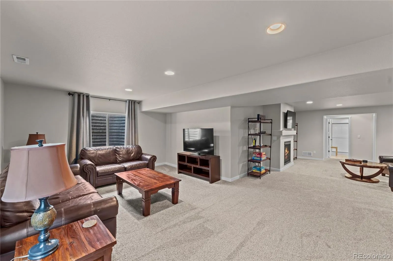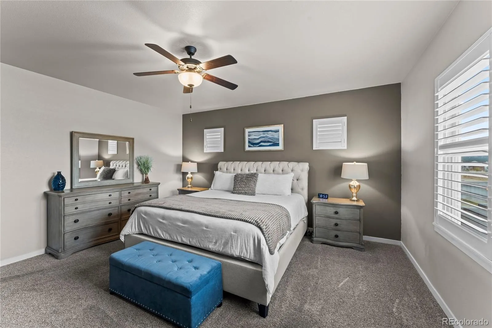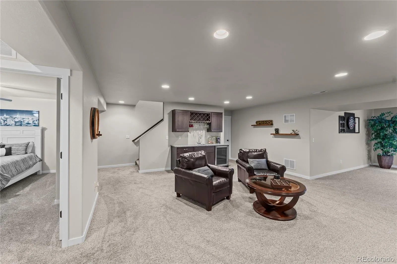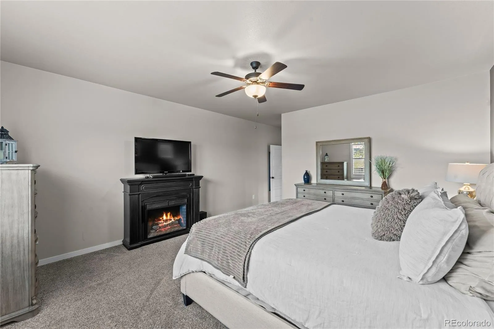 Nestled in the highly desirable community of The Farm and located within the sought-after D20 school district, this beautifully updated ranch-style home by Vantage Homes offers just under 4,000 square feet of thoughtfully designed living space. Featuring 4 bedrooms, 3 bathrooms, and a spacious 3-car garage, this residence blends comfort, functionality, and timeless elegance. A welcoming foyer opens to an inviting open-concept main level, where the living room is anchored by a cozy fireplace, creating a warm and sophisticated atmosphere. The stunning kitchen serves as the heart of the home, showcasing beautiful white cabinetry, a gas cooktop, a large center island, and a pantry closet. Adjacent to the kitchen, a dedicated dining area provides the perfect setting for meals and gatherings, with direct access to the beautifully landscaped backyard for seamless indoor-outdoor living. A nearby nook offers an ideal space for a home office or study. A main-level laundry room and a built-in bench just outside the garage entry create a practical drop zone for everyday convenience. The main level also features a front bedroom and a nearby ¾ bathroom adorned with stunning wallpaper, offering a stylish and welcoming space for guests. The serene primary suite serves as a private retreat, complete with a spacious walk-in closet and a luxurious en-suite bathroom featuring a large walk-in shower, double vanity, and a private water closet. The expansive lower level is designed for relaxation and entertaining, featuring a second fireplace, a wet bar, two additional bedrooms, and a ¾ bathroom, along with abundant storage space. The Farm community offers exceptional amenities, including a clubhouse, pool, fitness center, scenic pond, and miles of walking trails. Conveniently located near shopping, dining, I-25, and the United States Air Force Academy, this home provides the perfect balance of luxury, comfort, and accessibility, complemented by beautiful mountain views.