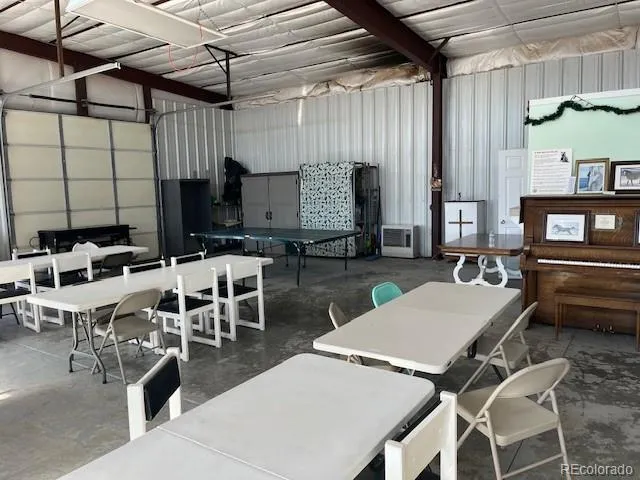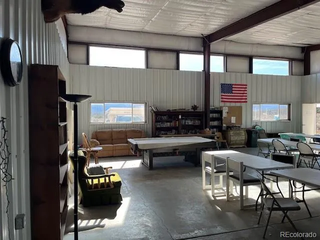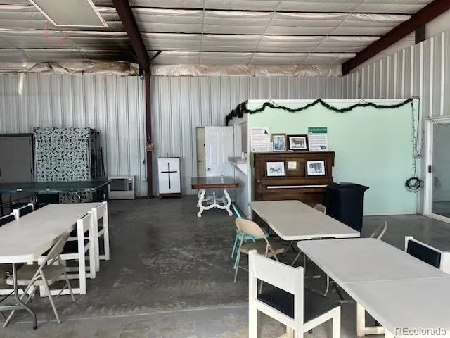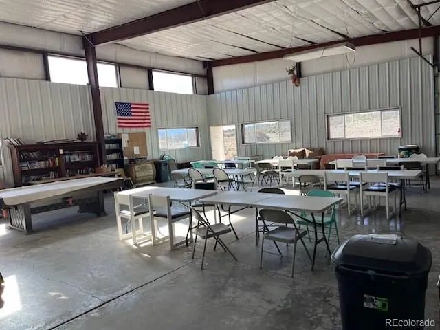 4949 sqft metal building on top of Wild Horse Mesa that has housed the Community Center and the Fire Department. This property has electricity and fiber optic connected and is on the Lake Sanchez water line. Three tall roll-up garage doors open to a large, clean, open space with plenty of room for a large shop as well as parking for equipment or toys. The south end has served as the community meeting space but could be converted to living space or used for an office. The fully functioning kitchen adds to the possibilities for this unique property.