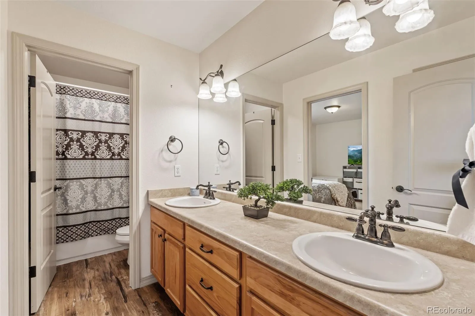 Upstairs, the oversized primary suite captures stunning mountain views and features a five-piece bath with a soaking tub and walk-in closet. Two additional bedrooms share a Jack-and-Jill bath, while a spacious laundry room with upper cabinetry adds everyday convenience. Wide hallways, 36-inch doors, and updated LVP flooring further enhance the upper level.