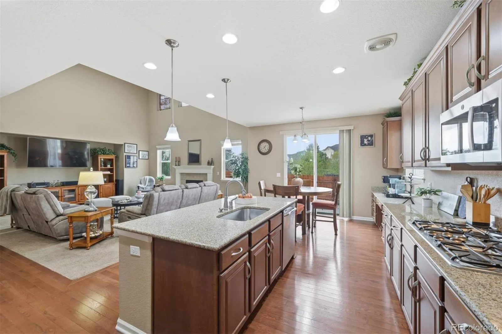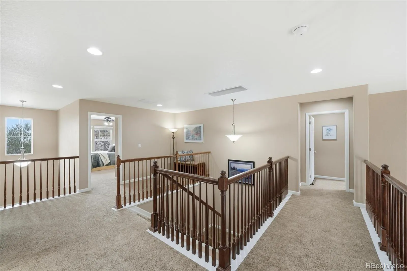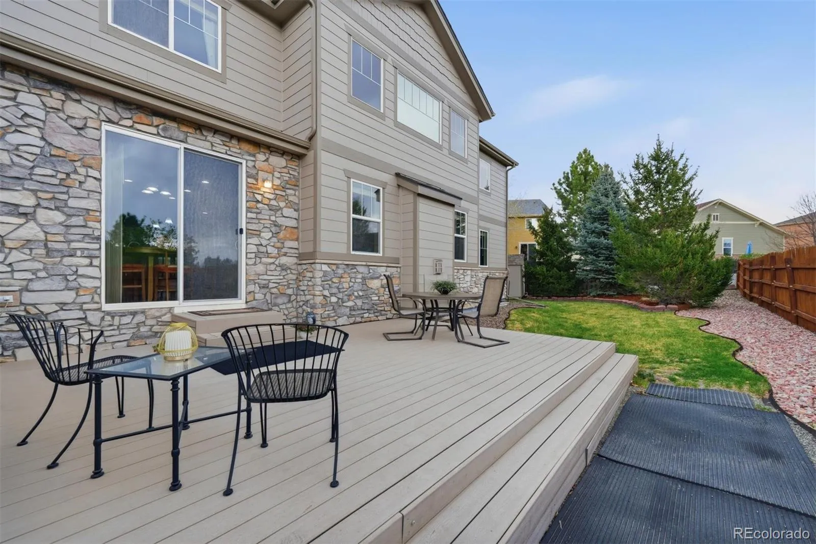 WELCOME TO YOUR PRIVATE SANCTUARY ON A PREMIER LOT! Perfectly positioned on one of the more desirable homesites in the community, this exceptional property offers a rare side & rear neighbor configuration-enhancing privacy, expanding views & creating a sense of openness with no homes looming over you. The setting alone truly sets this home apart! Meticulously maintained & updated, this home blends style, refinement & comfort. The expansive open floorplan is flooded with natural light from dramatic floor-to-ceiling windows & soaring two-story cathedral ceilings. Designed for both everyday living & entertaining. The airy layout showcases a striking bridge overlook, real wood floors, custom paint, upscale lighting/ceiling fans, 5 spacious beds, a loft, a main-floor office & laundry room & thoughtful finishes. The chef’s kitchen is a true centerpiece-complete with extended cabinetry upgrade, a large island, slab granite, butlers pantry, stainless appliances, double ovens, gas cooktop & a sunny breakfast nook-all seamlessly opening to the inviting family room. Step outside to your private deck and unwind in a beautifully landscaped backyard-perfect for morning coffee, summer barbecues & peaceful evenings under the stars.The large primary suite offers a 5-piece bath w/soaking tub, glass shower, dual sinks & large walk-in closet. The finished basement adds incredible flexibility with a spacious rec room/gym/office area, bed & bath. Additional Highlights:• Fully owned solar panels for energy efficiency• QuietCool whole house fans (home & garage)• Smart thermostats, smart garage door & video doorbell• Newer Class 4 impact-resistant roof (2023)• Exterior paint (Oct 2025)• Newer water heater (~2024)• Oversized 3-car garage w/extended-height doors & storage racks• Storage shed. Ideally situated near parks, trails, rec centers & top-rated Cherry Creek Schools. Just minutes to Southlands Mall, shopping, dining, main highways, DTC, light rail, reservoir & DIA