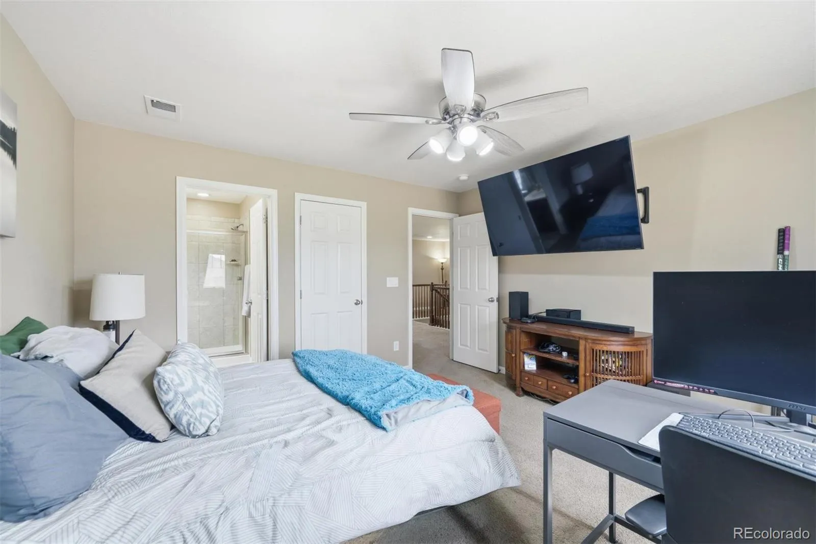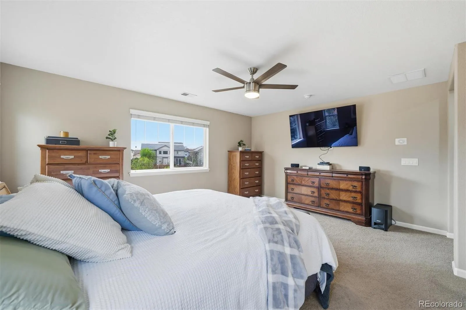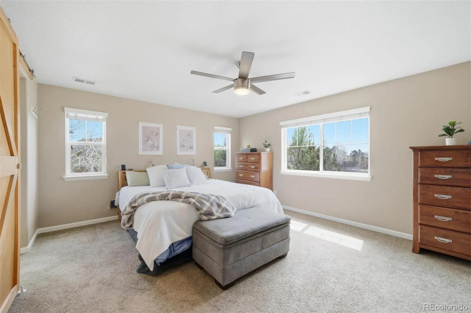 WELCOME TO YOUR PRIVATE SANCTUARY ON A PREMIER LOT! Perfectly positioned on one of the more desirable homesites in the community, this exceptional property offers a rare side & rear neighbor configuration-enhancing privacy, expanding views & creating a sense of openness with no homes looming over you. The setting alone truly sets this home apart! Meticulously maintained & updated, this home blends style, refinement & comfort. The expansive open floorplan is flooded with natural light from dramatic floor-to-ceiling windows & soaring two-story cathedral ceilings. Designed for both everyday living & entertaining. The airy layout showcases a striking bridge overlook, real wood floors, custom paint, upscale lighting/ceiling fans, 5 spacious beds, a loft, a main-floor office & laundry room & thoughtful finishes. The chef’s kitchen is a true centerpiece-complete with extended cabinetry upgrade, a large island, slab granite, butlers pantry, stainless appliances, double ovens, gas cooktop & a sunny breakfast nook-all seamlessly opening to the inviting family room. Step outside to your private deck and unwind in a beautifully landscaped backyard-perfect for morning coffee, summer barbecues & peaceful evenings under the stars.The large primary suite offers a 5-piece bath w/soaking tub, glass shower, dual sinks & large walk-in closet. The finished basement adds incredible flexibility with a spacious rec room/gym/office area, bed & bath. Additional Highlights:• Fully owned solar panels for energy efficiency• QuietCool whole house fans (home & garage)• Smart thermostats, smart garage door & video doorbell• Newer Class 4 impact-resistant roof (2023)• Exterior paint (Oct 2025)• Newer water heater (~2024)• Oversized 3-car garage w/extended-height doors & storage racks• Storage shed. Ideally situated near parks, trails, rec centers & top-rated Cherry Creek Schools. Just minutes to Southlands Mall, shopping, dining, main highways, DTC, light rail, reservoir & DIA