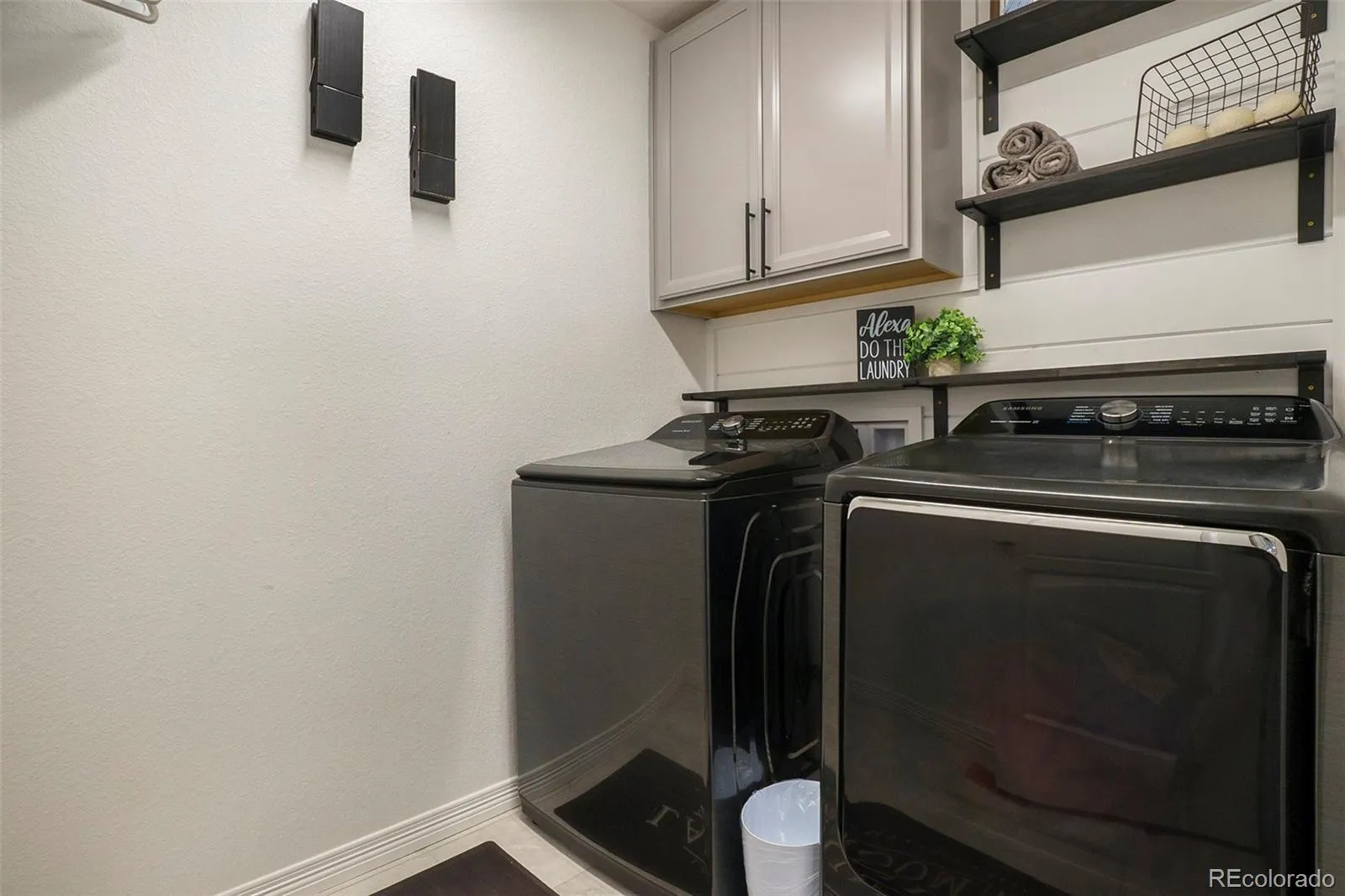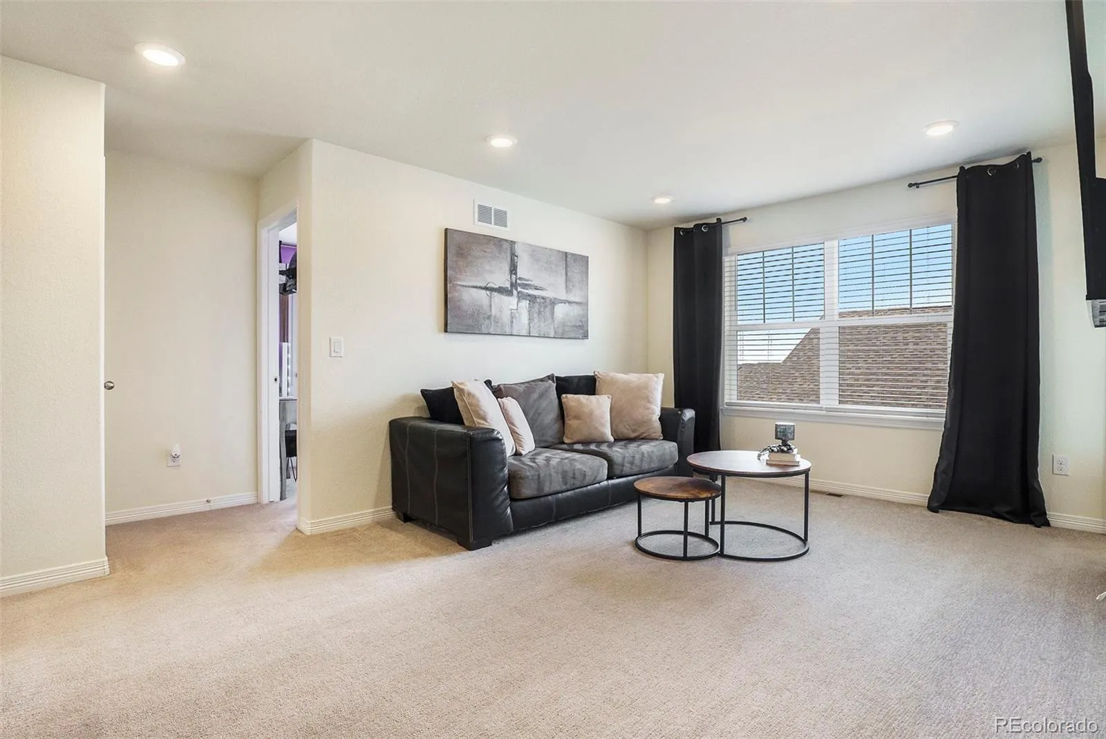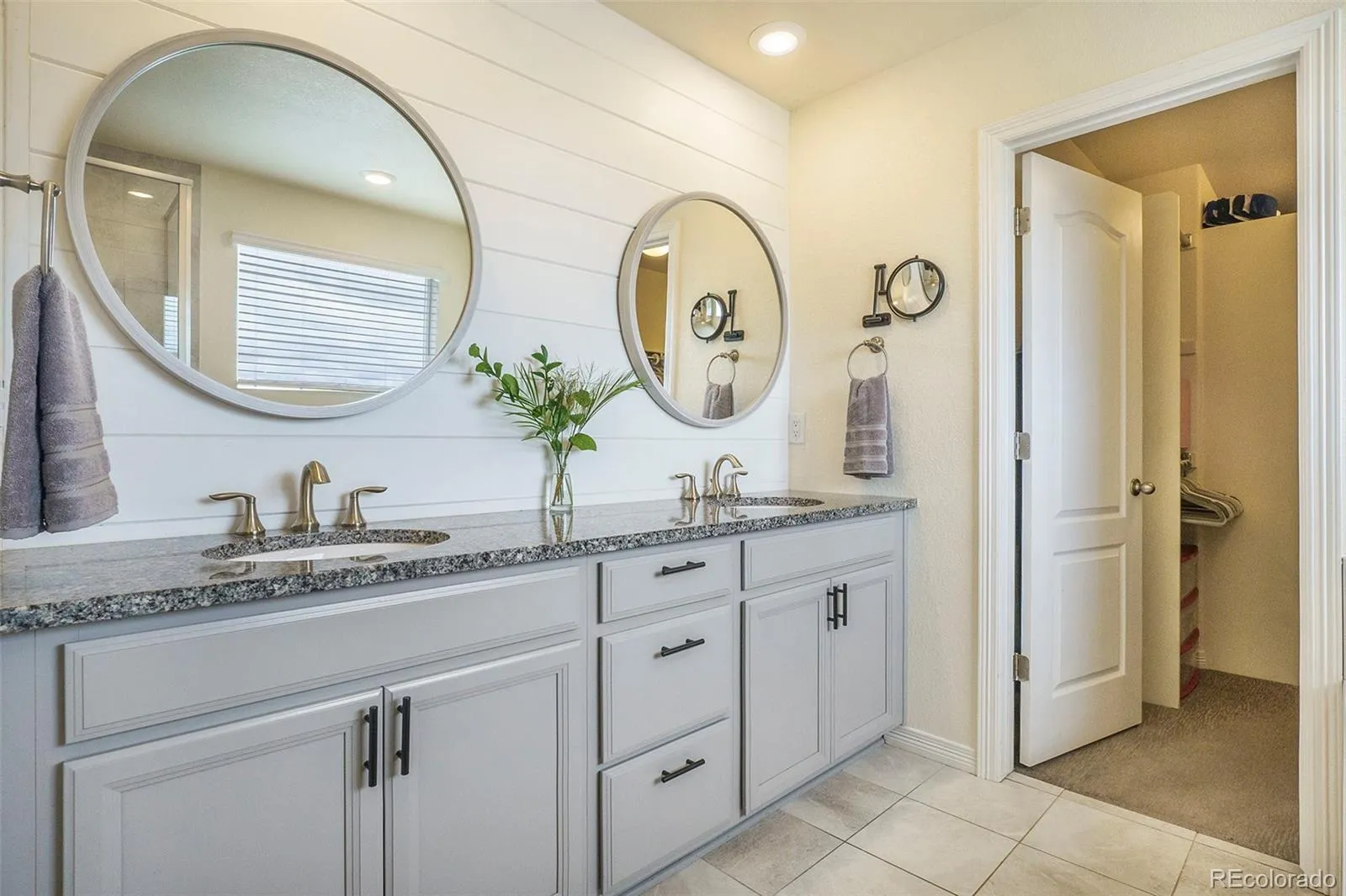 Just off the entry, a private office with French doors and large windows creates an ideal space for working from home or staying organized. The inviting living room showcases a striking black fireplace with a shiplap accent wall, complemented by expansive windows that bring in abundant natural light.