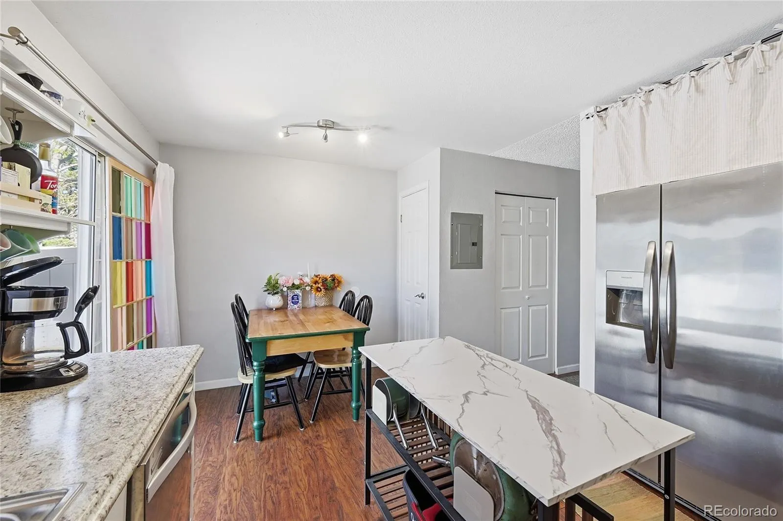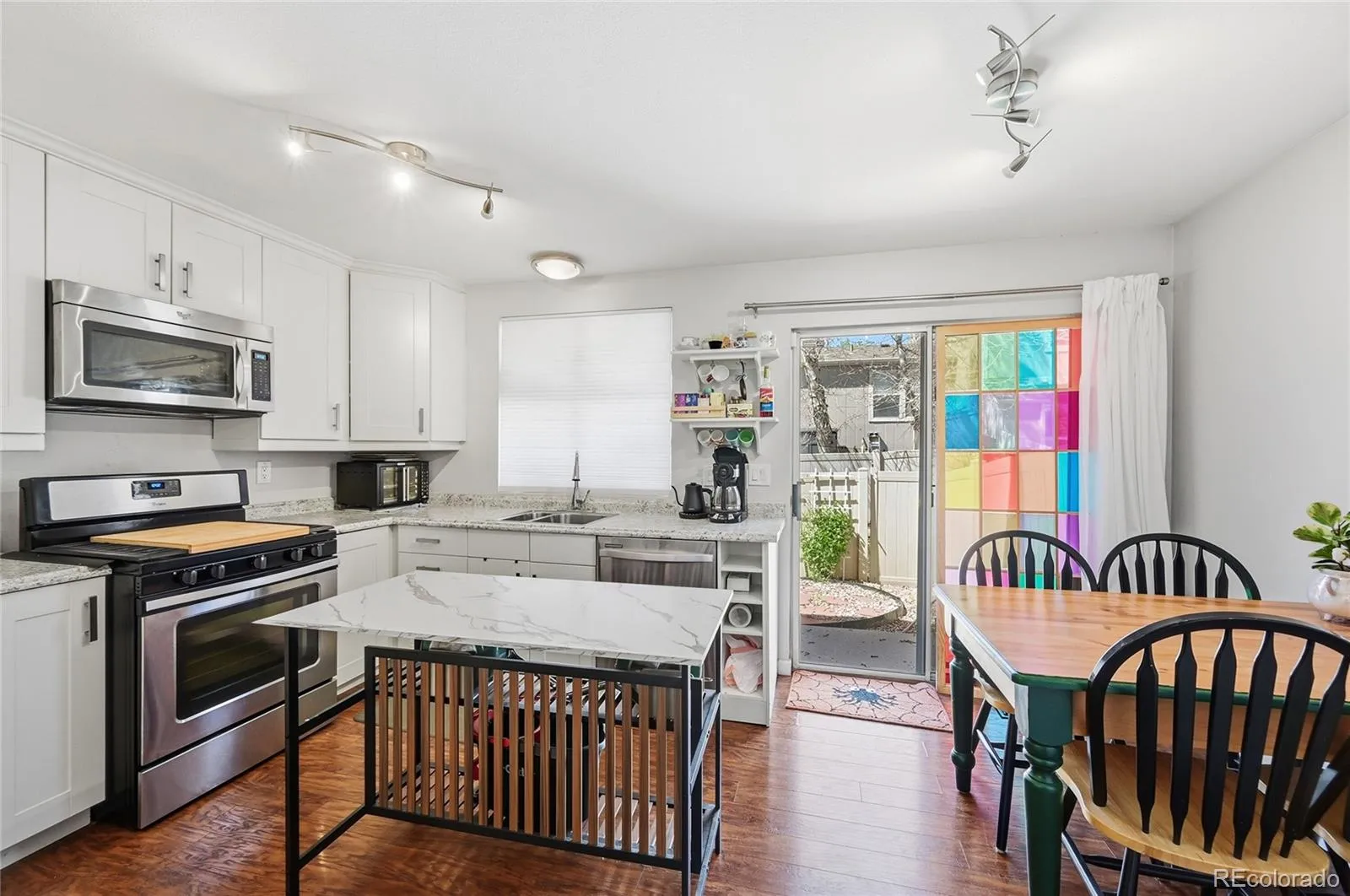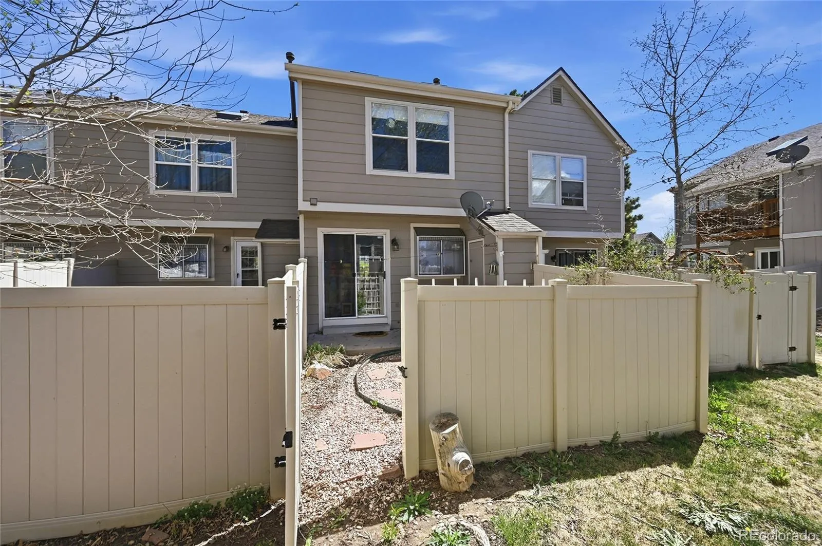 Welcome to this beautifully maintained 2-bedroom, 3-bathroom condo in the desirable Dakota Station community—where comfort, convenience, and low-maintenance living come together. Step inside to find rich engineered hardwood flooring that flows through the inviting great room, where a cozy gas fireplace creates the perfect focal point for relaxing evenings at home. The functional layout includes a convenient main-level half bath, laundry area, and a bright kitchen featuring stainless steel appliances, a gas range, pantry, and an eat-in dining space. A sliding glass door leads to your own private, xeriscaped backyard—fully fenced for added privacy and perfect for relaxing or entertaining without the upkeep. Upstairs, you’ll find two generously sized bedrooms, each with its own en-suite bath. The spacious primary suite is a true retreat, complete with two skylights that fill the room with natural light and a full bathroom. The secondary bedroom also offers ample space, two skylights, and a private ¾ bath, making it ideal for guests, roommates, or a home office setup. Additional highlights include abundant closet space throughout, a new water heater, and two reserved parking spaces conveniently located right out front, along with plenty of guest parking. This turnkey home has been thoughtfully cared for and is ready for its next owner. Ideally located just minutes from parks, trails, tennis courts, shopping, dining, Chatfield Reservoir, downtown Littleton, and C-470—offering easy access to everything you need while enjoying a peaceful community setting.