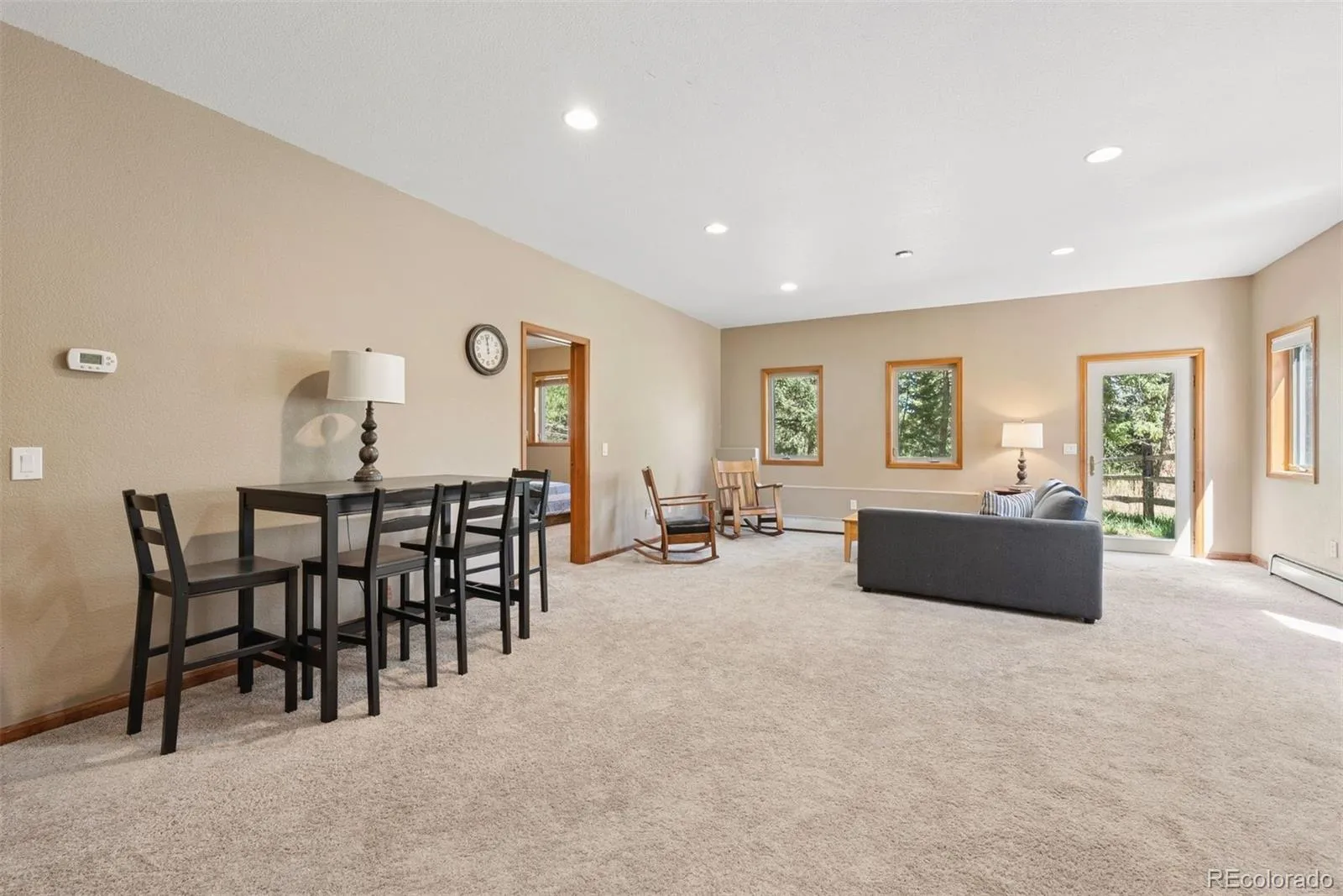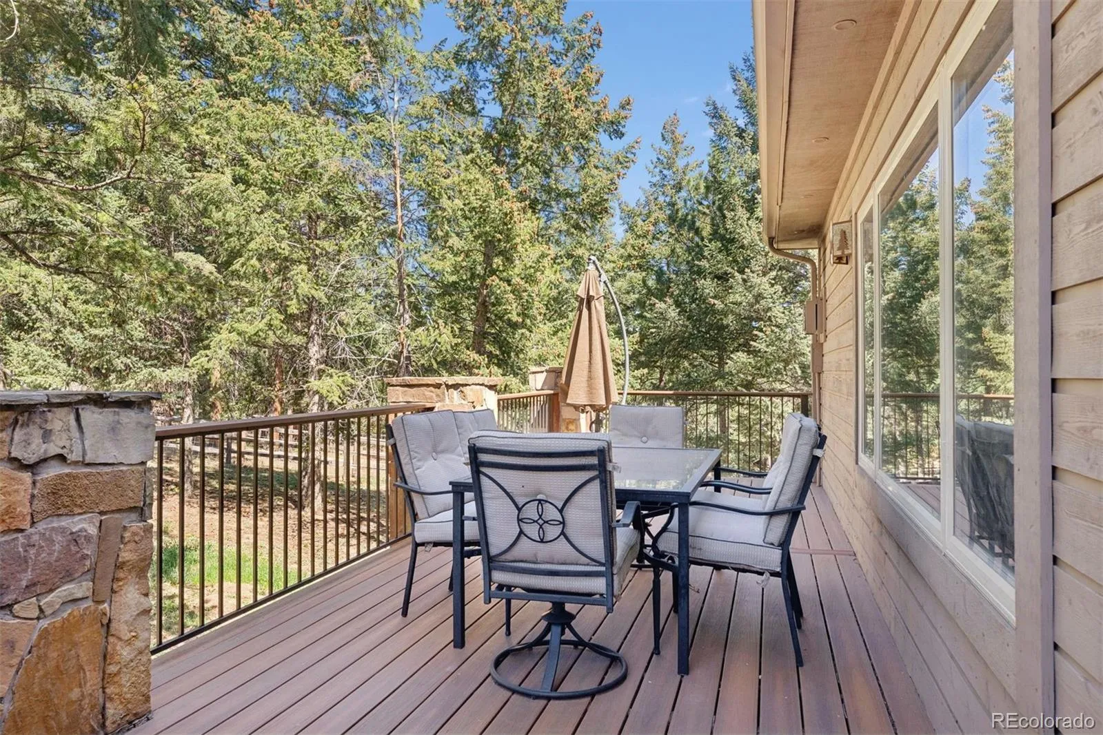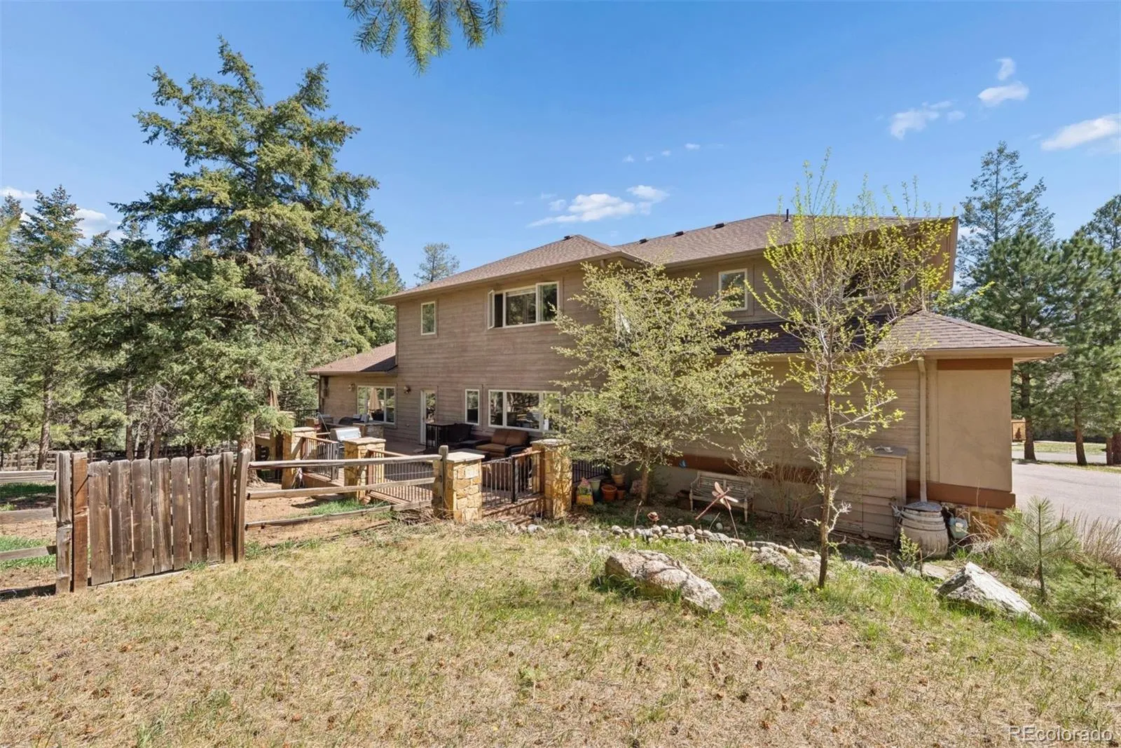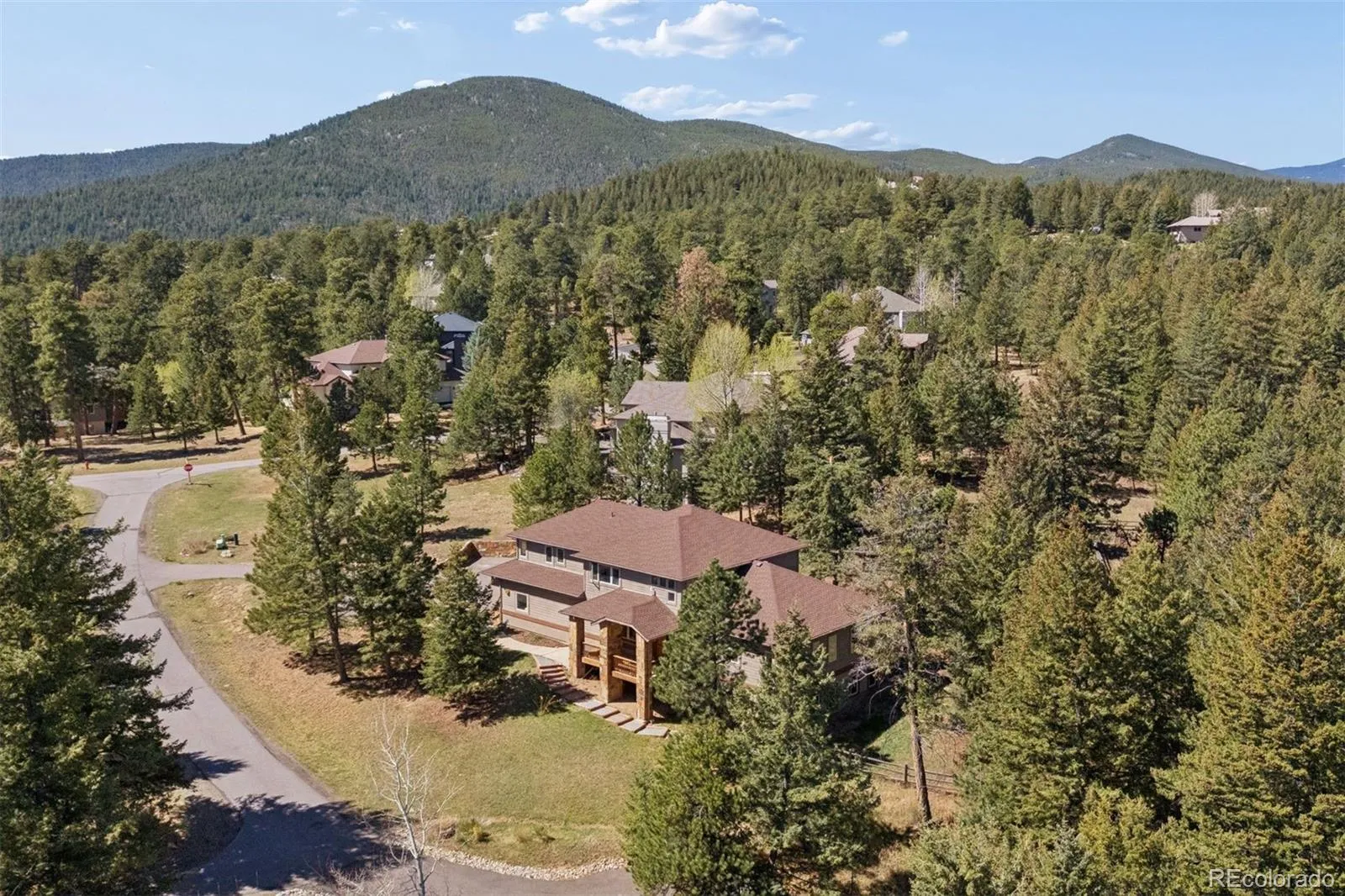 Nestled in one of North Evergreen’s favorable enclaves, The Promontory at Soda Creek offers an exceptional opportunity to experience elevated mountain living with everyday convenience. Set on a level, partially fenced lot, this property delivers a special combination of usability, privacy, and natural beauty. The thoughtfully designed open floor plan showcases exposed beams, graceful archways, and abundant natural light, creating a warm and tastefully curated ambiance. The main level features a spacious great room with a focal point fireplace, an inviting dining area, and a private office—ideal for both productive workdays and relaxed living. The kitchen is both functional and stylish, featuring a large center island, abundant counter space, eat-in dining area, and a comfortable lounge area —perfectly suited for entertaining or daily living. An expansive deck extends the living space outdoors, offering generous seating areas and access to a usable, level yard—ideal for recreation, gatherings, or simply enjoying the peaceful surroundings. Upstairs, three generous sized bedrooms include a well appointed primary suite with vaulted ceilings, gas fireplace, and dual walk-in closets. The ensuite bath provides a private retreat, while the secondary bedrooms share a convenient, dual-access full bath. The lower level with additional exterior, separate entrance enhances flexibility with a spacious family room, guest bedroom, and full bath. A secondary kitchen space and dedicated washer and dryer create an ideal setup for guests, multigenerational living, or private accommodations. The South facing, level driveway with bonus parking turn around spaces provided easy in/out access. With close proximity to Evergreen Recreation Center, hiking/biking trails, parks, schools, hundreds of acres open space—and convenient access to Denver—this home offers a great blend of comfort, versatility, and the very best of Evergreen living.