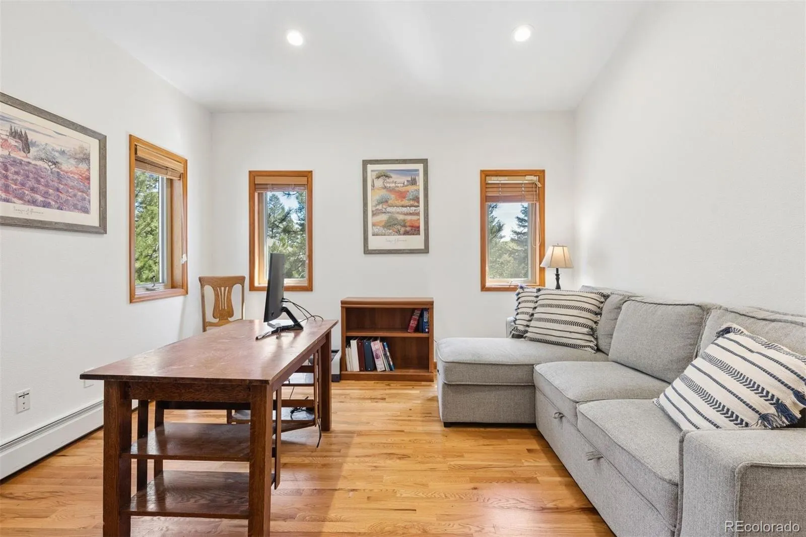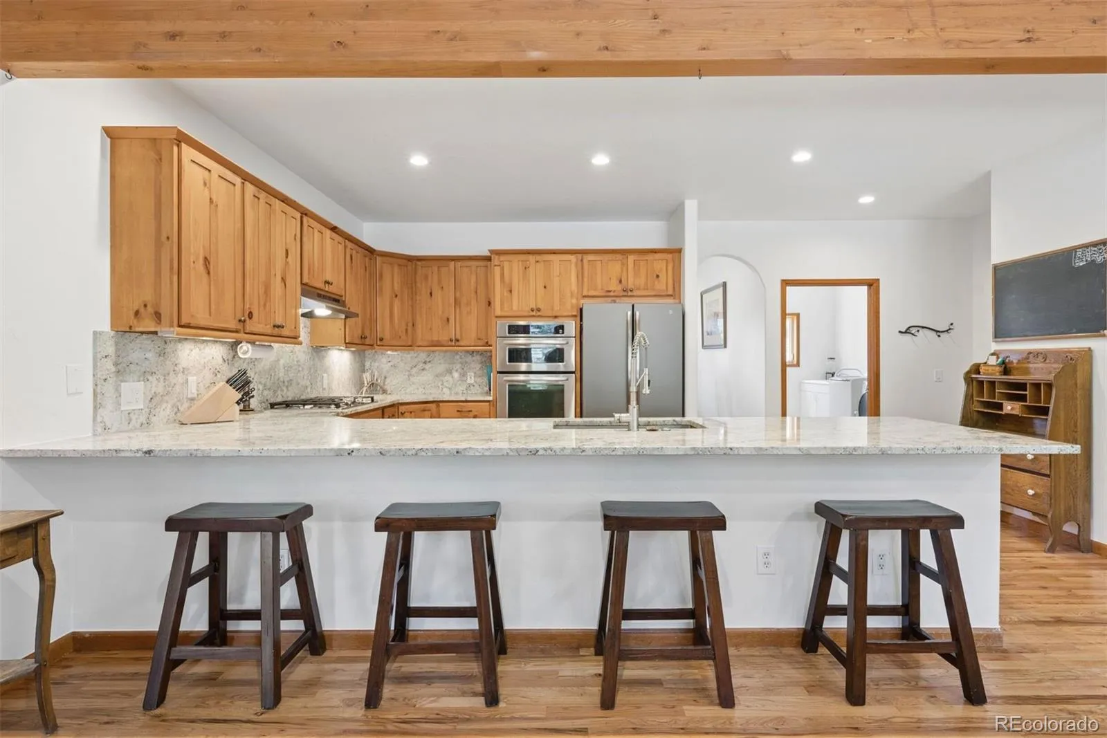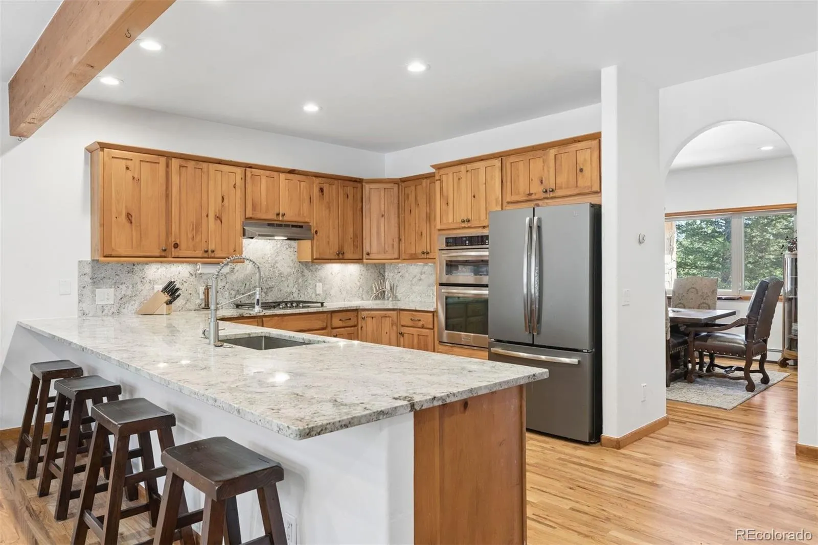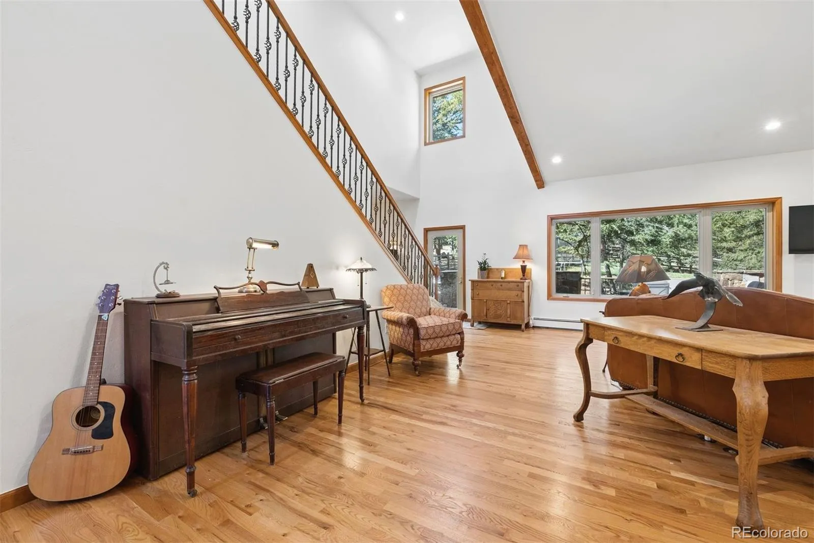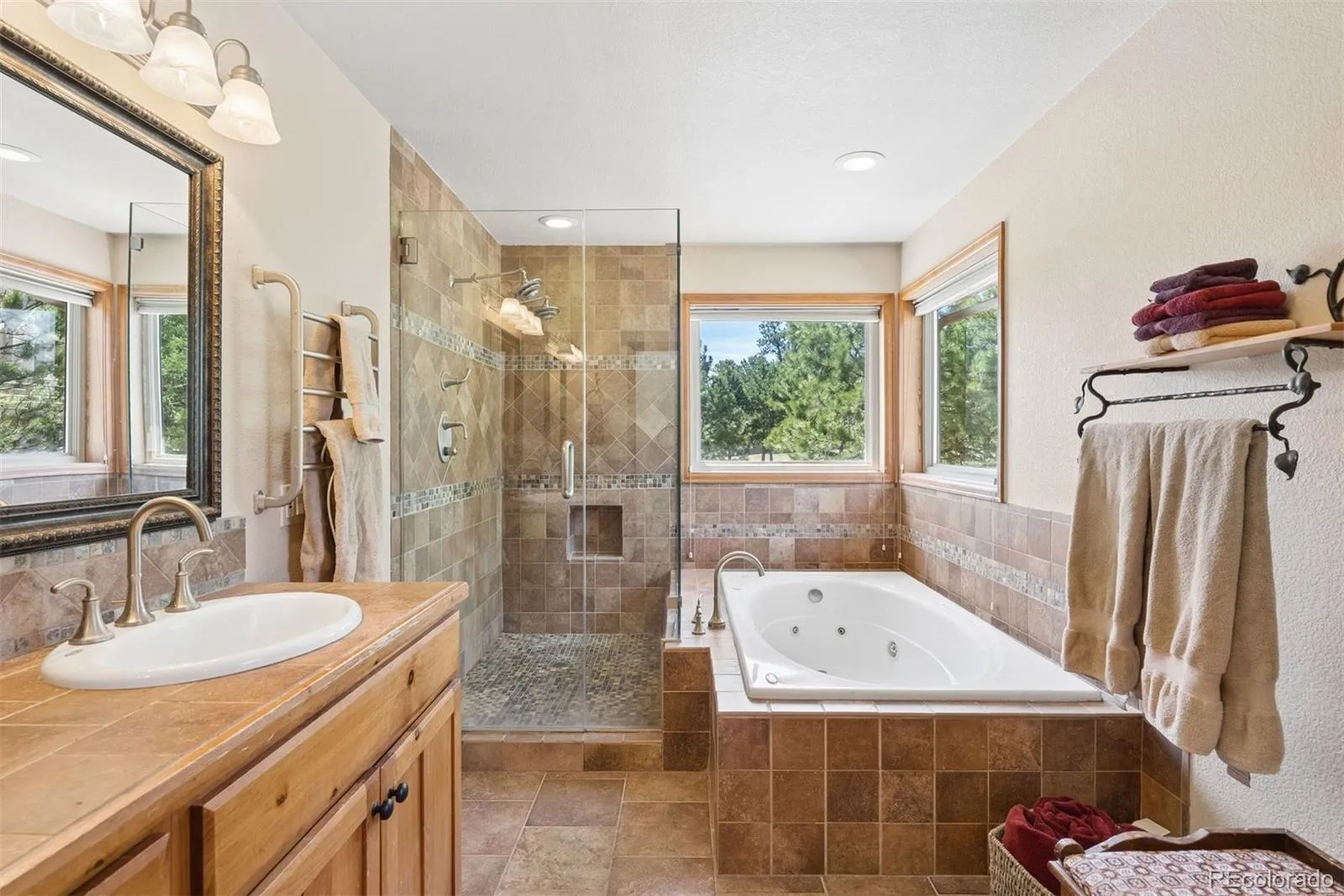 Nestled in one of North Evergreen’s favorable enclaves, The Promontory at Soda Creek offers an exceptional opportunity to experience elevated mountain living with everyday convenience. Set on a level, partially fenced lot, this property delivers a special combination of usability, privacy, and natural beauty. The thoughtfully designed open floor plan showcases exposed beams, graceful archways, and abundant natural light, creating a warm and tastefully curated ambiance. The main level features a spacious great room with a focal point fireplace, an inviting dining area, and a private office—ideal for both productive workdays and relaxed living. The kitchen is both functional and stylish, featuring a large center island, abundant counter space, eat-in dining area, and a comfortable lounge area —perfectly suited for entertaining or daily living. An expansive deck extends the living space outdoors, offering generous seating areas and access to a usable, level yard—ideal for recreation, gatherings, or simply enjoying the peaceful surroundings. Upstairs, three generous sized bedrooms include a well appointed primary suite with vaulted ceilings, gas fireplace, and dual walk-in closets. The ensuite bath provides a private retreat, while the secondary bedrooms share a convenient, dual-access full bath. The lower level with additional exterior, separate entrance enhances flexibility with a spacious family room, guest bedroom, and full bath. A secondary kitchen space and dedicated washer and dryer create an ideal setup for guests, multigenerational living, or private accommodations. The South facing, level driveway with bonus parking turn around spaces provided easy in/out access. With close proximity to Evergreen Recreation Center, hiking/biking trails, parks, schools, hundreds of acres open space—and convenient access to Denver—this home offers a great blend of comfort, versatility, and the very best of Evergreen living.