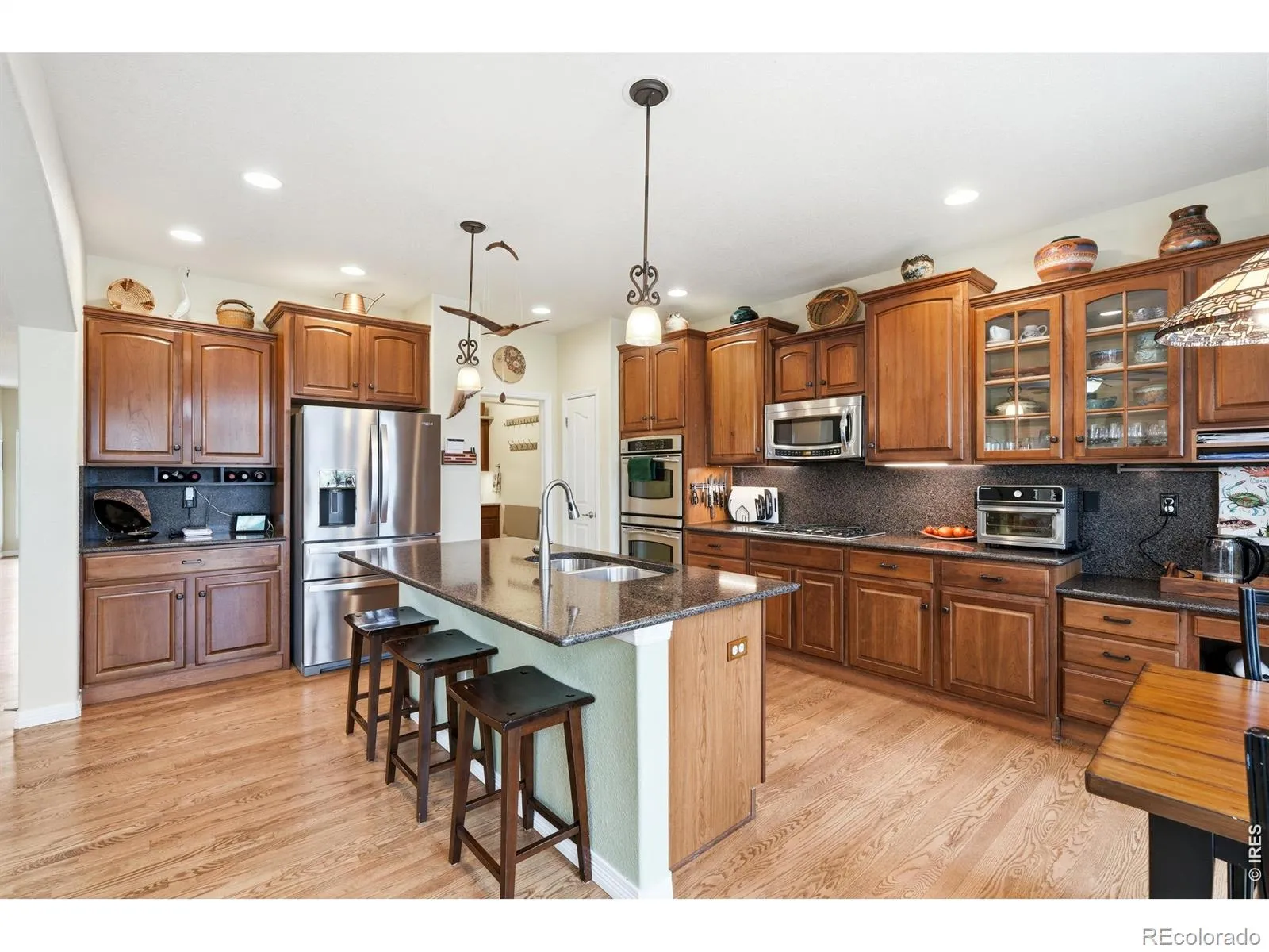 Step inside & feel instantly at home. Rich wood floors sets a warm, welcoming tone & carry you through a bright, open layout. Just off the entry, a dedicated study offers a quiet place to focus. At the heart of the home, the spacious great room is filled with natural light, highlighted by 9 foot ceilings and a cozy gas fireplace. It flows into the chef-inspired kitchen-as functional as it is beautiful. Featuring slab granite countertops & backsplash, stainless steel appliances, double ovens, a pantry & generous cabinetry, this kitchen is ready. The open connection to the living & dining areas make it easy to stay engaged w/family & guests.A spacious laundry room off of the kitchen w/built-in shelving & a utility sink adds an everyday convenience.The primary suite offers a peaceful retreat at the end of the day. Its spa-like en-suite bath includes dual vanities, a soaking tub, a separate shower, & a spacious walk-in closet. 3 additional bedrooms provide flexibility for guests or creative spaces, complemented by well-placed bathrooms. Downstairs, the full unfinished basement opens the door to endless possibilities-a home gym, recreation room or additional living space. Outside, the setting is just as compelling. Set on over an acre in the sought-after Eagle Shadow community, this property offers sweeping panoramic views that bring a sense of calm and openness. The out backyard is a blank canvas, supported by Todd Creek irrigation. The seamless indoor-outdoor flow makes it easy to enjoy Colorado’s beautiful seasons.There’s no shortage of space for your lifestyle w/a tandem four-car garage & a detached garage. This location that feels like a private retreat, yet keeps you close-just 10 minutes to Brighton & 30 minutes to Denver/DIA. With its generous space, thoughtful upgrades, and breathtaking surroundings, this move-in-ready home offers a rare opportunity to enjoy comfort, convenience, and a true Colorado lifestyle. Welcome home.