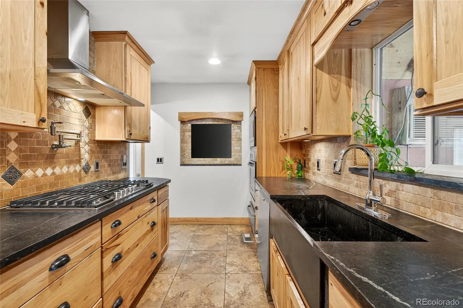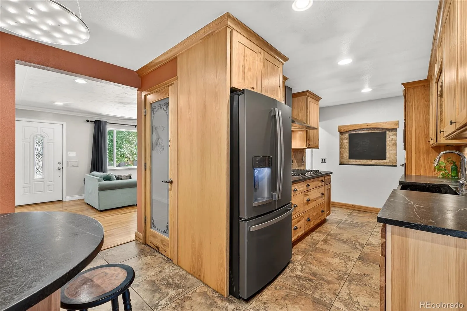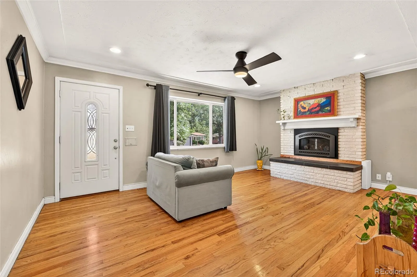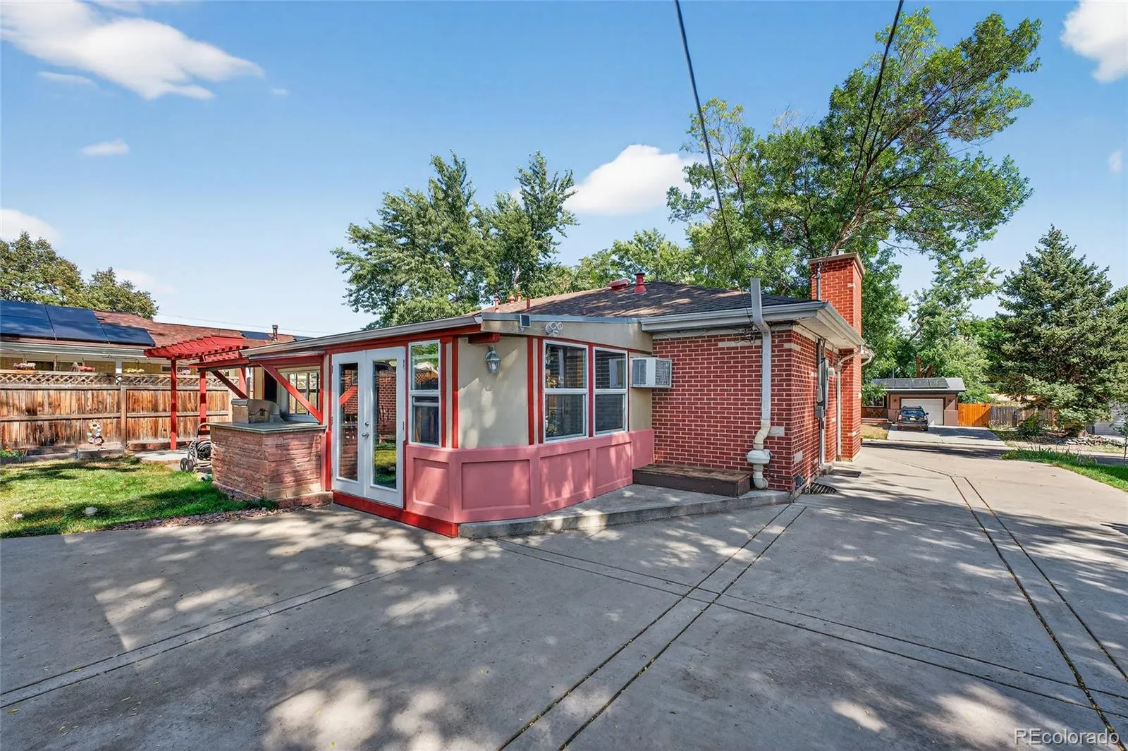 Welcome to this move-in-ready brick ranch gem in a prime Arvada location, just minutes from Olde Town. Brand new furnace just replaced and new kitchen stove top and fresh paint in the primary bedroom! Set on a pretty tree-lined street, this home welcomes with great curb appeal and thoughtful updates throughout. Inside, bright and sunny spaces are highlighted by beautiful wood floors, crown molding, and two cozy fireplaces. A sunroom with dual door access to the backyard offers a built-in bench seat, fireplace, and room A/C. A window above the fireplace that lifts up & hooks to the beams leading to a built-in gas grill, creating the perfect indoor-outdoor connection. The chef-worthy kitchen is a true standout with under-cabinet lighting, a convection oven with warming tray, a pot filler faucet over the 5-burner gas stove, soapstone countertops, a farmhouse sink, and a large pantry. Built-in seating connects directly to the sunroom for easy entertaining. The spacious primary suite features a five-piece ensuite and a dreamy walk-in closet, while an additional bedroom on the main level plus two more in the basement provide room for everyone. The basement also includes a large family room with the home’s second fireplace and a newly finished storage room. Set on a large lot, the property offers an oversized two-car garage, dedicated RV parking with a 30 AMP plug, and an expansive workshop with heat and electricity. A storage shed, garden boxes, expansive patio with pergola, and mature landscaping round out the outdoor living. With easy access to shopping, dining, and major roads, this home provides both comfort and convenience, making it an Arvada gem.