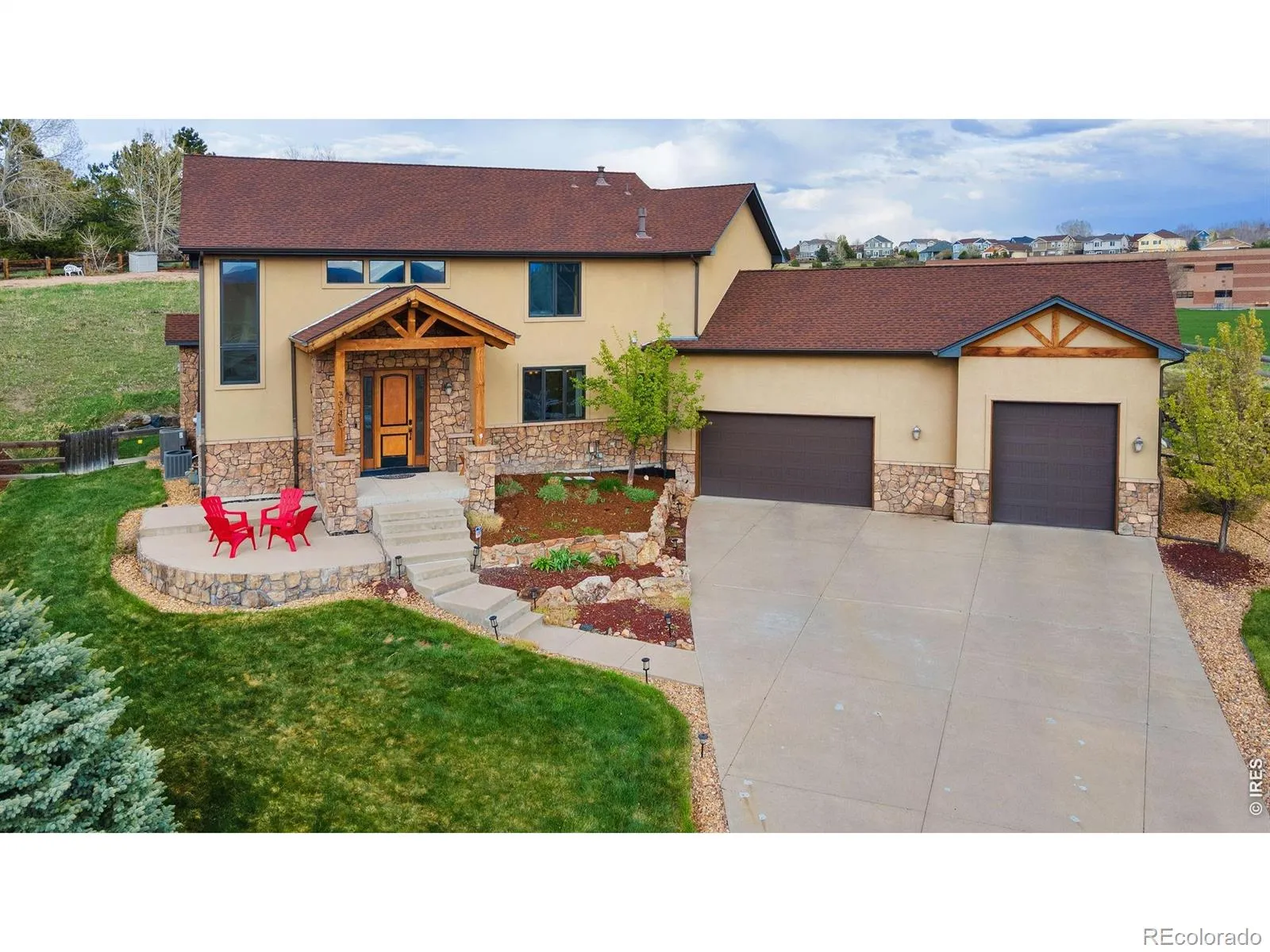 Tucked at the quiet end of a cul-de-sac and surrounded by serene rolling hills and open space, this custom 5-bedroom, 5-bath residence offers 5,524 square feet of refined living designed to balance privacy, comfort, and connection to the outdoors. A dramatic two-story foyer with sweeping staircase and natural hardwood floors welcomes you into an open-concept main level filled with light and meadow views. The kitchen is both beautiful and functional with granite countertops, an eat-at island, premium stainless steel appliances, a pot filler, and a sunlit breakfast nook with French doors opening to a covered patio and secluded backyard. Formal dining and a living room with fireplace create inviting gathering spaces. The main-floor private office is thoughtfully positioned for focus and inspiration, overlooking open space and tranquil meadows-ideal for work-from-home living. Upstairs, the expansive primary suite offers a private fireplace, dual walk-in closets, and a spa-inspired five-piece bath with walk-in rain shower and soaking tub. Secondary upstairs bedrooms each feature walk-in closets, en-suite baths, and abundant natural light, complemented by a flexible loft landing space. The finished lower level is designed for relaxation with 9-foot ceilings, a wet bar with island seating, gym area with fireplace hookup, media room with built-in projector and surround sound, fifth bedroom, bonus room, and generous storage. An oversized finished 3-car garage with RV bay, EV-ready wiring, and lift-height ceilings is paired with a custom mudroom designed for elegant after-adventure storage. Smart-home systems, dual furnaces, dual water heaters, high-speed internet, nearby trails, and open space complete this exceptional Colorado lifestyle.