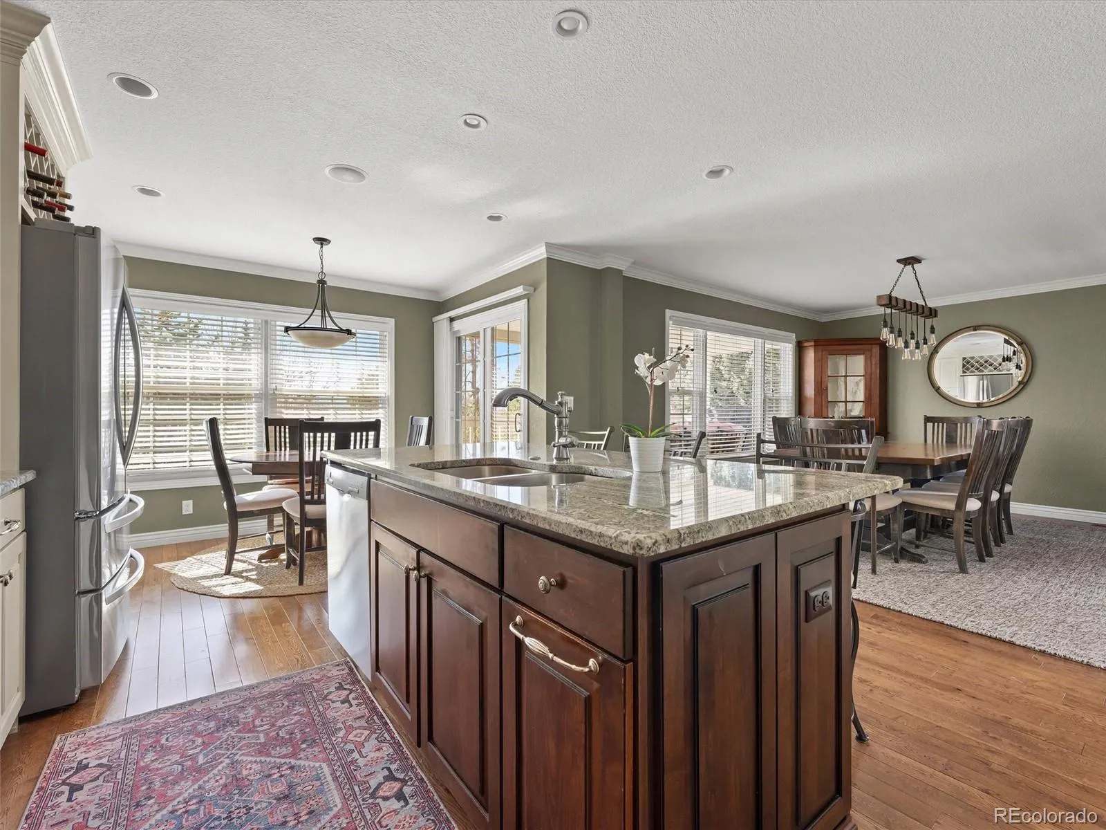 Spectacular customized updates with a custom re designed first floor ranch patio home with a terrific location in the end of a cul de sac and backs to walking paths and play area. Hardwood flooring through out the main living level. Main floor study with French Doors was enclosed so the office could be private and has recessed lighting and ceiling fan. Wall removed between the hallway and living room as well as the kitchen and dining area to open up that first floor. This now gives the first floor a very open design. Living room has high vaulted ceiling, recessed lighting and a gas log fireplace with a custom surround. Beautiful remodeled kitchen that was re designed with custom cabinets, custom backsplash, granite counter tops, gas range, stainless appliances, recessed lighting, kitchen island and a door out to the upstairs deck, and a beautiful nook now looks west. Large dining room with crown molding, that has a large opening from the living room. First floor has a laundry facility and powder room. The oversized primary bedroom has a large walk in closet and a custom 5 piece bath. Staircase has been updated with wrought iron railings that goes down to the walkout basement. Basement has a large media room and/or game area with an additional fireplace and a door out to the bottom patio, recessed lighting, beverage Refrigerator, two large bedrooms and a full bath, two storage rooms ( large one could be converted to a bedroom or as additional office), along with a large furnace room which allows for great storage areas. This outstanding customized main floor living patio home should be seen to be appreciated. You would be excited to own. Make it yours.