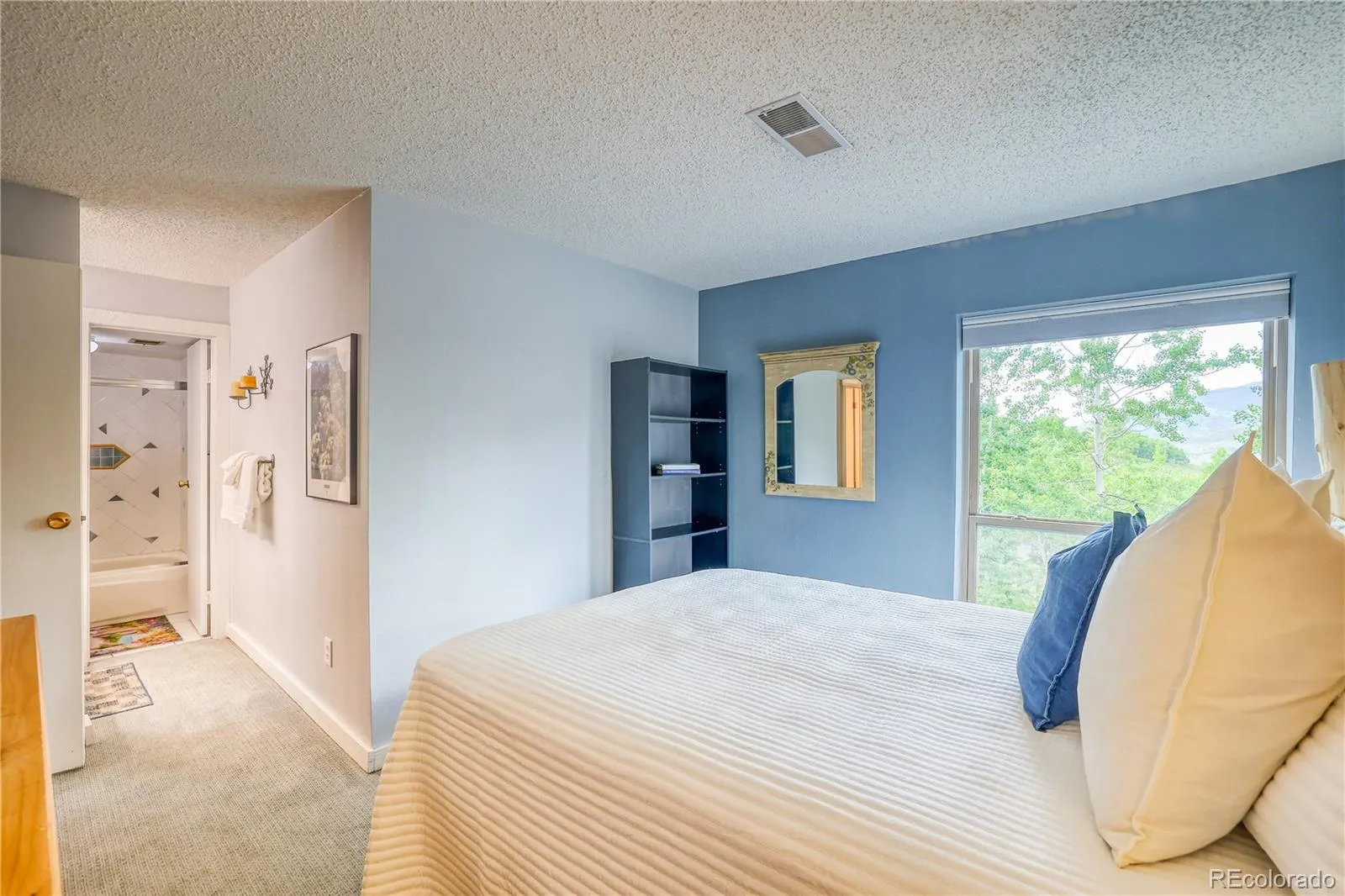 The spacious primary suite offers great views and a private full bath, while the second bedroom is bright and conveniently located near a ¾ bath—ideal for guests or roommates. A mudroom-style entry with built-in bench provides the perfect drop zone for ski gear, hiking boots, and everyday essentials.