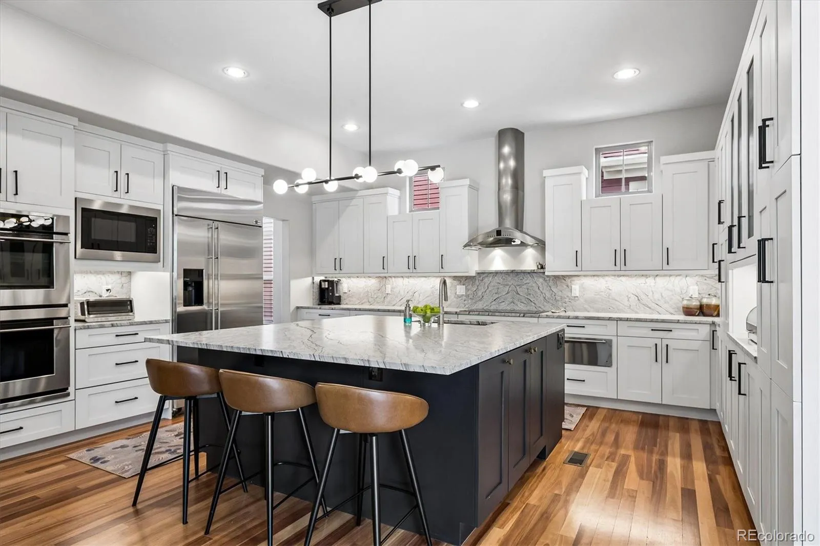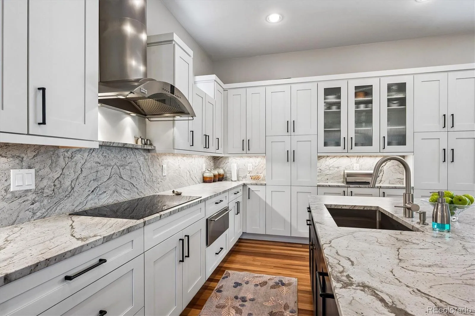 Move right in to this high end, premium built Harvard Communities three story home and show off your new mountain views! A just remodeled chef’s kitchen features a large island, warming drawer, granite countertops, artistic backsplashes, an induction cooktop, an expanded kitchen nook, and a new dishwasher and microwave. The main floor also boasts high ceilings, Brazilian Eucalyptus floors, formal dining, a library or office, a comfortable living room with fireplace and plenty of room for a big tv, a wet bar and an always handy mudroom. The primary second floor bedroom is expansive – cozy up with a fireplace, five piece bath and walk-in closets. There’s two more bedrooms on the same floor, one with an en suite bath, and a study nook for you or the kids. The third floor loft or bedroom opens to a balcony with one of the best views in town. Stretch out in the finished basement with a large rec room and fireplace, bed & bath and extra storage. Want more? Two car oversize garage, a front porch looking over the greenway by Winter Park, an urban sanctuary backyard with a built in Viking outdoor grill, a patio next to a peaceful fountain, and a yard with room for gardening or pets. Other recent updates include a new roof, interior paint, and garage door with wifi opener. Located in Eastbridge, one of the most exclusive areas of Central Park, with no through streets, and just minutes to the rec center, Stanley Marketplace, and all the surrounding trails. Come see it today!