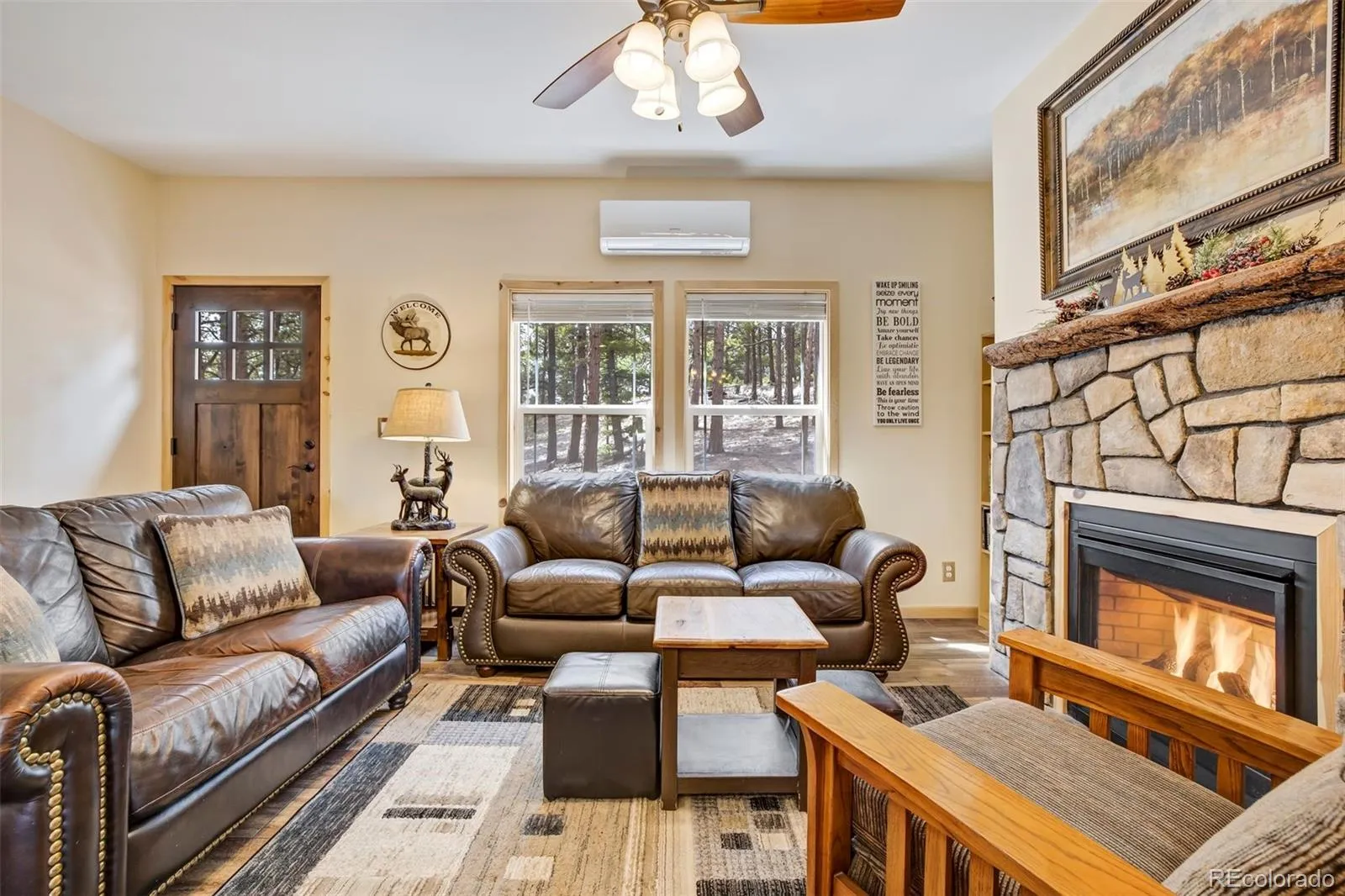 Built in 2022, this is an energy-efficient, 3-bedroom, 2 bath modular set on a permanent foundation with expansive 5′ tall crawl space, delivering effortless one-level living in a blend of comfort, accessibility, and privacy. Nestled off the street on a quiet cul-de-sac and surrounded by whispering pines, the property invites you to slow down and enjoy the natural beauty all around — where deer, birds, and other wildlife are part of your everyday backdrop. Inside, a bright, open layout creates a welcoming space for both relaxing and entertaining. Two large living areas feature large windows to bring the outdoors in, filling the home with natural light and framing those iconic mountain views. You’ll delight in entertaining guests or hosting family events in the spacious kitchen with 9′ island. Or choose to relax in the romy primary suite with elegant en suite bath complete with a stone surround shower. And with mini-split air conditioning already installed — a rare and valuable upgrade for this area — you’ll enjoy year-round comfort more affordably. Step outside to the back deck and slip into the private hot tub, where quiet evenings, crisp mountain air, and star-filled skies create a truly restorative experience. Tucked away in a serene setting, yet just a short drive to Florissant with easy access to Woodland Park and Colorado Springs, this home offers the best of both worlds — seclusion without isolation. Currently operating as a successful short-term rental and second home, the property also presents strong income potential. It can be sold fully furnished, making it a seamless, turnkey opportunity.