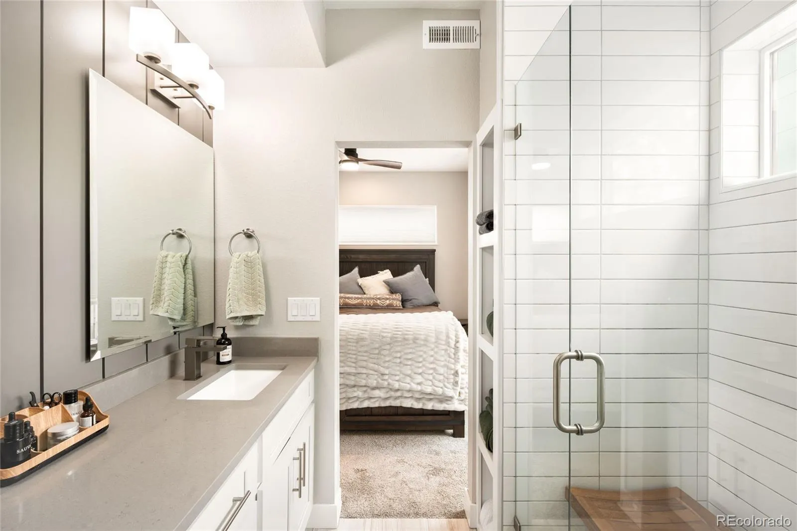 Poised in the heart of Sloan’s Lake, this sun-filled townhome offers elevated urban living with a stunning rooftop. Unlike other townhomes, this is designed with an open-concept main level floor welcoming you the moment you walk in your front door. The design flows seamlessly to connect a spacious living area to a stylish kitchen featuring a center island, stainless steel appliances, all-white cabinetry, subway tile backsplash and a convenient pantry. Sliding door access leads to a private patio, creating easy indoor-outdoor flow. Upstairs, the bedrooms provide flexibility, including a serene primary suite with a walk-in closet, and a barn door entry to a modern bath with a walk-in shower. A secondary bedroom offers an en-suite bathroom for comfort and ease! A versatile loft and third bedroom/office with its own full bathroom offers additional functionality and direct access to the incredible rooftop deck — perfect for entertaining or relaxing under Colorado skies. Not to be ignored is the oversized attached garage, ample crawl space storage and no HOA. The location is unbeatable with walkability to Sloan’s Lake, several restaurants, coffee shops, recreation and entertainment. It’s also bike-able to the Highlands, 26th Ave + 29th Ave shops, Jefferson Park and the light rail. It’s a 10 minute drive to downtown and has easy access to 6th or i70 for access to the mountains. This home delivers both convenience, ease and sophistication in one of Denver’s most central neighborhoods.