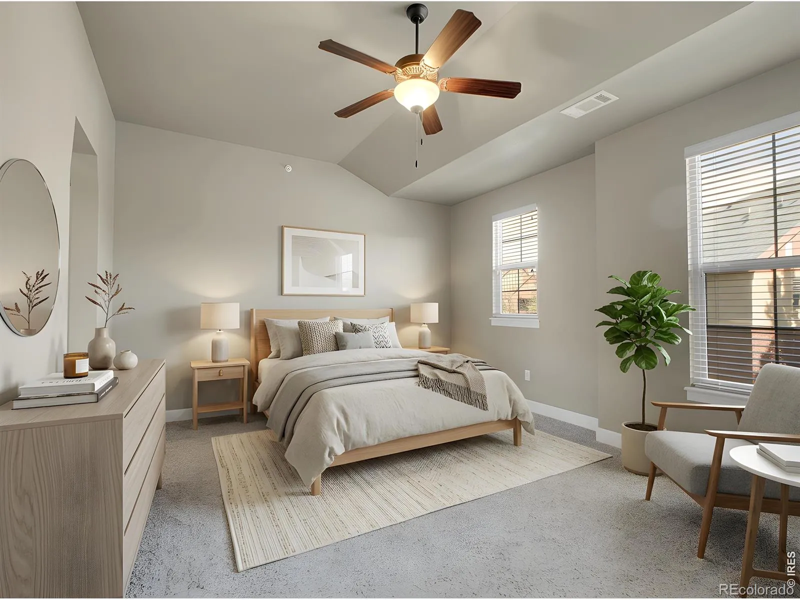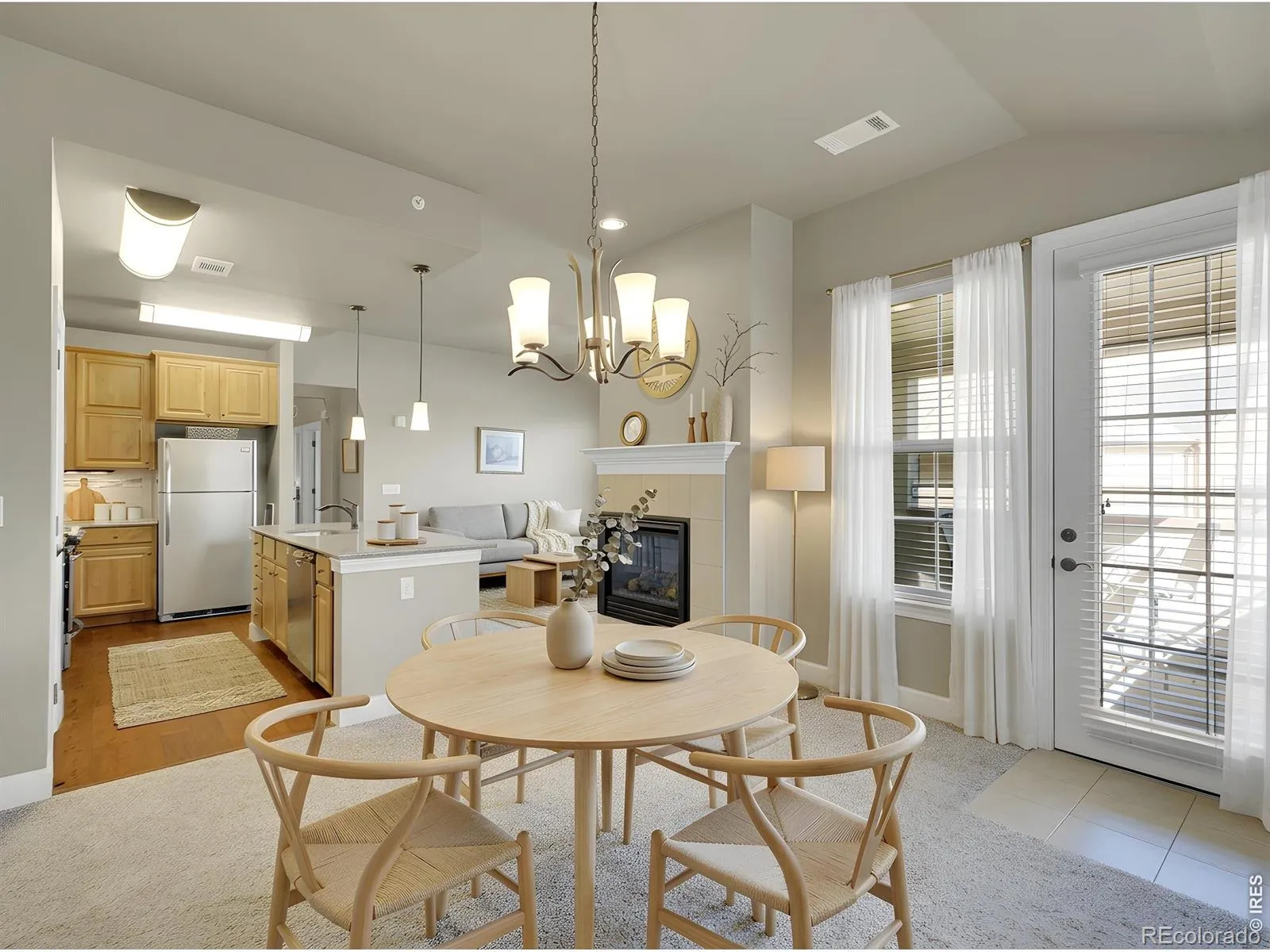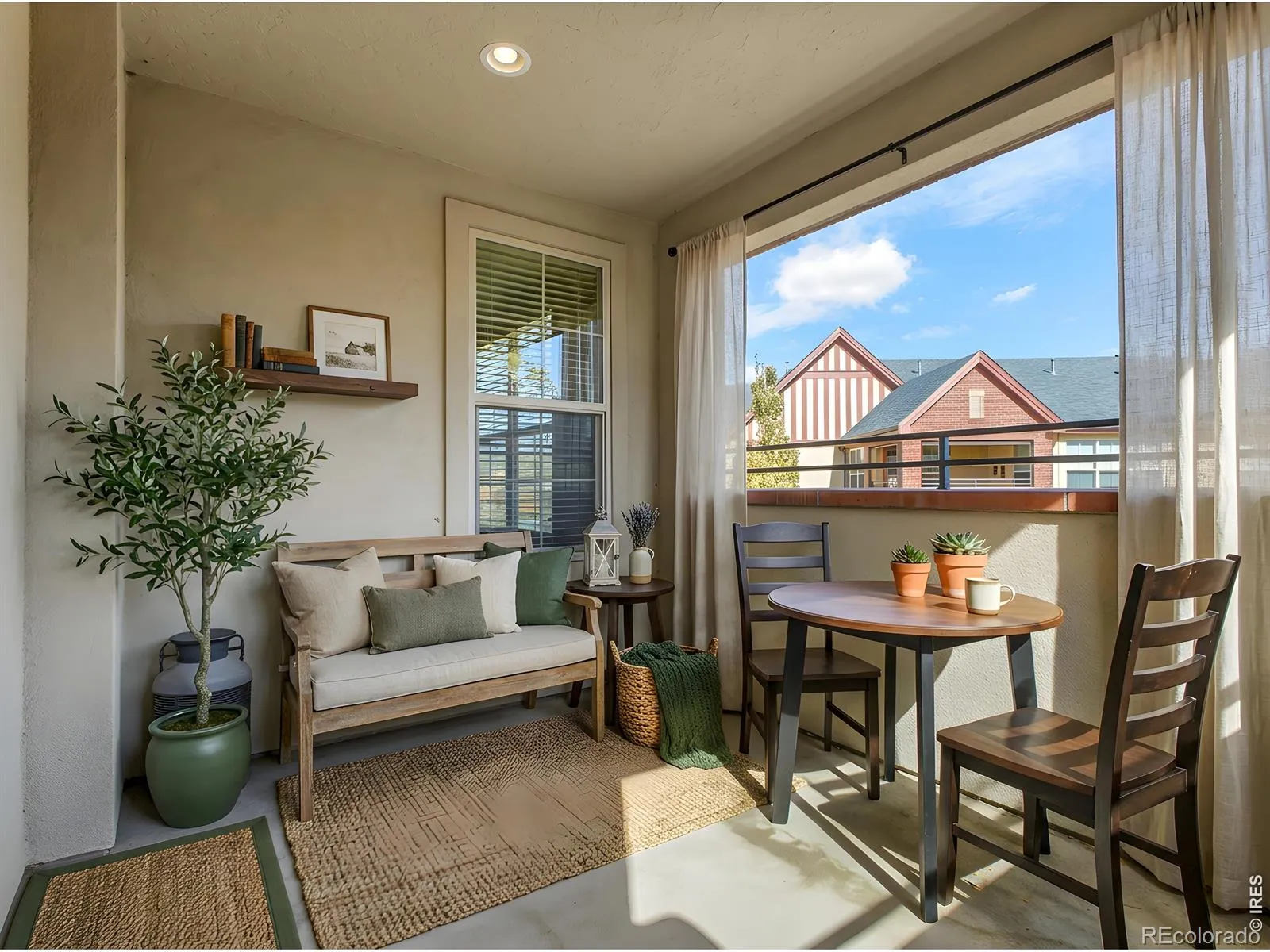 Longmont Corner Residence. Welcome to effortless living in this quiet, secure 60+ community-where comfort, convenience, and connection come together. Ascend the elevator to your corner 2nd-floor retreat, featuring rare covered terrace ideal for relaxing afternoons or morning coffee. Inside, high ceilings and plentiful windows fill the home with natural light. A two-sided gas fireplace gracefully separates the living and dining spaces, creating cozy ambiance throughout. The kitchen offers excellent functionality with an island, bar seating, an electric range, a pantry, and abundant cabinetry. The spacious secondary bedroom enjoys bright, natural light, while the primary suite includes a calming ceiling fan, dual closets (including a walk-in), and a full ensuite bath. With low-maintenance living, a 1-car garage, and unbeatable access to nearby pickleball courts and a beautiful neighborhood park, this is the ultimate lock-and-leave lifestyle-without compromising comfort or community.
