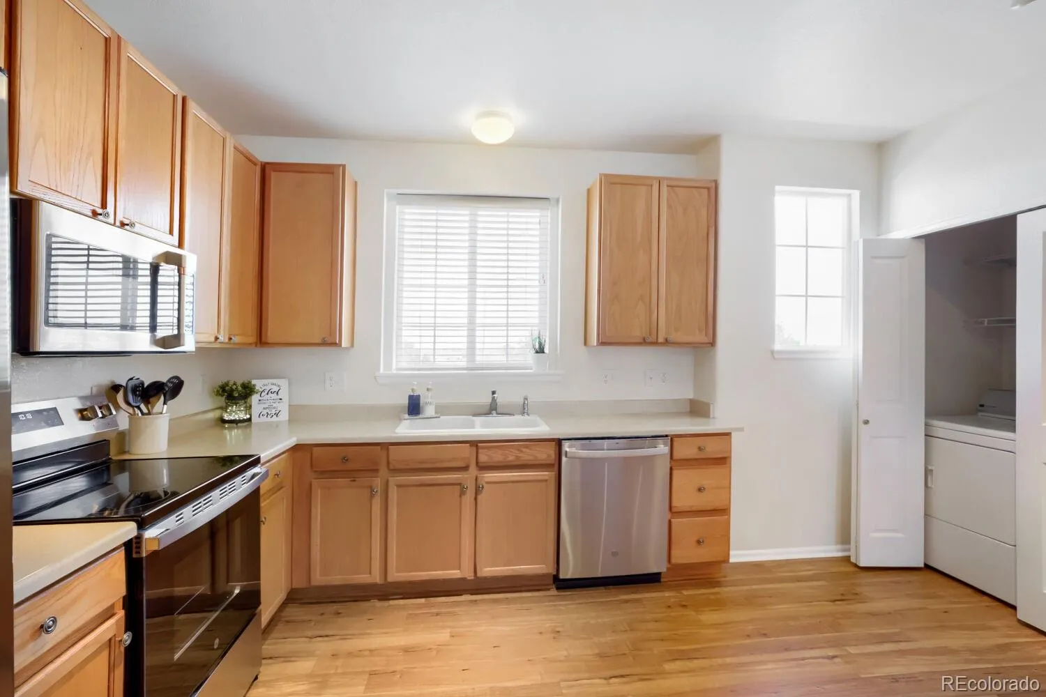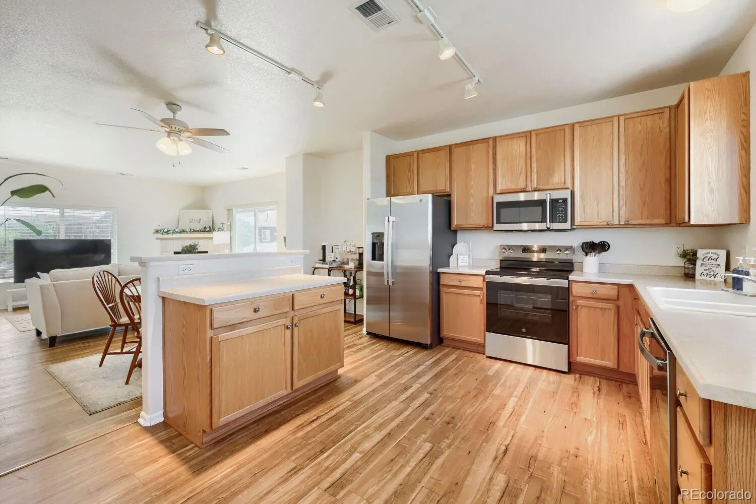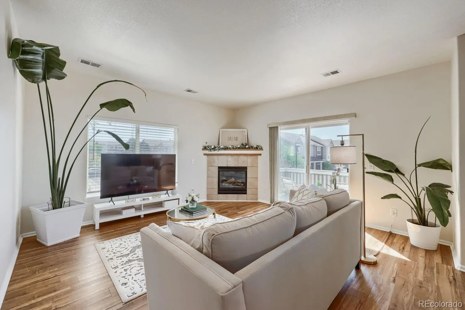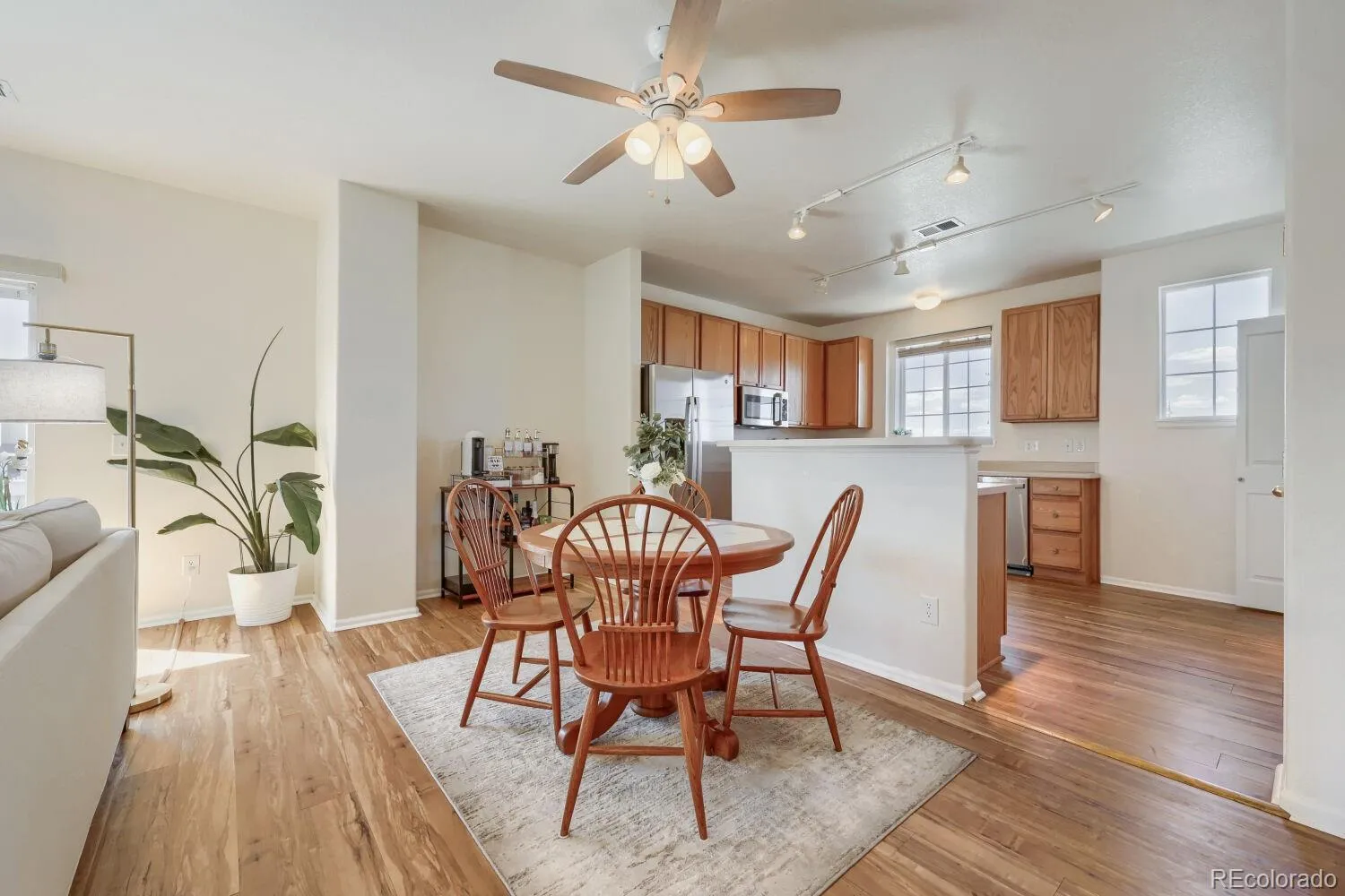 This end-unit condo for sale in Commerce City, CO lives like a townhome and offers something most condos don’t—a true sense of space, privacy, and separation that actually feels like home. You enter through your own ground-level entrance—no shared hallways or elevators—just a quiet moment as you step inside and leave the outside world behind. A few steps up, and everything opens.