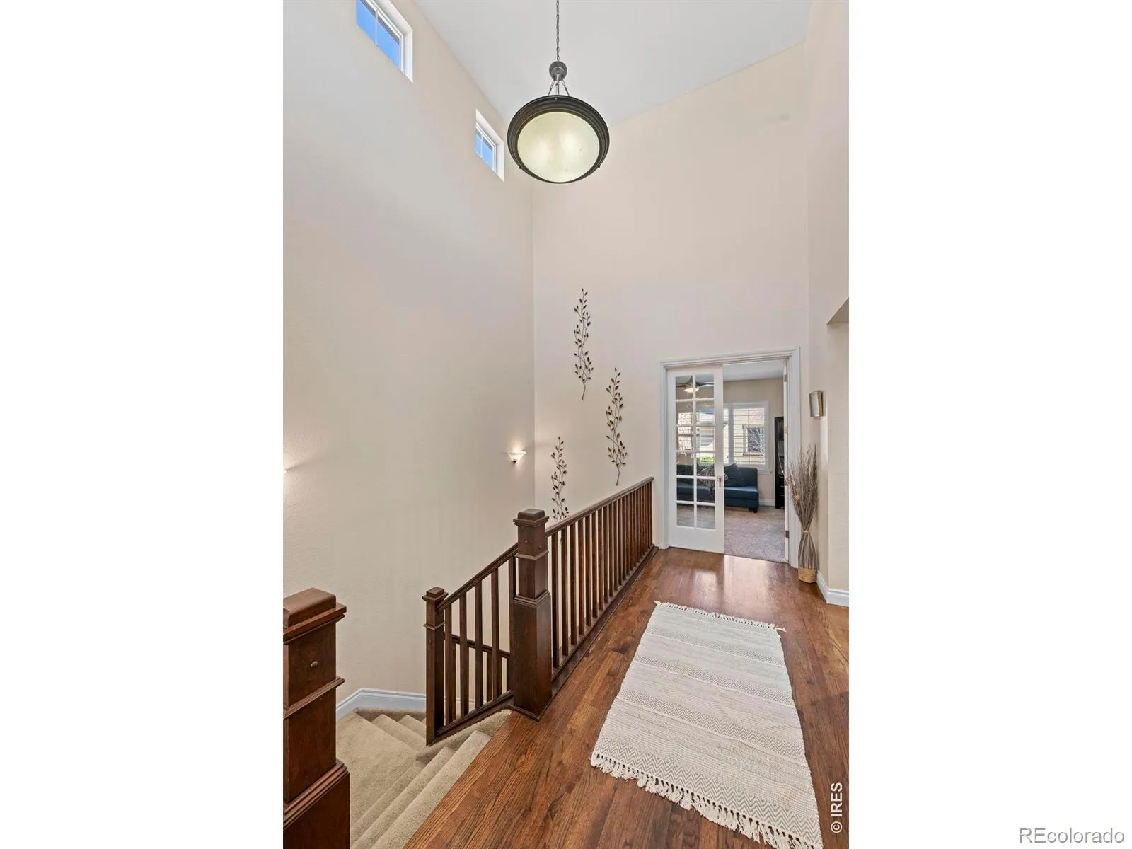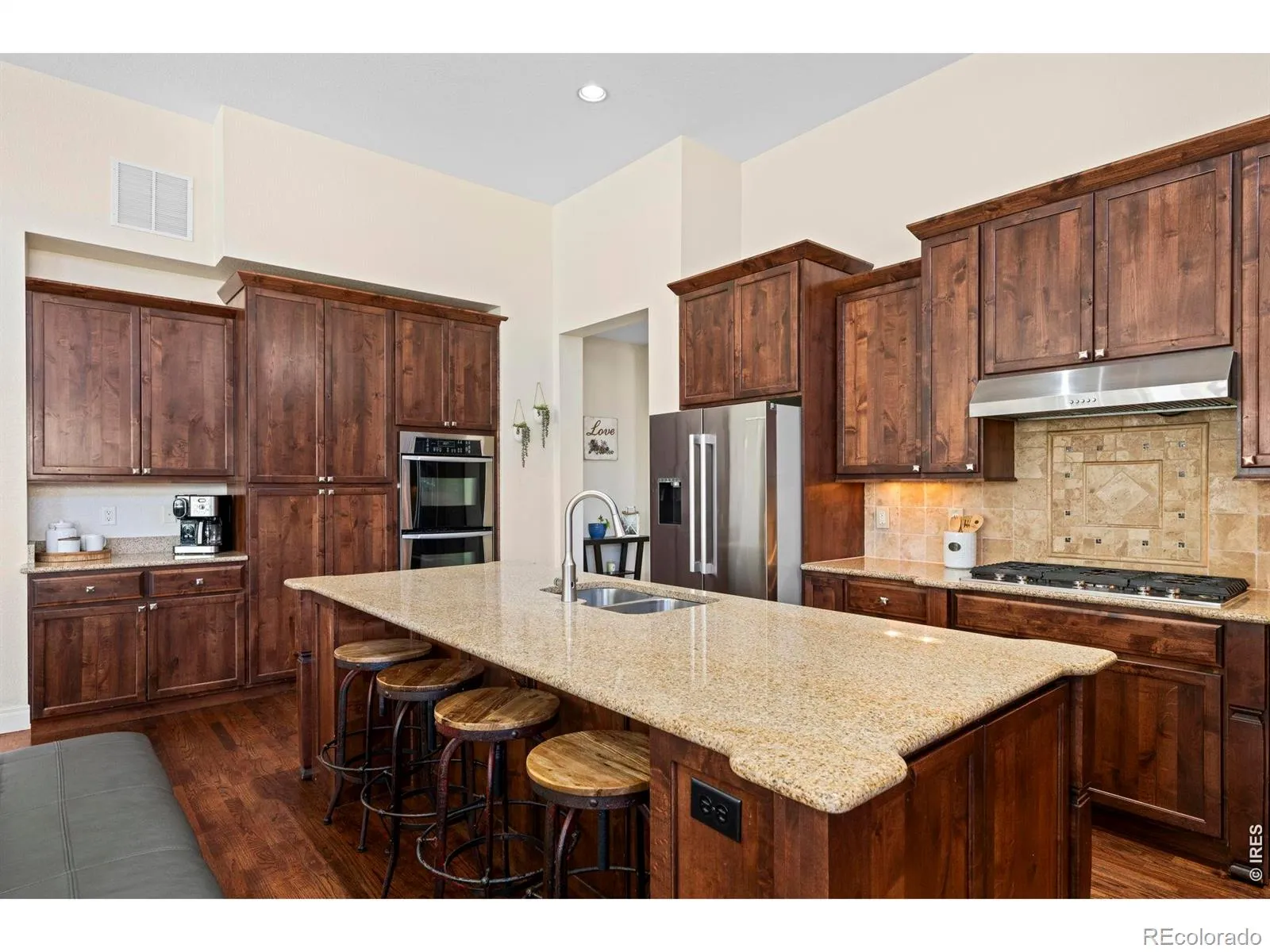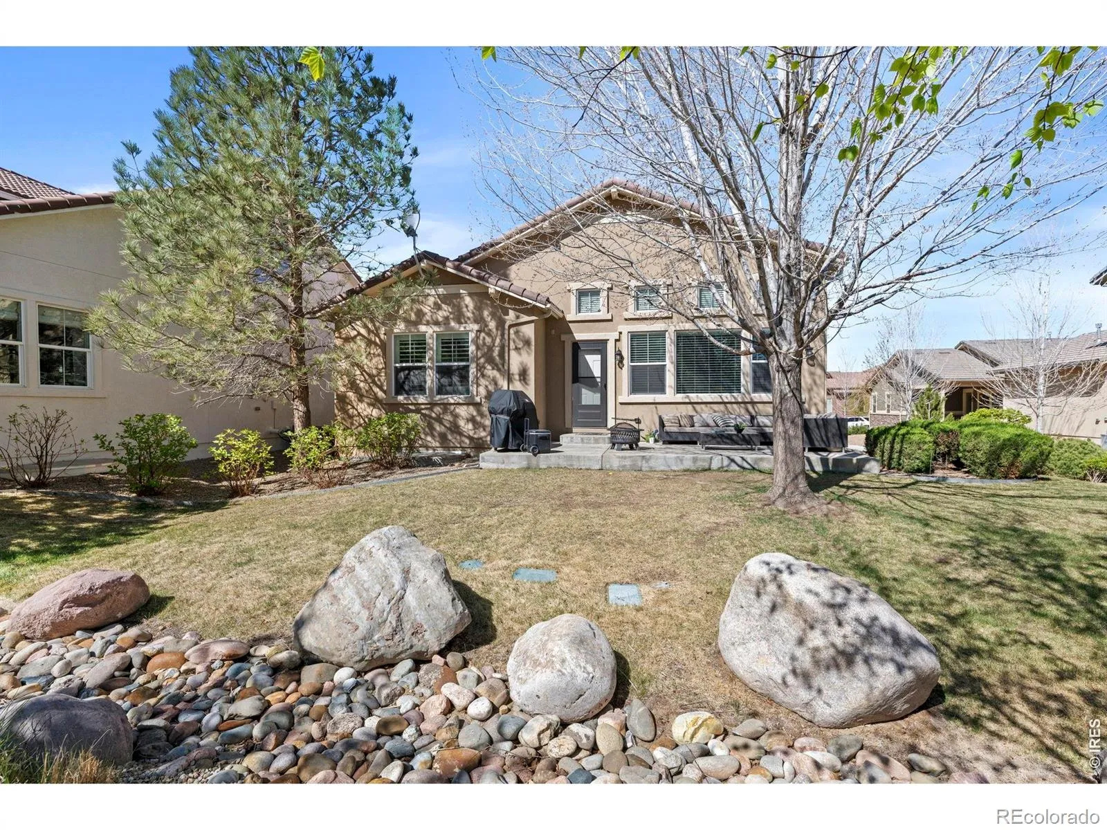 Welcome to this LOW MAINTENANCE gem boasting modern style and functionality. This LOCK AND LEAVE home is an ENTERTAINERS DREAM with the sprawling GOURMET KITCHEN featuring double ovens, gas cooktop, undercabinet lighting and LARGE ISLAND. The flow of this home is ideal as it adjoins the SPACIOUS great room with TALL CEILINGS and gas fireplace and access to quiet back patio. Convenient MAIN LEVEL PRIMARY SUITE and LUXURY 5 piece bath and DOUBLE WALK IN CLOSETS plus MAIN LEVEL LAUNDRY room with mud sink and cabinets. HOA covers lawn maintenance and snow removal. Enjoy this LOCATION on SCENIC walking path and near SERENE rock garden. The open-concept floor plan features tons of window and natural light, tall ceilings and hardwood floors. Another spacious bedroom with private ensuite bathroom is also on the main level great for guests. Convenient MAIN LEVEL OFFICE with glass French doors. Enjoy the FINISHED BASEMENT with tall ceilings, WET BAR and MEDIA AREA plus a 3rd bedroom and two more bathrooms plus tons of STORAGE. New TANKLESS WATER HEATER, concrete tile roof and 2 car attached garage are other features you are sure to appreciate. Nestled in the heart of desirable VISTA RIDGE community featuring 2 pools, fitness center, parks trails, pickle ball courts and award winning Colorado National GOLF COURSE all just steps away from this TURN KEY home. Schedule your private showing today!