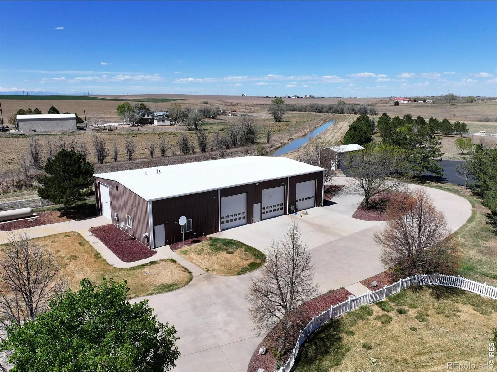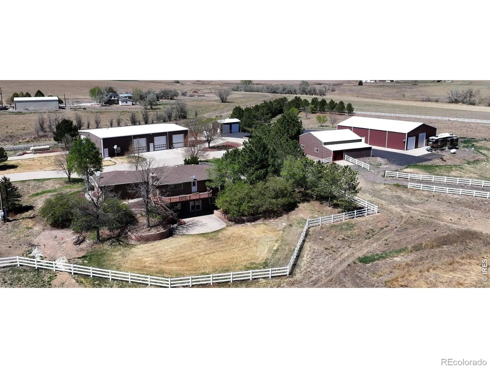 Everything you are looking for and more! The charming home features a spacious kitchen/dining area with hickory floors & cabinets, primary bedroom boasts a stunning bath & huge closet. Walk-out basement has 10′ ceilings, large family room & opens to covered patio. Never loose power with the Generac generator. Outside find an 80X50 shop w/5 overhead doors, 2 lifts, 2 air compressors, welder, 1/2 bath, Reznor heater, pellet stove, loft & lovely one bedroom, 1258 sq ft apartment. 80X55 shop w/4 overhead doors, washbay, 1/2 bath, air compressor. Floors in both shops are epoxy and openers are commercial grade. 37X42 shop w/lean-to and 30X15 storage building. The 15 acres is fenced & gated, all walks are cement- no muddy boots, multiple hydrants for easy watering! Enjoy the screened in sanctuary with dock on the stocked pond and take in the stunning mountain views. Easy drive to DIA, Brighton and Denver. There is so much this property offers, come see for yourself!