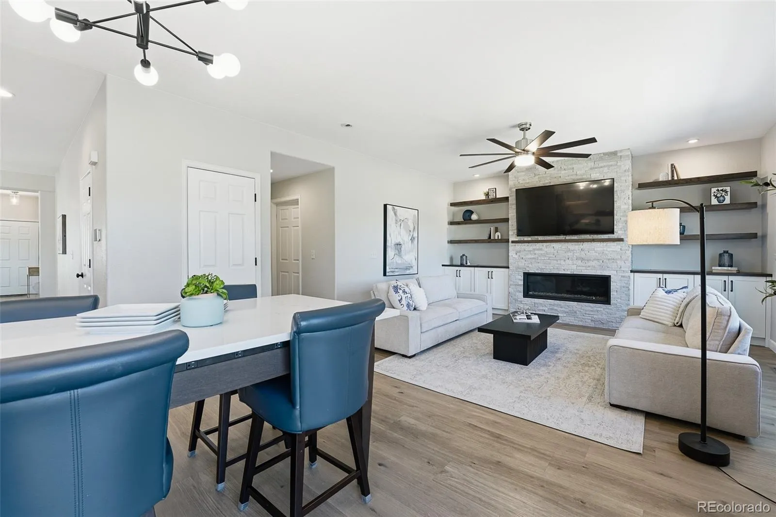 Beauty and convenience come together in this sought-after Barrymore model, perfectly positioned on a premium lot backing to the Flatirons, open space, and serene water views. Inside, the layout offers a generous formal living and dining area and a stunning, beautifully updated kitchen — designed to impress featuring built-in dining, quartz countertops, a stainless hood, Wolf range, Thermador oven, and steam oven. The adjoining family room offers a warm, inviting atmosphere anchored by a refreshed fireplace, along with a practical mudroom and dedicated laundry space. Recent upgrades, including new windows and an updated HVAC system, enhance both comfort and efficiency. The expansive backyard showcases a stamped concrete patio designed for gatherings and outdoor enjoyment. Upstairs features four bedrooms and two baths, including a well-appointed primary suite with a five-piece bath and a large walk-in closet. The partially finished basement adds a versatile rec room and ample storage. Located within walking distance to Eldorado K-8 and Wildflower Park, with quick access to dining, shopping, US-36, and miles of scenic trails.
