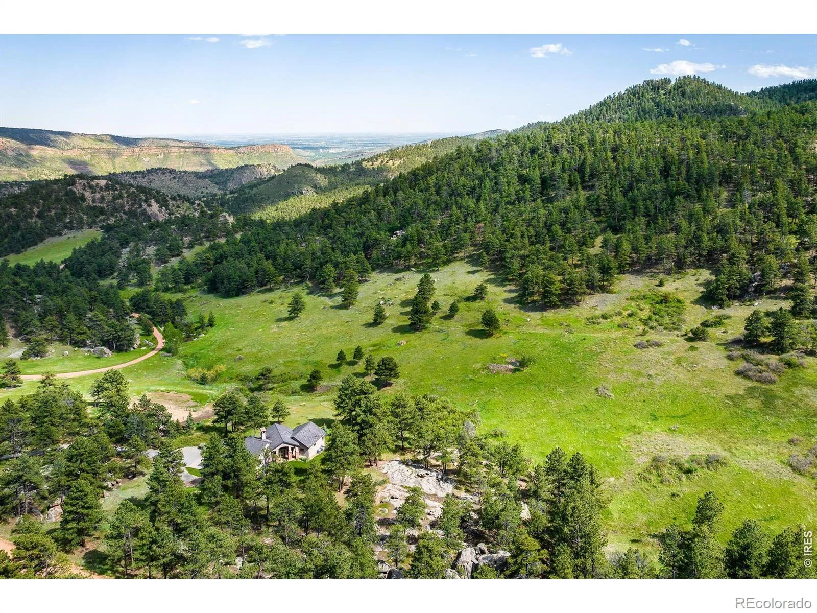 Welcome to Rowell Ranch— the kind of Colorado place a person settles into and doesn’t feel the need to leave. Clean mountain air, wide-open views, rolling meadows, and solid rock outcroppings that remind you you’re in real country. It’s quiet, private, and honest land – the kind that lets you slow down and breathe a little deeper. The home is built for comfort without fuss. Thoughtfully designed, easy to maintain, and well-suited for year-round living, with features such as an elevator that make it just as practical in the future as it is today. Big views and a strong connection to the outdoors make it feel like a true mountain retreat. If you’ve got horses, you’ll appreciate what this place offers. Ride straight out your gate – no trailer, no hassle. The 36 acres give you a mix of forest and open pasture, with access to miles of scenic roads, nearby National Forest trails, and the historic Estes Park Stage Road. There’s a 3-stall barn with tack room, over 10 acres of pasture, and two natural springs – everything you need to keep your horses well. Set at a comfortable foothills elevation, you’ll get cooler summers and milder winters, making riding possible most of the year. You’re tucked away in a wildlife preserve, with elk, deer, and turkey passing through, yet still just 10 minutes to Lyons and 30 to Boulder. It’s a place to ride, to rest, and to enjoy the land the way it was meant to be.