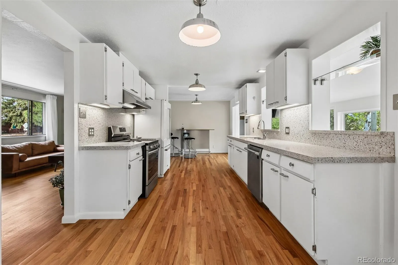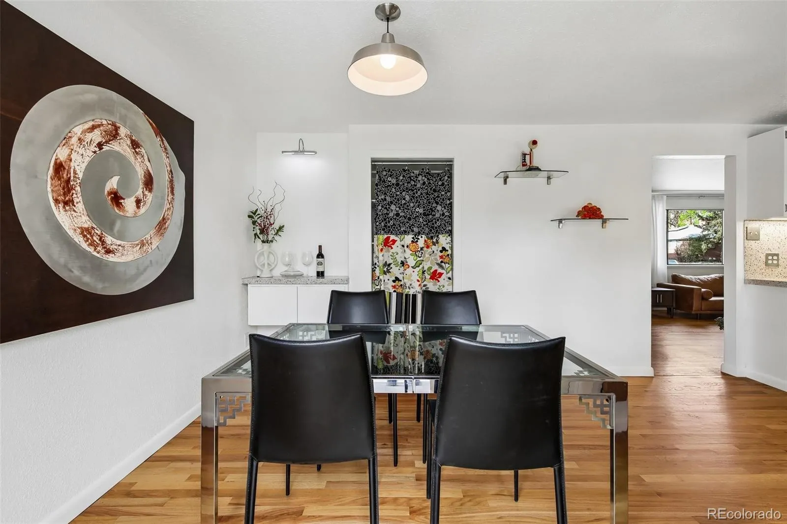 Welcome to 9210 W 52nd Avenue. This rare and enchanting Arvada retreat, beautifully embodies the very best of Colorado living. Tucked away on nearly half an acre, this exceptional property offers the kind of peace and natural beauty that’s increasingly difficult to find. With serene lake views and a spacious, private backyard, the home feels like your own private oasis, yet it’s remarkably convenient, located less than a mile from vibrant Olde Town Arvada and just 15 minutes from Golden. Thoughtfully designed with mid-century, Southwest, and bohemian influences, this updated 1950s ranch-style home blends timeless character with modern comfort. Warm original hardwood floors flow throughout the open, inviting layout, creating multiple spaces perfect for both lively gatherings and quiet moments of reflection. At the heart of the home lies the beautifully remodeled kitchen and dining area that is ideal for festive entertaining, or simply enjoying everyday life. The seamless indoor-outdoor connection is what truly sets this property apart. Step outside into a meticulously curated backyard sanctuary featuring established perennial gardens that burst with color from early spring through late fall. Multiple thoughtfully placed seating areas invite you to unwind, watch the abundant wildlife, or simply soak in the tranquility of the lake. A dedicated concrete grilling station and a charming fire pit create the perfect backdrop for memorable evenings under Colorado’s gorgeous skies. Additional highlights include a bright, updated sunroom complete with a cozy fireplace and newer windows — an idyllic spot for morning coffee, reading and year-round relaxation. Conveniently located with easy access to I-70, this home offers the rare and coveted balance of peaceful, spacious living paired with proximity to shopping, dining, entertainment, and all the urban amenities you desire. This is more than just a house, it’s truly a lifestyle that brings comfort and nature together as one.