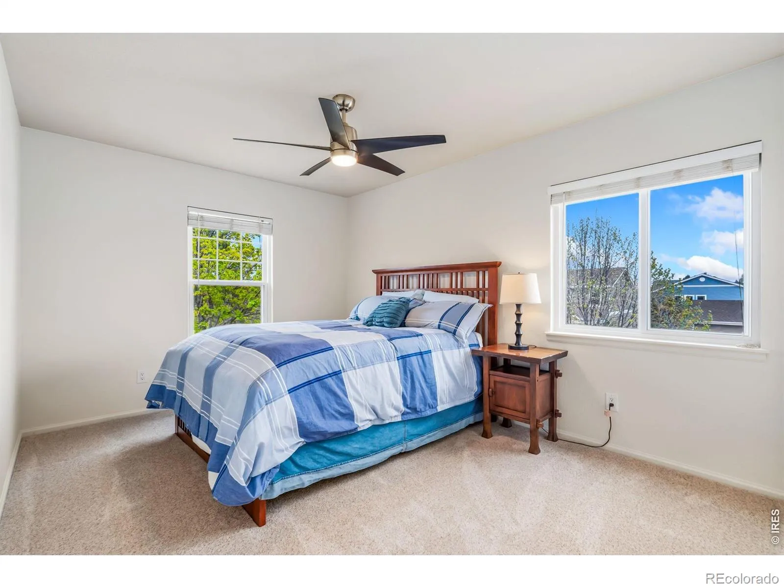 Beautifully updated Fort Collins home with a 3 car garage and large corner lot. Move-in ready with fresh interior paint, newer carpet and refinished hardwood floors. The heart of the home features a well-appointed kitchen with granite countertops, a gas stove, a new fridge, pantry and eat-in area perfect for both everyday living and entertaining. Upstairs, you’ll find 4 spacious bedrooms, the laundry room, and a versatile loft. The luxurious primary suite offers a fully remodeled spa-like bathroom with luxury fixtures and a custom California Closet system. The professionally finished basement expands your living and entertaining space. Downstairs you’ll find the 5th bedroom with a luxury ensuite bathroom, a wet bar with a wine cooler and kegerator (the shuffleboard and barstools are negotiable). Major system upgrades provide peace of mind, including a new A/C, tankless water heater, humidifier, and newer windows. Outside, enjoy the large, private corner lot complete with mature landscaping, flagstone patio, garden area, and a storage shed-offering both beauty and functionality. This home truly checks all the boxes with thoughtful upgrades, flexible living spaces, and exceptional privacy in a prime location.