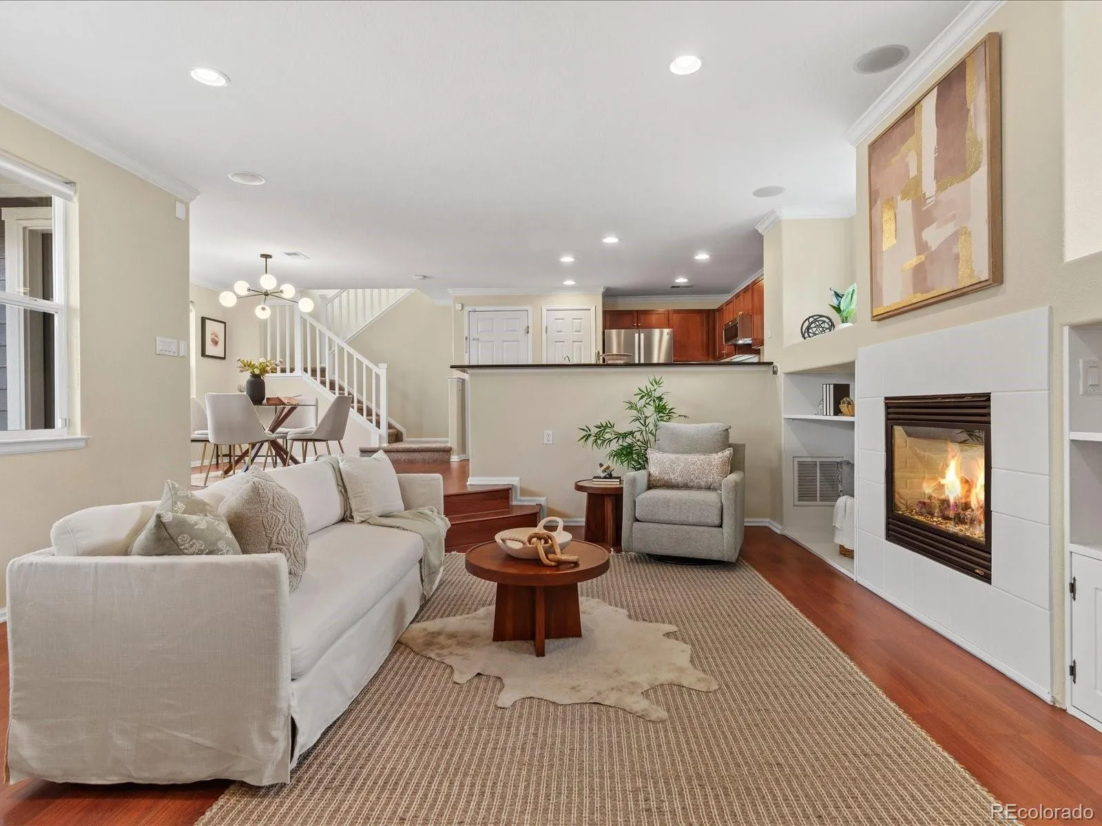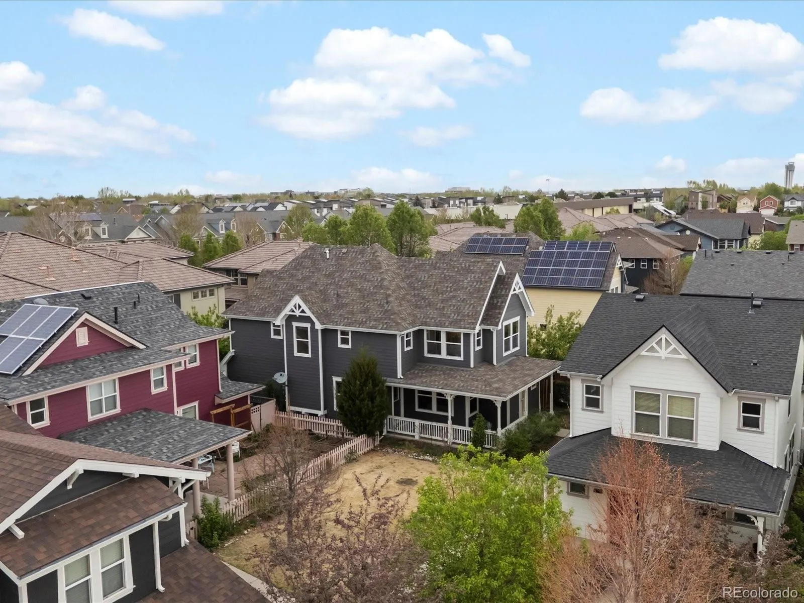 Tucked within a quiet courtyard setting in Central Park’s desirable South End neighborhood, this beautifully maintained 3 bedroom, 2.5 bath KB home showcases true pride of ownership and a thoughtful blend of upgrades, comfort, and low-maintenance living. With fresh paint, newer carpet, and updated lighting throughout, the home offers both style and functionality in a highly central location. Step inside to a warm and inviting main level where wood flooring, custom built-in shelving, and a cozy gas fireplace create a welcoming atmosphere. The open layout flows effortlessly into the well-appointed kitchen, featuring granite countertops, upgraded newer stainless steel appliances, and a 5-burner gas range, all overlooking the spacious great room with built-in speakers, perfect for everyday living and entertaining. Smart Philips Hue LED lighting adds a modern, customizable touch throughout the home. Upstairs, the primary suite offers a relaxing retreat with a large walk-in closet and a 5-piece bath, complete with a jetted soaking tub. Two additional bedrooms and a full bath complete the upper level. Additional upgrades include a new furnace, heat pump and A/C, and central vacuum system, enhancing both comfort and efficiency. Outdoor spaces are equally inviting, featuring a covered front porch ideal for summer evenings and a fenced side yard perfect for pets, gardening, or quiet relaxation. The attached 2-car garage provides convenient access and additional storage. Within one mile of Stanley Marketplace, Oneida Park, and 29th Ave Town Center. Centrally located, this home offers easy access to neighborhood parks, trails, shopping, dining, Downtown and Anschutz Medical Campus.