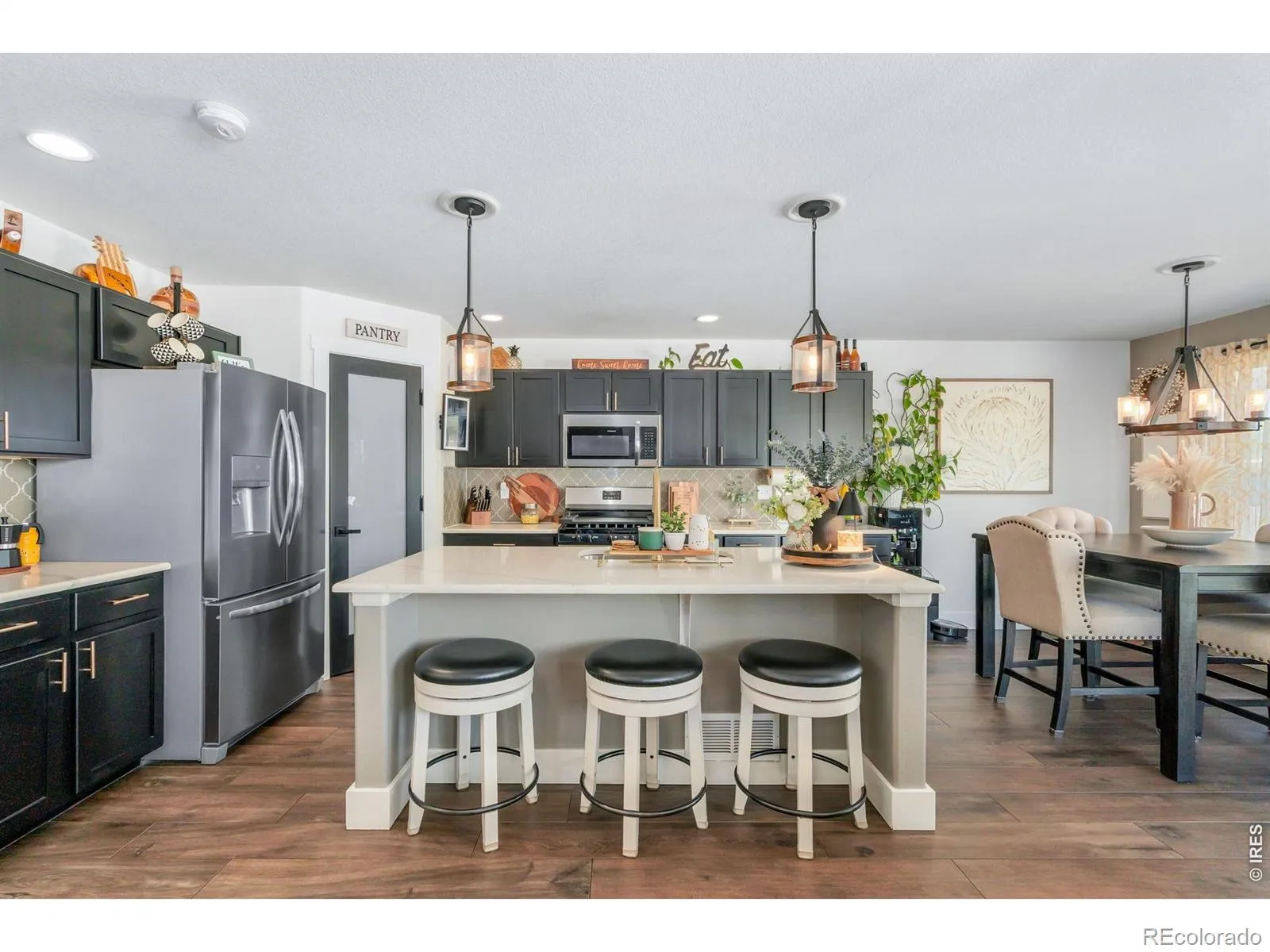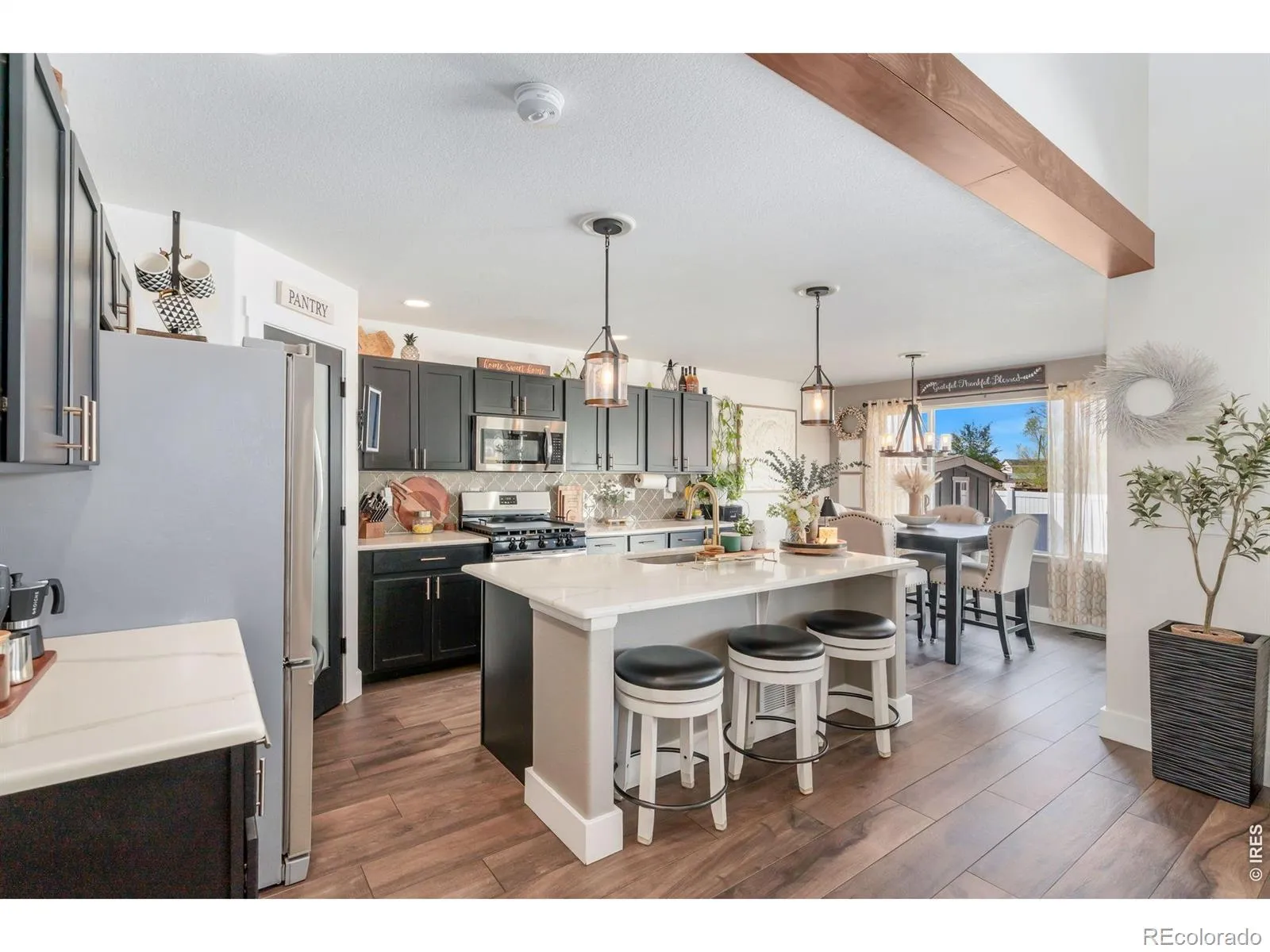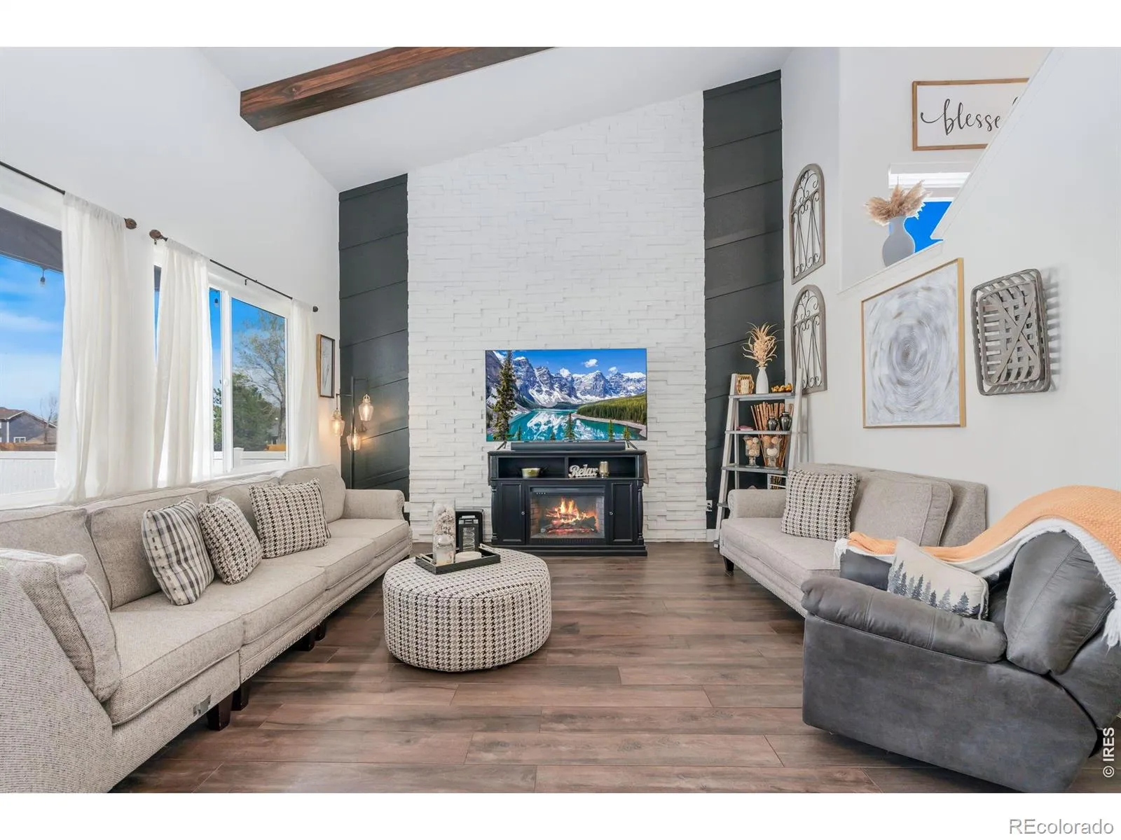 Kittle Real Estate presents a fully remodeled, turnkey home on a corner lot, backing to a green space with no direct rear neighbor! From fresh exterior paint and new flooring to updated gutters and improved baseboard trim, every detail has been thoughtfully updated to create a clean, move-in ready home. Step through the foyer into an open main living area with soaring ceilings and a fireplace centerpiece featuring custom stonework. The expanded kitchen shines with new quartz countertops, stainless steel appliances, a spacious island with seating, and a pantry, offering the perfect balance of style, storage, and functionality. Upstairs, you’ll find three bedrooms along with a conveniently located laundry area. The primary suite includes a walk-in closet and an ensuite bathroom for added comfort. The finished basement adds valuable living space with an entertainment area, plus an additional bedroom and bathroom, giving you flexible space for guests or recreation. The fenced backyard features an expanded patio and a built-in custom grill area, creating a setup that’s perfect for al fresco gatherings. The storage shed is fully powered, offering electricity for tools or creative projects. The 3-car tandem garage is a must-see, complete with insulation, drywall and texture, epoxy flooring, heating and cooling, and built-in shelving, offering a polished, versatile space that goes far beyond standard garage use. Centrally located with easy access to Fort Collins, Windsor, Loveland, and Greeley, this home puts shopping, dining, and everyday conveniences all within easy reach. Pride of ownership shines through every corner of this home!