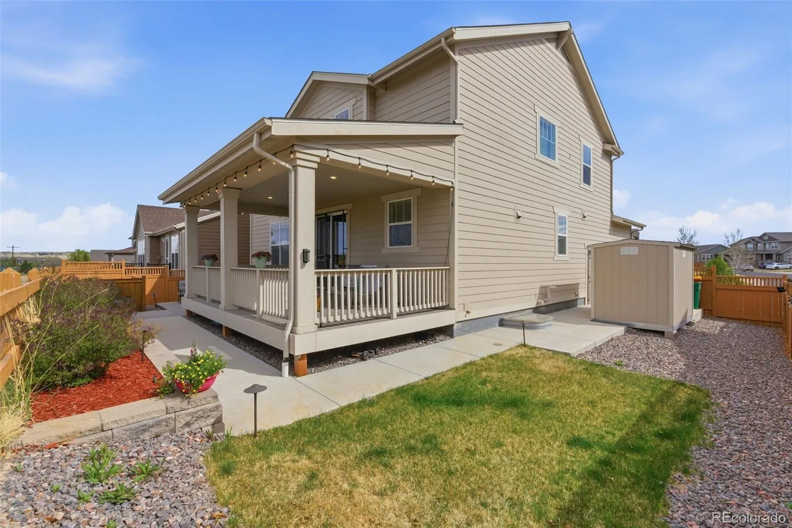 Welcome to this stunning two-story home in the highly desirable Cottonwood community of Parker! Nestled in a quiet cul-de-sac and backing to a greenbelt with no rear neighbors, this meticulously maintained, low-maintenance property offers exceptional privacy and scenic surroundings.Step inside to a bright and inviting open floor plan featuring high ceilings, abundant natural light, and stylish finishes throughout. The main level boasts a spacious family room with a cozy gas fireplace, a dedicated office, and a well-appointed kitchen complete with granite countertops, a large island, pantry, and extensive cabinetry perfect for your culinary needs. The dining area flows seamlessly to the outdoor space, ideal for gatherings.Upstairs, you’ll find four generously sized bedrooms, including a luxurious primary suite with a five-piece bath and walk-in closet.A convenient Jack-and-Jill bathroom connects two of the secondary bedrooms, offering both comfort and functionality.The unfinished basement provides excellent potential for future expansion and is already stubbed for a bathroom ready for your personal touch.This home is packed with valuable upgrades and thoughtful features, including fully paid solar panels that significantly reduce electricity costs, a reverse osmosis (RO) system for high-quality drinking water, a whole-home water softener, and a radon mitigation system for added peace of mind.Additional highlights include an oversized two-car attached garage with built-in cabinets for extra storage, front porch and a private fenced backyard complete with a covered patio and a convenient storage shed perfect for tools and seasonal items.Built in 2019 with quality finishes, this home is conveniently located near Chambers Road and E-470, offering quick access to all of Parker’s amenities while avoiding heavy traffic.Don’t miss this turnkey opportunity to own a beautifully upgraded home in a prime location!