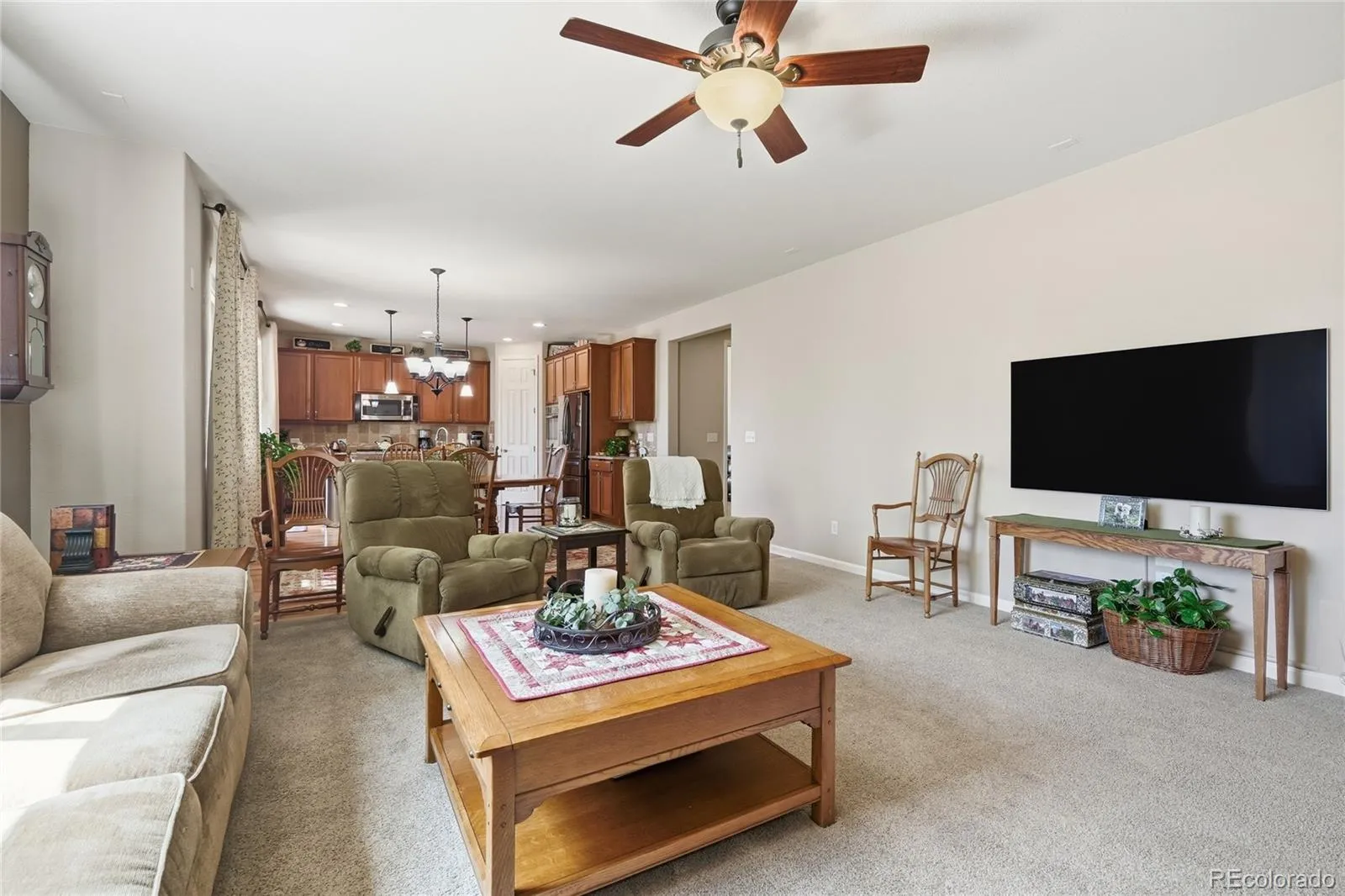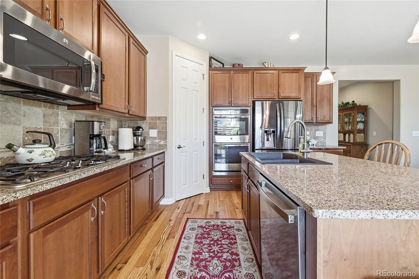 Welcome to a beautifully appointed ranch-style home in the desirable Colliers Hill community, where comfort meets modern elegance. The main floor is adorned with rich hardwood flooring, guiding you to a serene primary suite. Here, coffered ceilings add a touch of grandeur, complemented by a full en suite bathroom with dual vanities and a substantial walk-in closet. The heart of the home, the kitchen, is a chef’s dream, showcasing sleek granite countertops and premium stainless steel appliances, including a double oven and gas cooktop. An open layout flows into the great room, perfect for gatherings, featuring a charming gas fireplace. Down the hall is a dedicated office, and two more bedrooms offers flexible use. Completing the main level are a practical laundry area with a newer Washer/Dryer (2024) and a another bathroom, perfectly positioned next to the bedrooms for guest convenience.