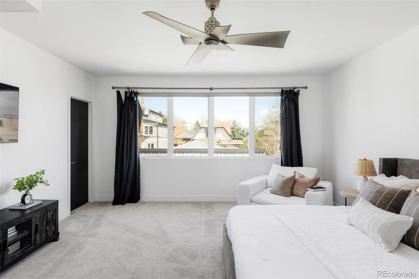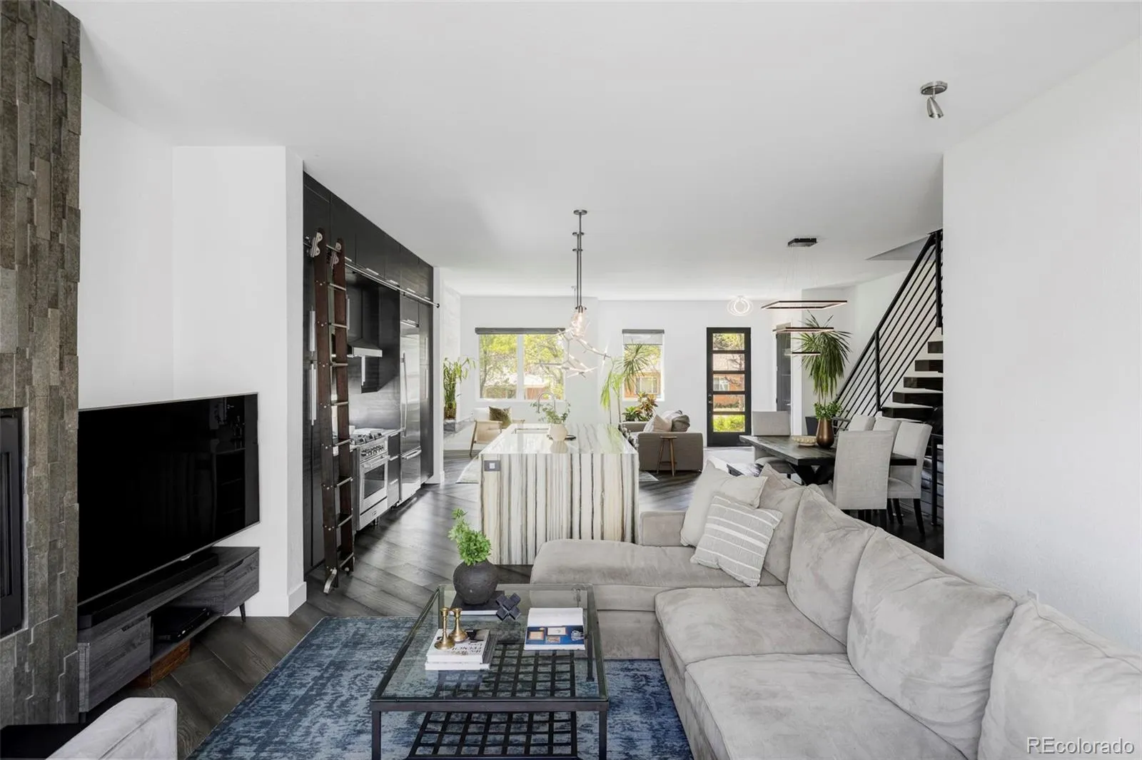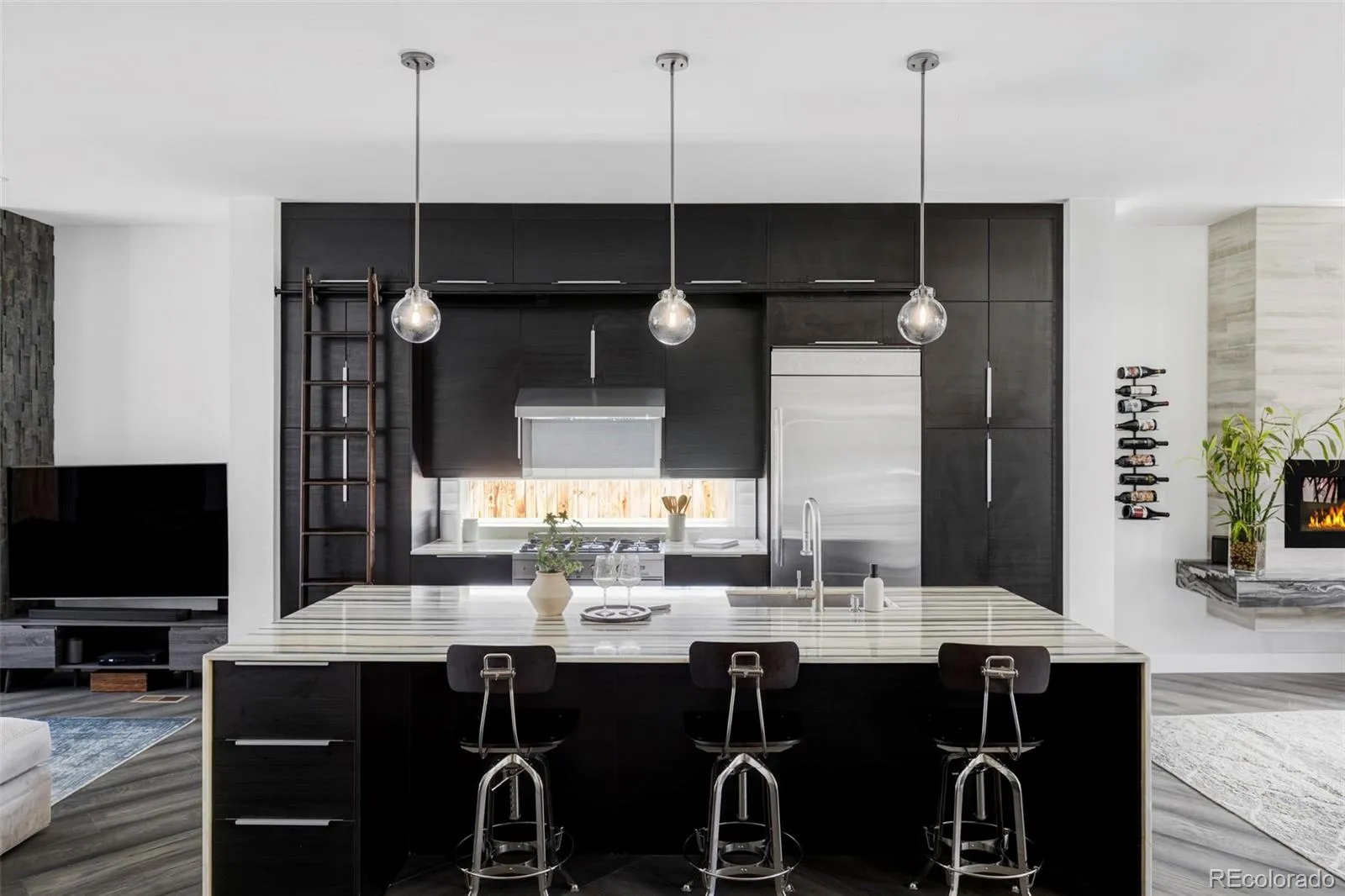 Located in one of Denver’s most popular neighborhoods, this stunning urban contemporary home seamlessly blends modern design with exceptional functionality, offering four spacious bedrooms and five beautifully appointed bathrooms. The thoughtfully designed main level is ideal for both entertaining and everyday living, featuring inviting living and family rooms—each with its own fireplace—flowing effortlessly to a private backyard patio, perfect for indoor-outdoor living. The open-concept layout creates a welcoming atmosphere, highlighted by a generous dining area and a convenient breakfast bar that anchors the heart of the home. Upstairs, the luxurious primary suite serves as a true retreat, complete with dual walk-in closets and a spa-inspired five-piece bath. Secondary bedroom with adjoining bathroom for kids or guests. The third-floor loft adds incredible versatility, featuring a sleek wet bar and access to a rooftop deck—an ideal setting to unwind in the brand-new hot tub while taking in sweeping city and mountain views. The finished basement further expands the home’s livability with a spacious family room, an additional wet bar, a bedroom, and a bathroom—perfect for guests or multi-generational living. Just a short distance to Sloan’s Lake and very close to many shops & restaurants. Some of Denver’s finest dining options are just a few blocks away. Offering a refined blend of sophistication, comfort, and elevated urban style, this home delivers an exceptional living experience!