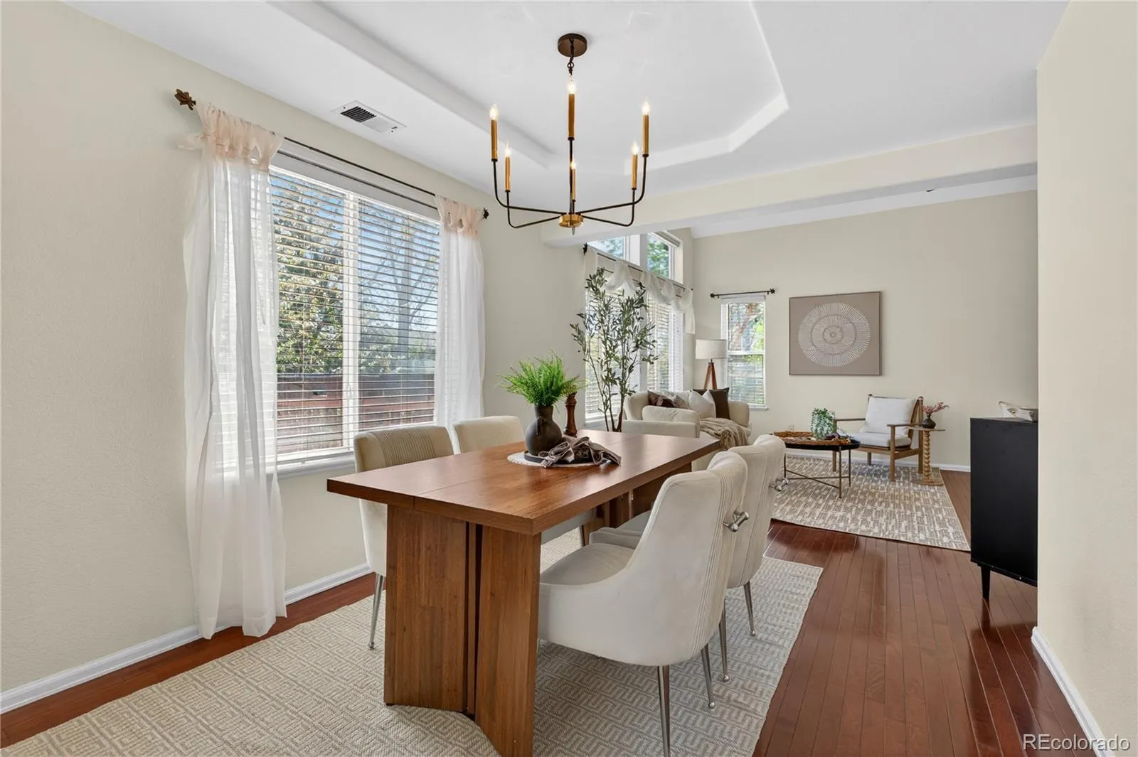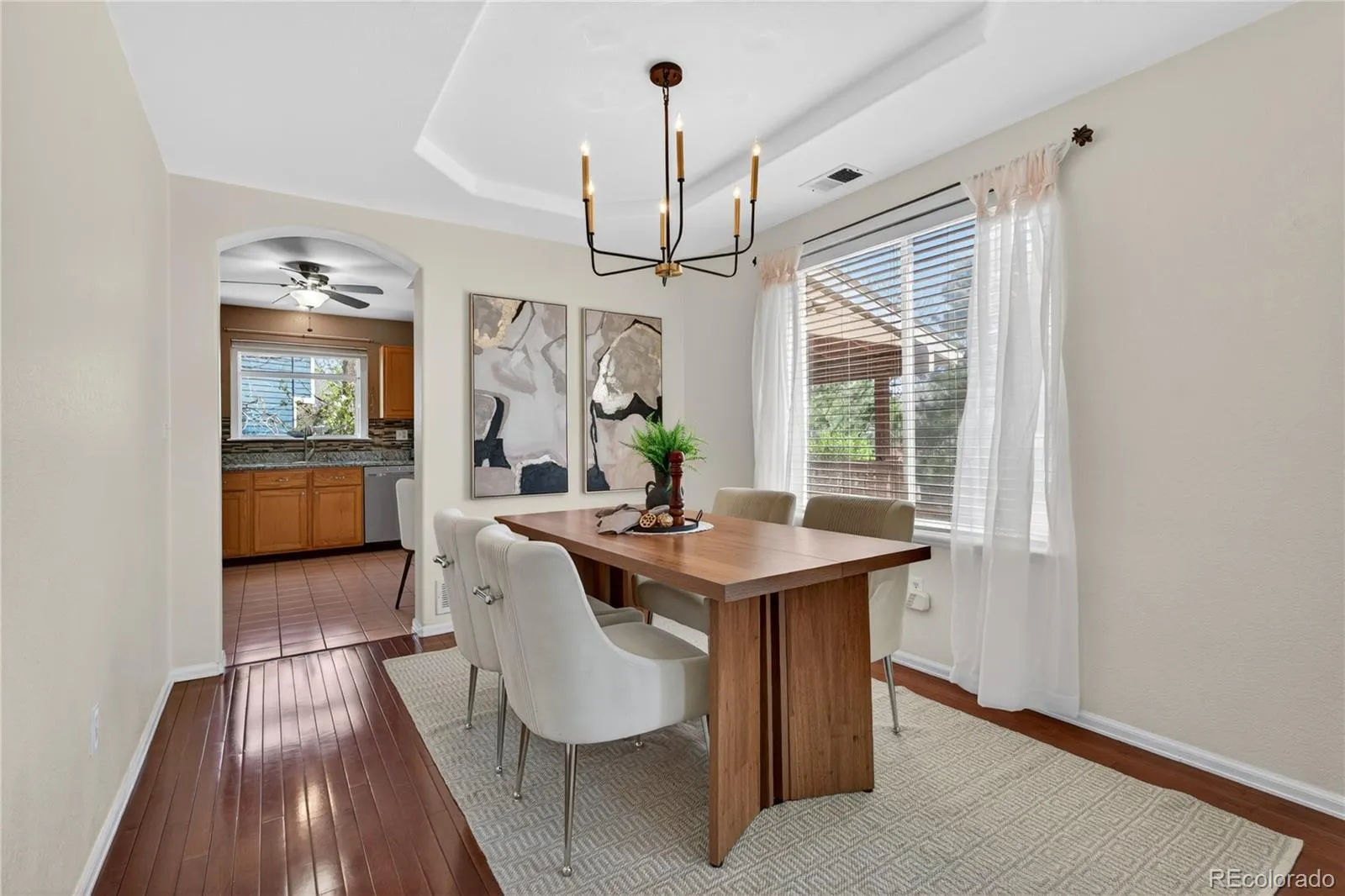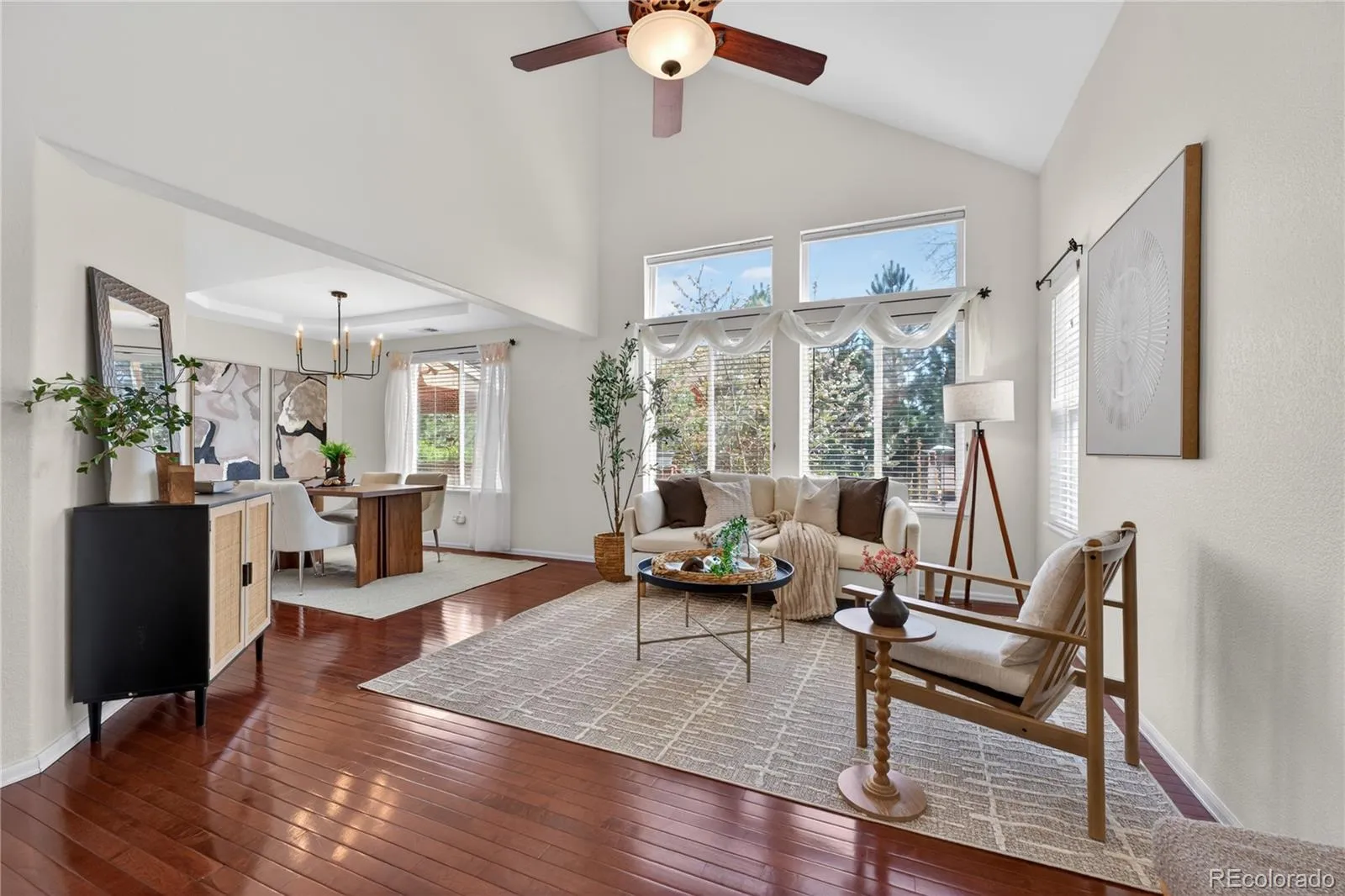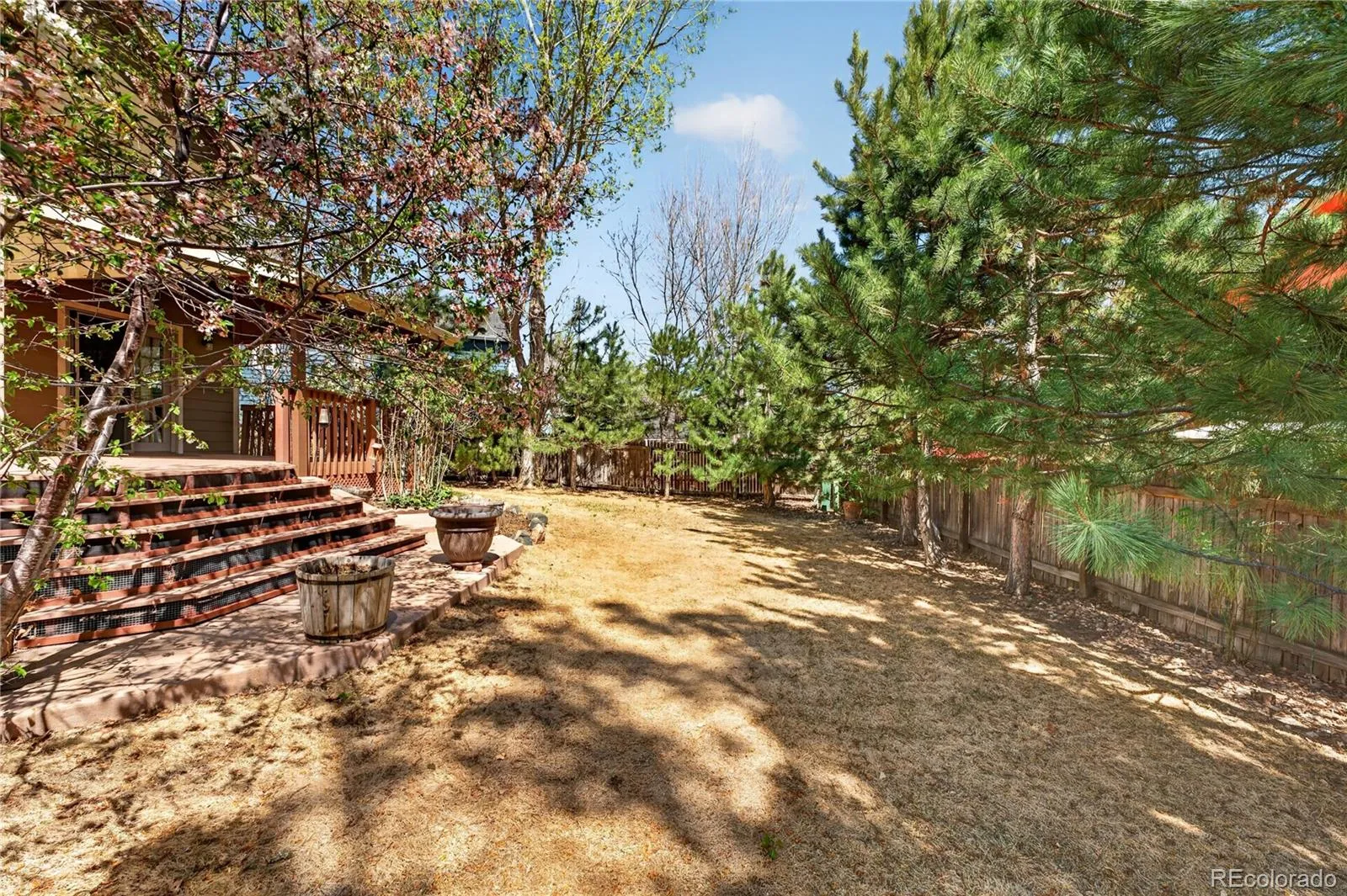 Located in COUNTRY VISTA known for it’s quiet tree-lined streets, community feel, NO HOA! Quiet cul-de-sac living meets exceptional functionality in this beautifully maintained corner-lot home. Surrounded by mature trees in both the front and back, the setting is peaceful and private, creating a true sense of retreat. Inside, a light-filled open layout showcases gleaming cherry hardwood floors and soaring vaulted ceilings. The formal dining room is ideal for hosting gatherings, and the charming eat-in kitchen offers easy access to the expansive backyard deck for seamless indoor-outdoor living. Step into your own backyard oasis where a covered patio provides ample space for weekend barbecues and entertaining, all framed by a tree-lined fence that offers shade and seclusion. Upstairs, three bedrooms include a spacious primary suite, private en-suite bath. Secondary bedrooms share a convenient Jack-and-Jill bath. The finished basement adds valuable flexibility for 2nd living area/office/play room. Close proximity to major HWYs, Paul Derda Recreation Center, Bay Aquatic Park, fitness facilities, scenic trails, open space/wildlife, along with shopping, dining just minutes away. Extensive updates: durable architectural roof, updated water heater, fresh exterior paint, new concrete front porch and driveway. A rare find, the property features a wide gate entry to the side yard gravel parking spot to accommodate RV or boat storage inside the backyard, along with powered workshop and shed combo, offering the perfect solution for those who need extra space without sacrificing style. Modern upgrades continue throughout with smart home features, including a Wi-Fi-enabled thermostat, garage door opener, sprinkler system, and security cameras. Additional improvements include new HVAC systems, air purification and humidification features, a sump pump, upgraded appliances, new carpet, & the kitchen and bathrooms have been refreshed with granite countertops. Welcome home!