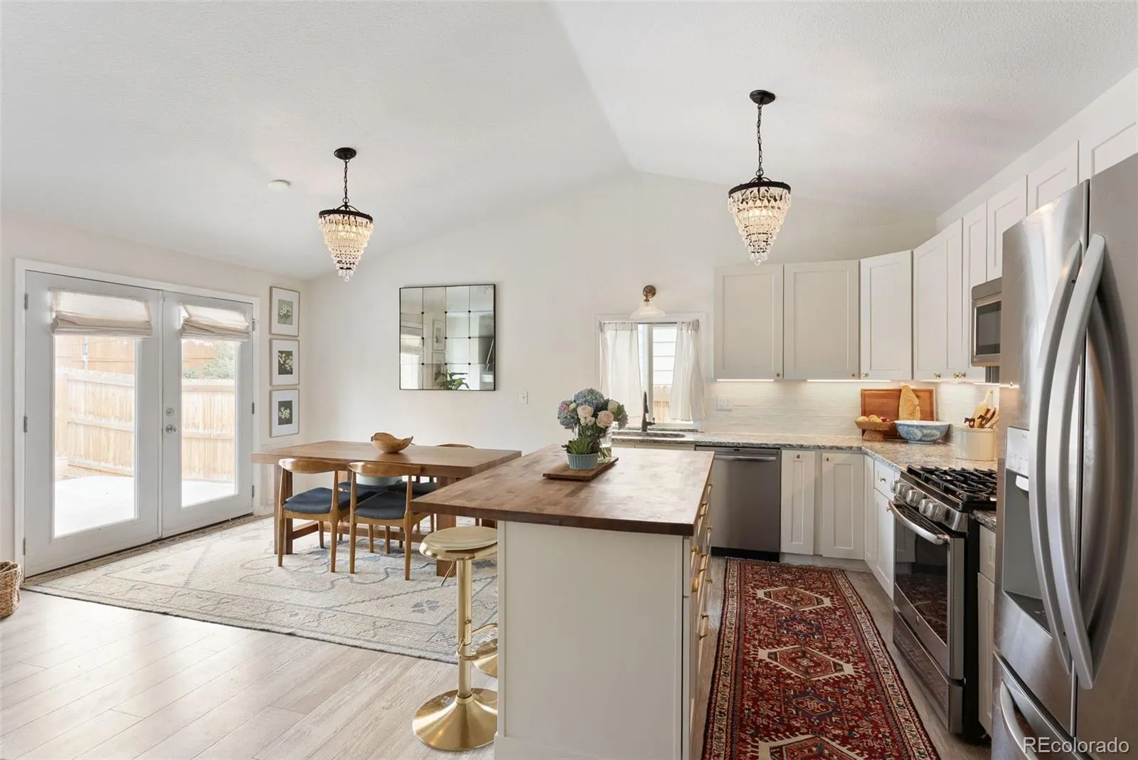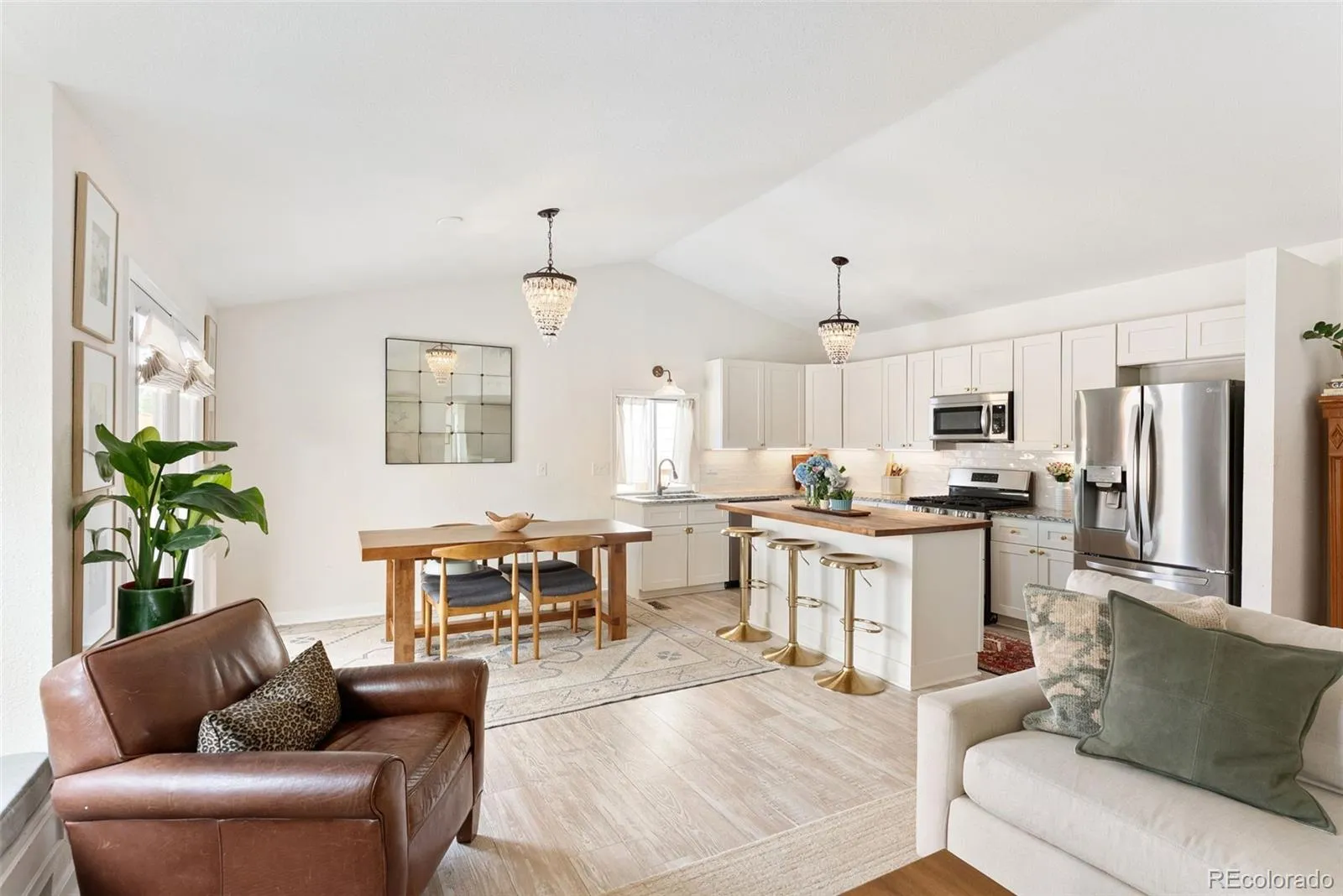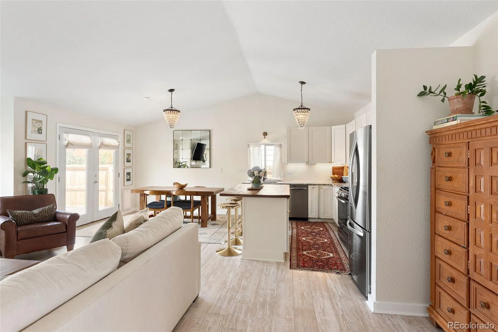 As you walk beneath the pergola the entry creates an inviting warm feeling. Open the door and this remodeled ranch home really starts to shine. Featuring classic style with modern finishes, the open concept design bodes itself perfectly for entertaining in the main living spaces which seamlessly flow together with the kitchen area in this open concept floor plan. Enjoy preparing a meal in the inviting kitchen featuring SS appliances, soft-close cabinetry, granite counters & center island. Rare main floor primary suite complete with walk-in closet & updated ensuite bath with walk-in shower. Two secondary bedrooms and a full bath are located on the main level. Family movie nights are ideal in the finished basement or make it a private 4th bedroom, perfect for guests. Relax in your serene backyard oasis, great for summer get togethers. Energy efficient windows throughout. Ideally located within minutes of Jefferson County schools, parks, shopping, dining & easy highway access so you get up to the mountains.