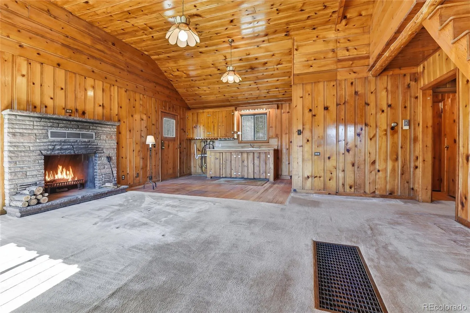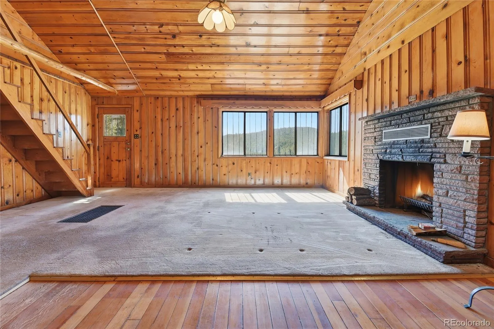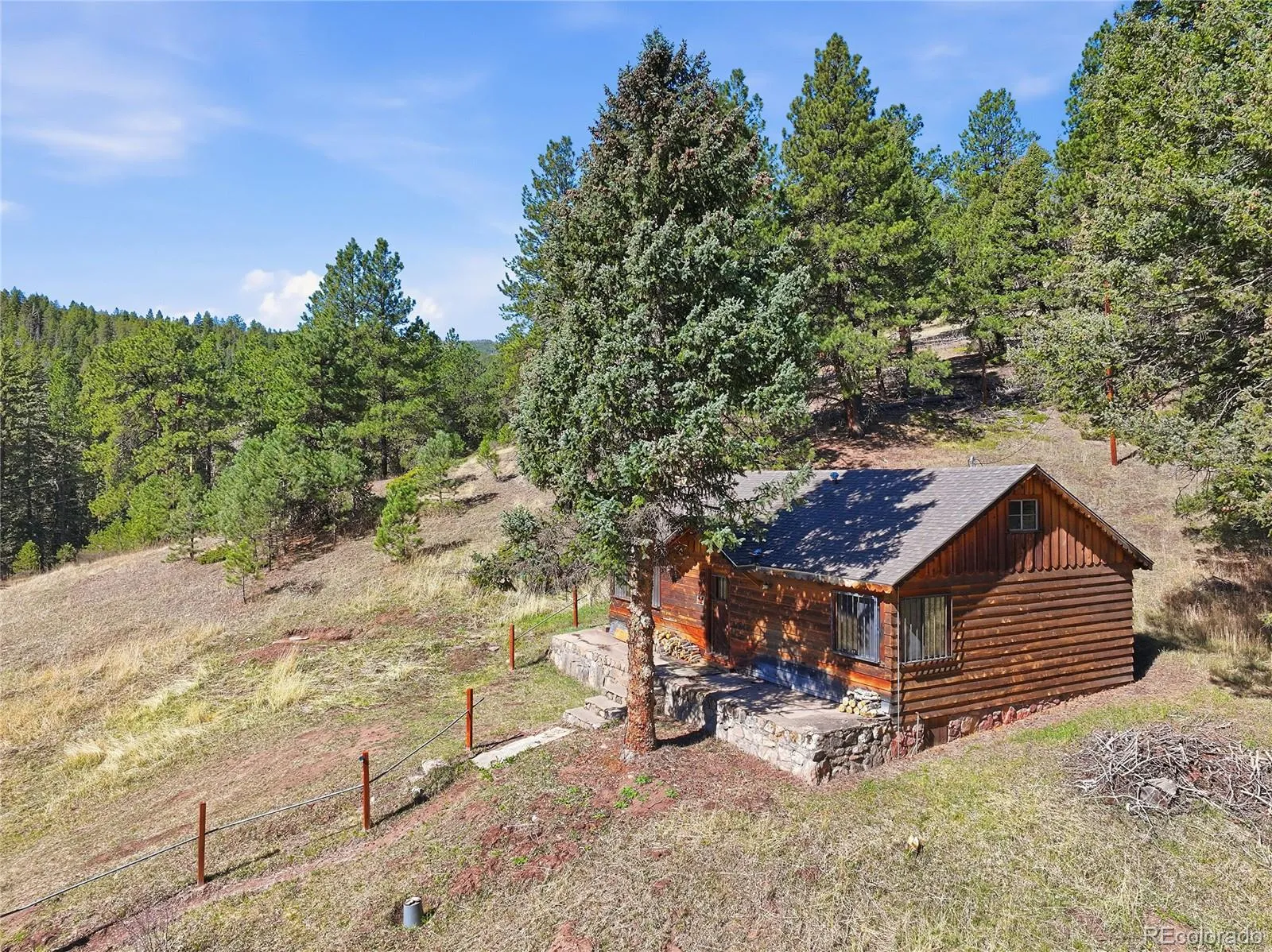 Inside, creating a true Colorado cabin feeling, you will find warm tongue & groove walls and ceilings. This home is perfectly positioned facing southeast, bringing in natural light and enhancing the surrounding views. The land, is where this property truly stands apart… expansive usable acreage, striking rock outcroppings, a peaceful creek running along the east side, and a stunning aspen grove right beside the cabin.