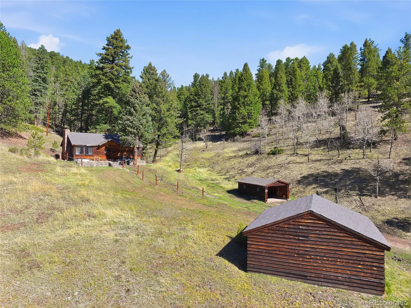 Rare opportunity to own 32.48 acres of private Colorado wilderness. 3 minutes to Maxwell Falls Trailhead, 14 minutes from downtown Evergreen and less than an hour from Denver. This inviting mountain cabin offers 2 bedrooms, 1 bathroom, and a bonus loft. The large surrounded area is unmatched by natural beauty and usable land. Wildlife is abundant; offering a daily connection to nature.