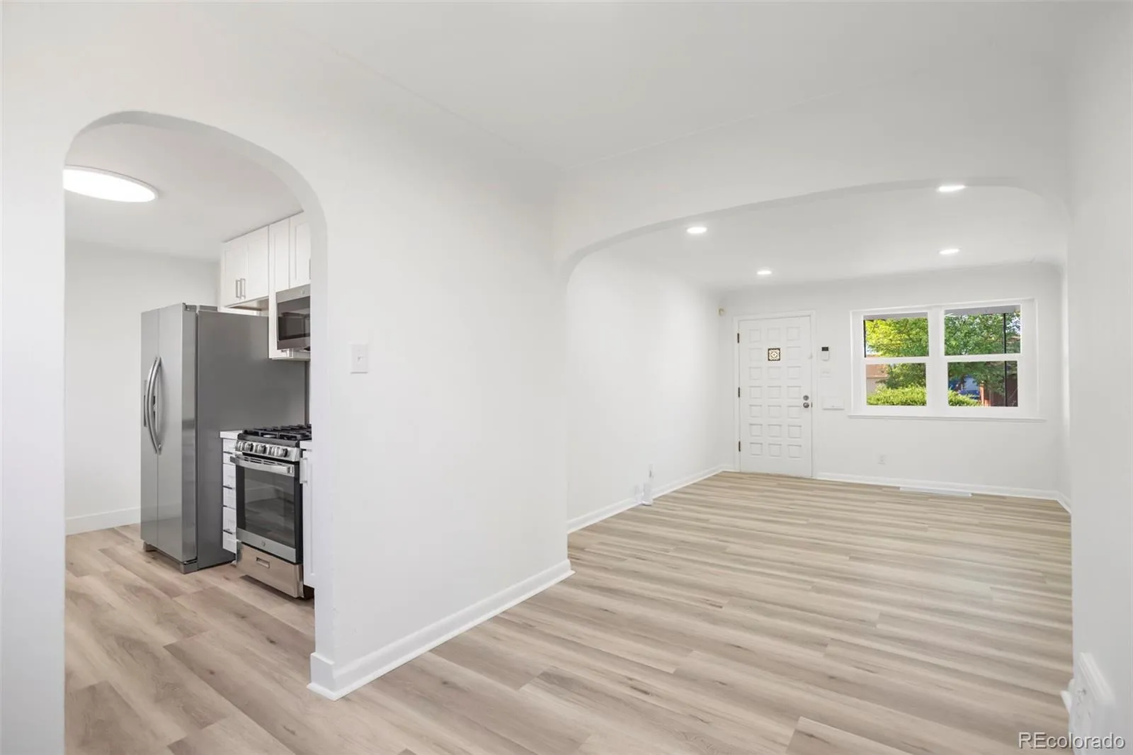 Welcome to this fully remodeled home in Westwood, offering modern updates and functional living in a convenient Denver location. Upon entering, you are greeted by new luxury vinyl plank flooring that flows throughout the main living areas. The kitchen has been thoughtfully updated with quartz countertops and a full quartz backsplash, new cabinetry, and stainless steel appliances including a gas range. The dining area sits just off the kitchen, while the living room is only a few steps away. The spacious primary bedroom features new carpet, and there are two additional bedrooms with LVP flooring. The full bathroom has been refreshed with a new vanity and updated finishes. Additional upgrades include new windows, new light fixtures, and fresh interior and exterior paint, giving the home a truly move-in ready feel. Outside, the concrete driveway provides off-street parking for two vehicles. This property is zoned E-TU-C (Urban Edge – Two Unit – Core), which allows for a variety of residential opportunities including the potential to add an accessory dwelling unit (ADU), making it an attractive option for investors or buyers looking to expand the property’s functionality. Located in the heart of Westwood, you’ll enjoy close proximity to parks, local restaurants, shopping, and quick access to downtown Denver.